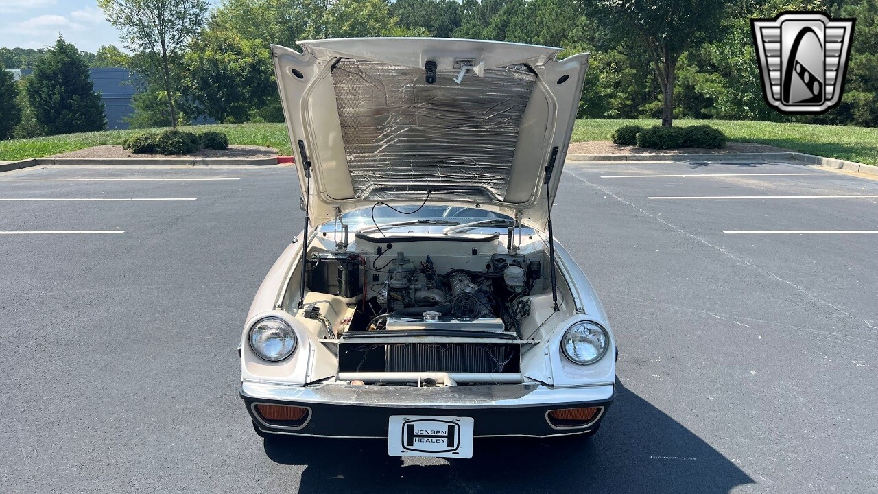 For sale is a 1974 Jensen-Healey JH5, a true classic that blends British automotive design and engineering finesse. Displaying an attractive white exterior, contrasted beautifully by its black vinyl interior, this vehicle is shining evidence of the seductive simplicity that characterizes vintage 1970s sports cars.