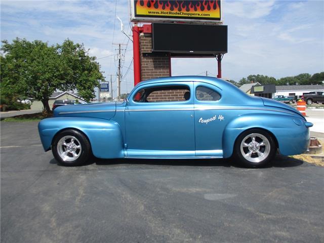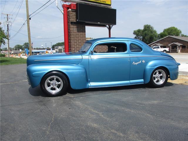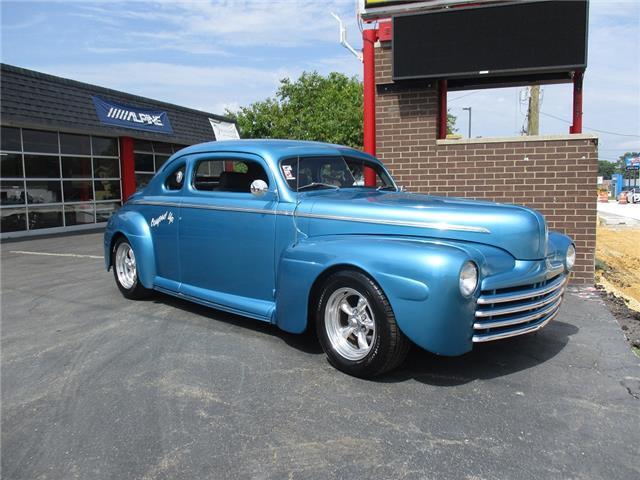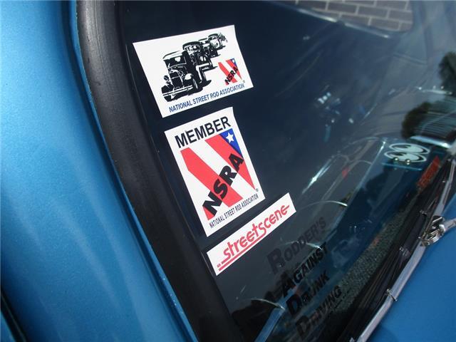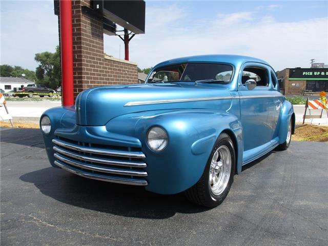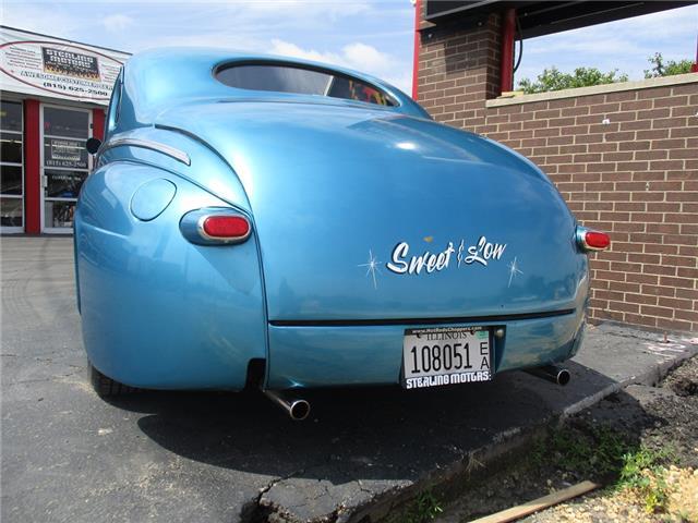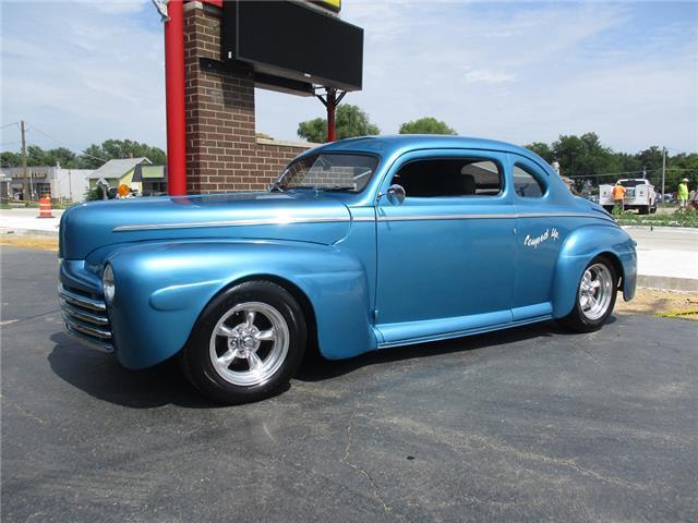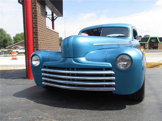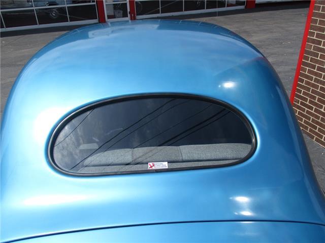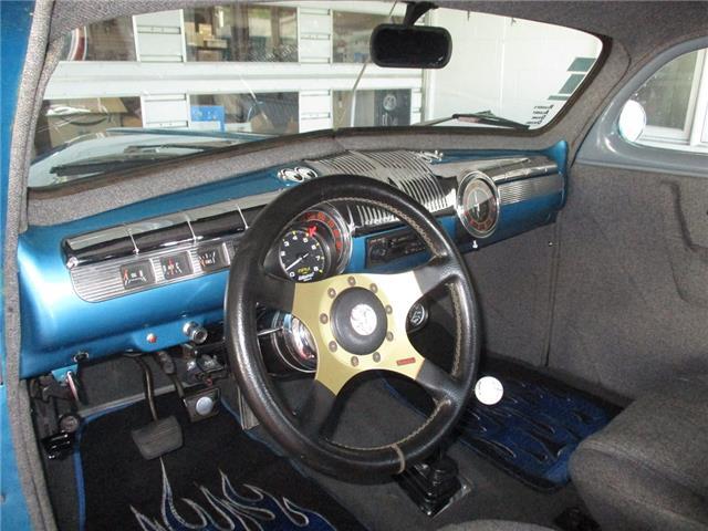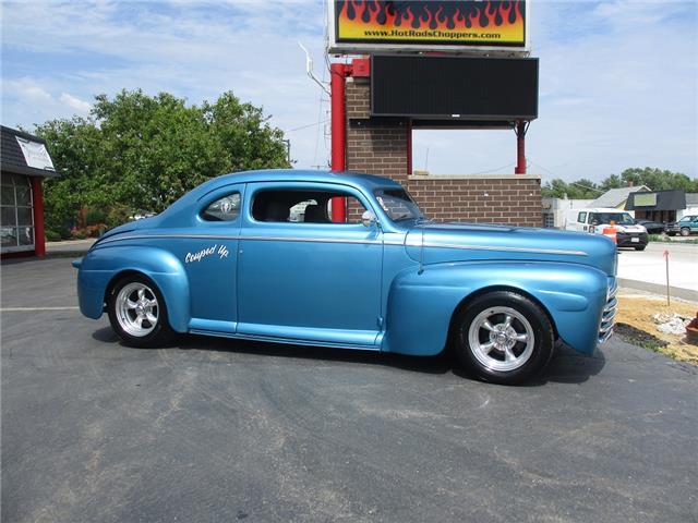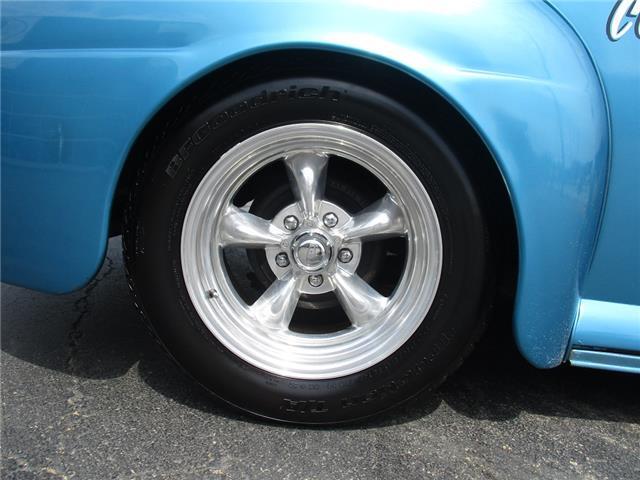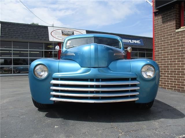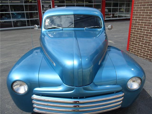 The Deluxe was offered by Ford as 1938 model to bridge the gap between its base model and the Lincoln line. It was thoroughly revised in 1941, in 1942 production halted for the war and it resumed again after the war ended in 1946. This particular example was converted into a show winning street rod about 20 years ago at which time it was chopped 4 inches, the door handles were shaved, the antenna and headlights were frenched and the suspension was lowered 3 inches giving it the menacing stance it has. The heart of this beauty is a professionally rebuilt 327ci V8 that is estimated to put out 300 horsepower. It is fed via a newer Edelbrock carb and intake, it is sparked by an electronic ignition and it sounds just plain nasty ripping through its performance dual exhaust system. Power is put to the narrowed 10 bolt posi rear end via a Muncie M-20 4 speed, both of which were rebuilt at the same time the vehicle was customized. It has independent front suspension with drop spindles and the rear has lowering springs with adjustable shocks. It has front disc brakes, power brakes and power steering. It also received a new interior with bucket seats covered in a sweet grey tweed that continues throughout the interior and the trunk. The trunk is power with an interior switch, it has an AM/FM cassette player, newer speakers, a power antenna, extra gauges, a tilt steering column as well as a custom steering wheel. The shaved doors are opened by lowering the power windows which can be done from the door key from the exterior or from the interior switches. The paint and trim work were all redone about 20 years ago but still show incredibly well. It also has a sweet set of staggered Chrome Eagle Alloy rims wrapped in newer BF Goodrich Radial T.A. tires. The graphics painted on the rear quarter panels and the trunk are on top of the clear coat so they can easily be removed if so desired. The odometer was reset when the car was built and shows 15,616 miles since. Everything is working as it should and she is need of nothing but a new home. We have priced her to move as quickly as she goes so if you like what you see don’t wait until it is too late to reach out!