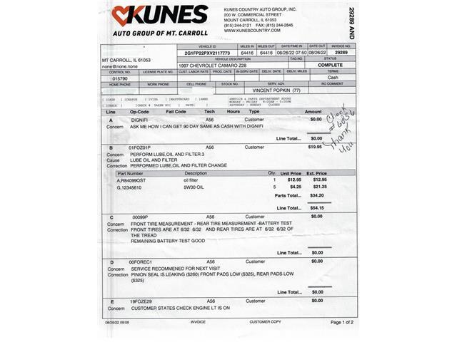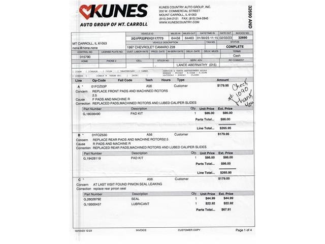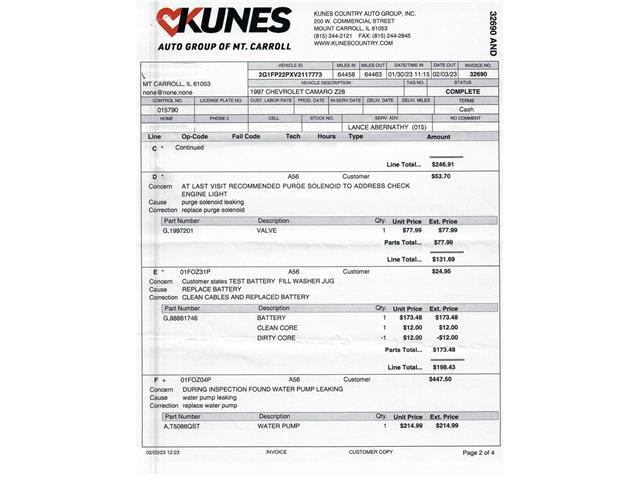 The 4th generation Camaro was produced by Chevrolet from 1993 through 2002. It was introduced on a new F-body platform but retained the same characteristics as the 1st generation as it was rear wheel drive, was available in coupe or convertible and with a V6 or a V8. In 1997 it was upgraded with a new interior and tri-colored taillights and a 30th Anniversary package was available which included unique Hugger Orange stripes on top of Arctic White paint and new 16 inch 5 spoke wheels in chrome. It was only available on the RS, Z28 and SS packages and is identified by code Z4C on the trim tag and only 979 of them were made in 1997. It is powered by a 5.7 Liter HO V8 LT1 engine producing 300hp. Power is put to the 245/50ZR16 Eagle GT’s via 700R4 tranny and a posi rear end with 3:42 gears. This late 90’s gem has the upgraded T-Tops and power everything including 6 way power driver seat and 4 wheel power disc brakes. It has been serviced regularly and the brakes were all gone through by a Chevy dealer within the last 116 miles. It is all original with some wear on the driver seat and some checking on the original paint. The ABS light is on as it needs a need speed sensor as shown in the pix, there is a crack in the dash and the A/C needs recharged. Other than that it is in great shape. We have priced the car for a quick sale so if you like what you see you should reach out right away!