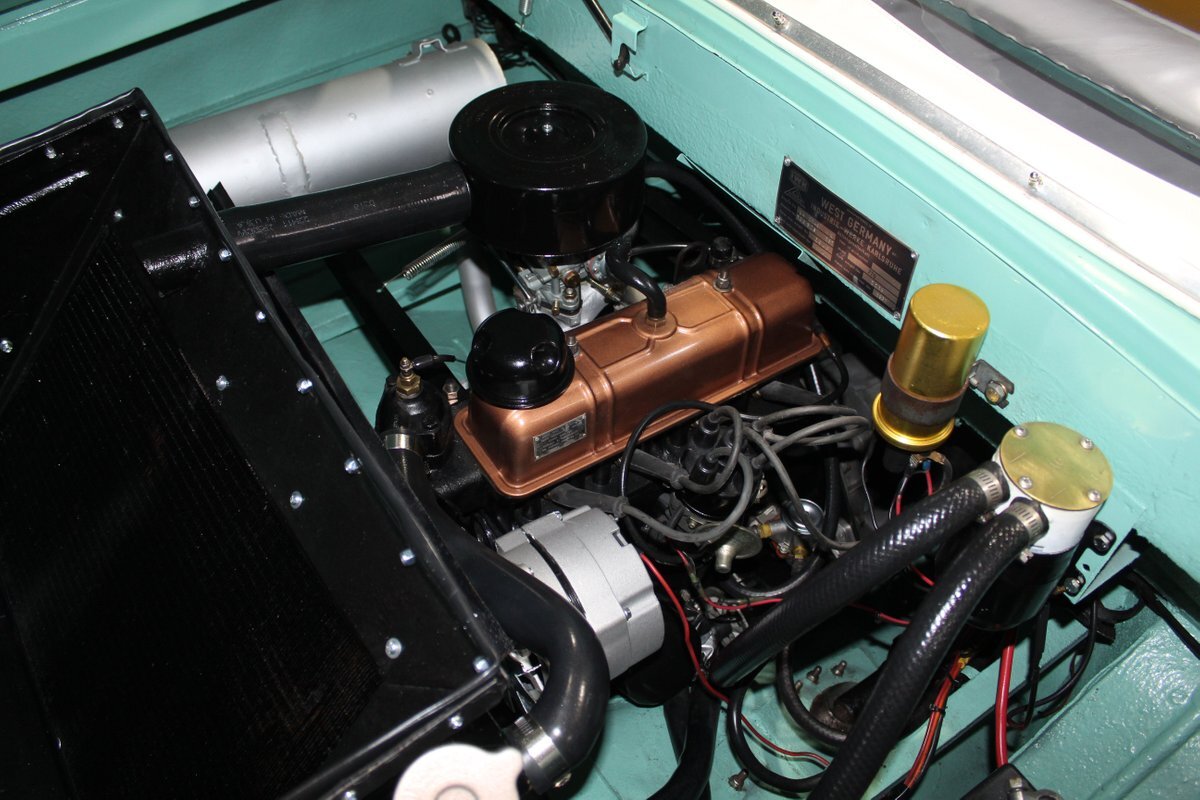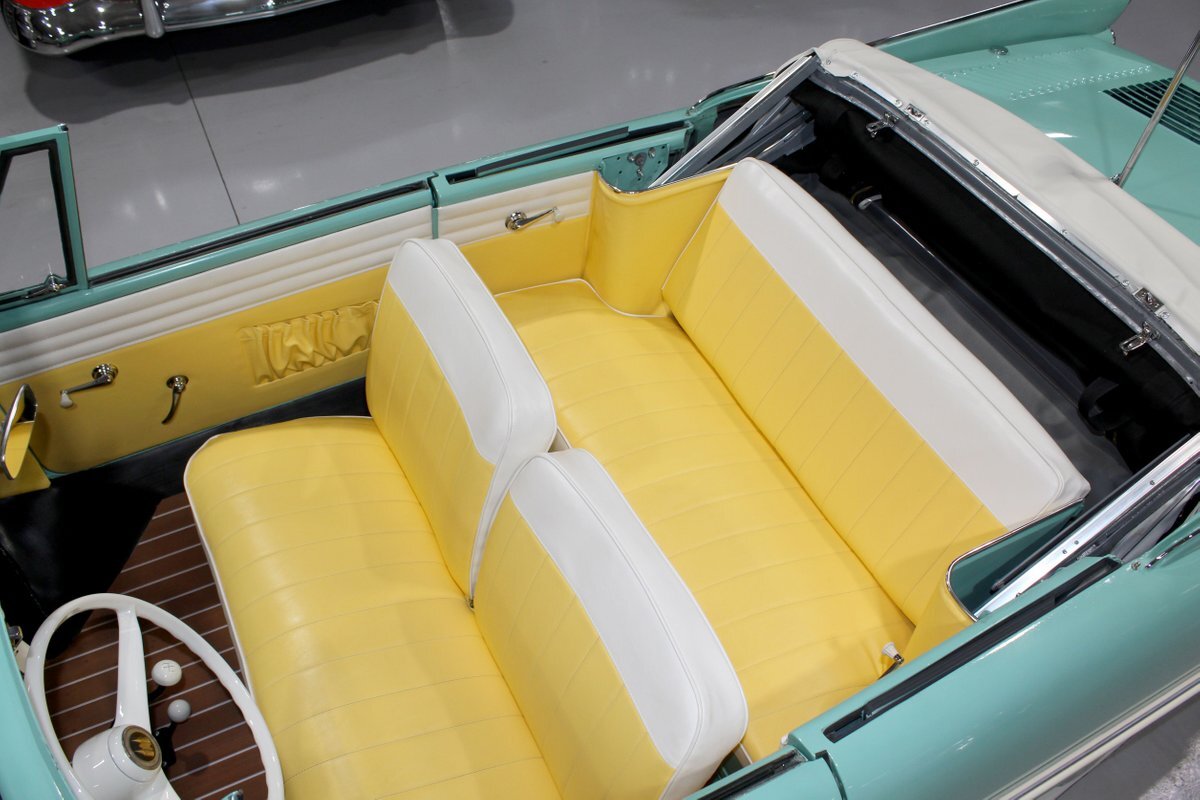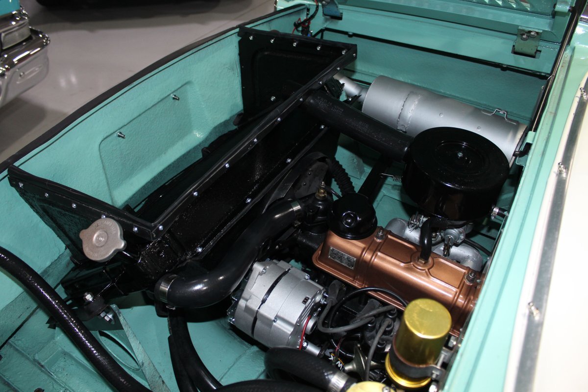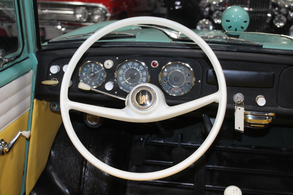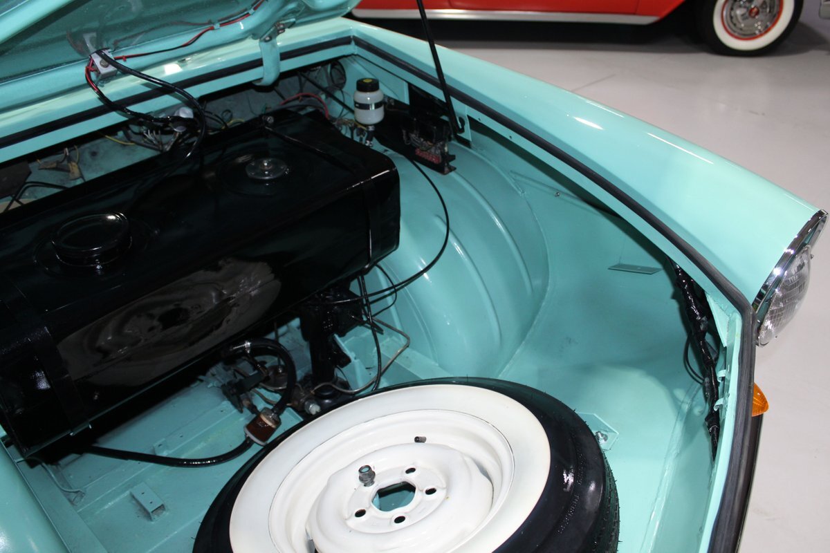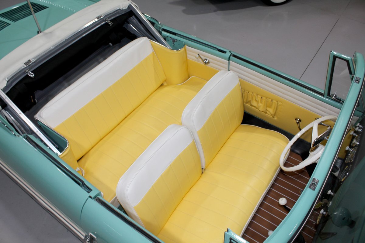 This 1965 Amphicar 770 is a beautifully restored example of the iconic amphibious vehicle that the public could drive to, and into the lake on a gorgeous summer day. Is it a boat or is it a car? It's both, it's an Amphicar! Back in the late 50s, the idea of amphibious vehicles was not particularly novel, especially in the worlds of military and scientific applications. However, the idea of an amphibious motor vehicle for personal use was practically unheard of until a group of West German scientists and engineers reportedly spent 15 years and approximately $25 Million researching and developing the idea. Making its US debut on April 1, 1961 at the Fifth Annual International Auto Show in New York City, the Amphicar was a truly unique automobile. The production version of the Amphicar was based off a concept vehicle designed by Hans Trippel that he had actually displayed at the 1959 Geneva Auto Show. Unlike the concept car that sported a British Austin motor, the production Amphicar was sold with a British Triumph engine. The special land and sea capable transmissions were sourced from the Hermes firm in Germany, who at the time were known for providing the transmissions for another famous German auto maker, Porsche. Perhaps most significantly, the fact that the Amphicar was built on its own platform (as opposed to being built on an existing car or boat) makes this amphibious vehicle particularly extraordinary. Dubbed "the sports car that swims," the Amphicar was touted for its ability to simply drive into water and instantly become a boat, thus being able to be transported without the need of a trailer. Additionally, the 770 model name was said to have come from the Amphicar's ability to travel 7 MPH in the water and 70 MPH on land. Despite the Amphicar's novel design and initial public excitement, they were only produced for a mere 7 years. A combination of weak demand and changes in the tightening EPA and DOT regulations lead to the firm's ultimate downfall. In the 7 year run, a total of approximately 800 Amphicars were produced and of that, only about 600 were sold in the US, which makes these exceptional pieces of automotive history especially desirable and collectible today. The British-sourced 1,147 cc Overhead Valve Inline 4 Cylinder engine is paired with a single barrel Solex carburetor is mounted in the rear of this vehicle and was said to have produced 43 horsepower when new. The 1,147 CC engine is backed by a German-sourced Hermes 4 speed manual transmission that was capable of switching between land and sea driving with the flip of a switch. This Amphicar is equipped with a 12 Volt electrical system which provides an improved startup and overall electrical performance. On land, this 1965 Amphicar 770 rides on a set of radial tires on painted steel rim with wheelcovers and in the sea it is propelled via a pair of propellors underneath the vehicle towards the rear. The white vinyl convertible top is manually operated and it's in fantastic condition. The exterior on this Amphicar has been refinished in a beautiful Fjord Green that just has a great look for such an eccentric vehicle. Superb chrome and brightwork around the exterior of this Amphicar 770 completes its exterior appearance. The interior on this Amphicar is absolutely fantastic! The front and rear bench seats, and door panels have all been beautifully reupholstered in a two-tone color scheme consisting of Yellow and White Vinyl. The dash, woodgrain floor, and steering wheel are all in wonderful condition as well and all appear to be in their stock configuration. The dash is outfitted with a 90 MPH speedometer, temperature gauge, and fuel gauge, along with a clock. An Equus temperature gauge is also mounted neatly under the dash as well. Whether you're adding to your existing collection or you're buying your first classic car, this 1965 Amphicar 770 would make an excellent choice. Give us a call today!