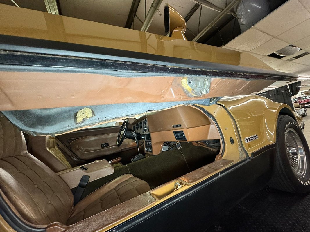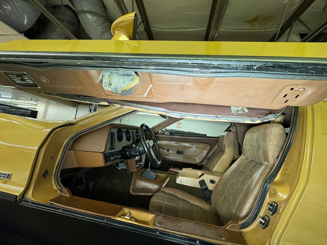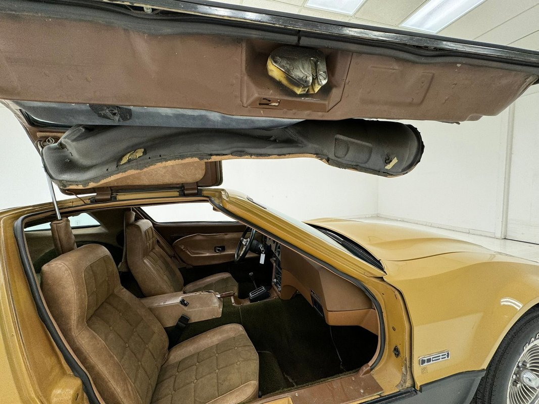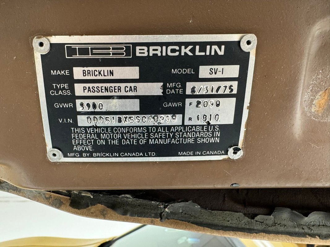 This interesting build of a car in the form of a 1975 Bricklin that will never rust on the body because it's an all color infused acrylic body. This one is in Suntan, (between mustard and gold), on the panels, with wide black rockers. It has both the doors working perfectly, does not leak, and is in excellent condition. This is due to the fact that our consignor, the original owner, put the car into storage right after the company's demise in 1976. He drove it sparingly, and kept it maintained while in deep sleep. It is a 48 yer old car but runs like new!