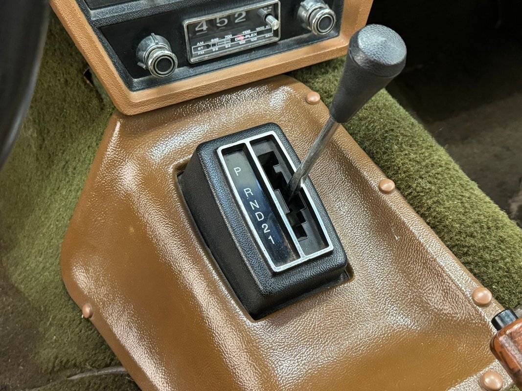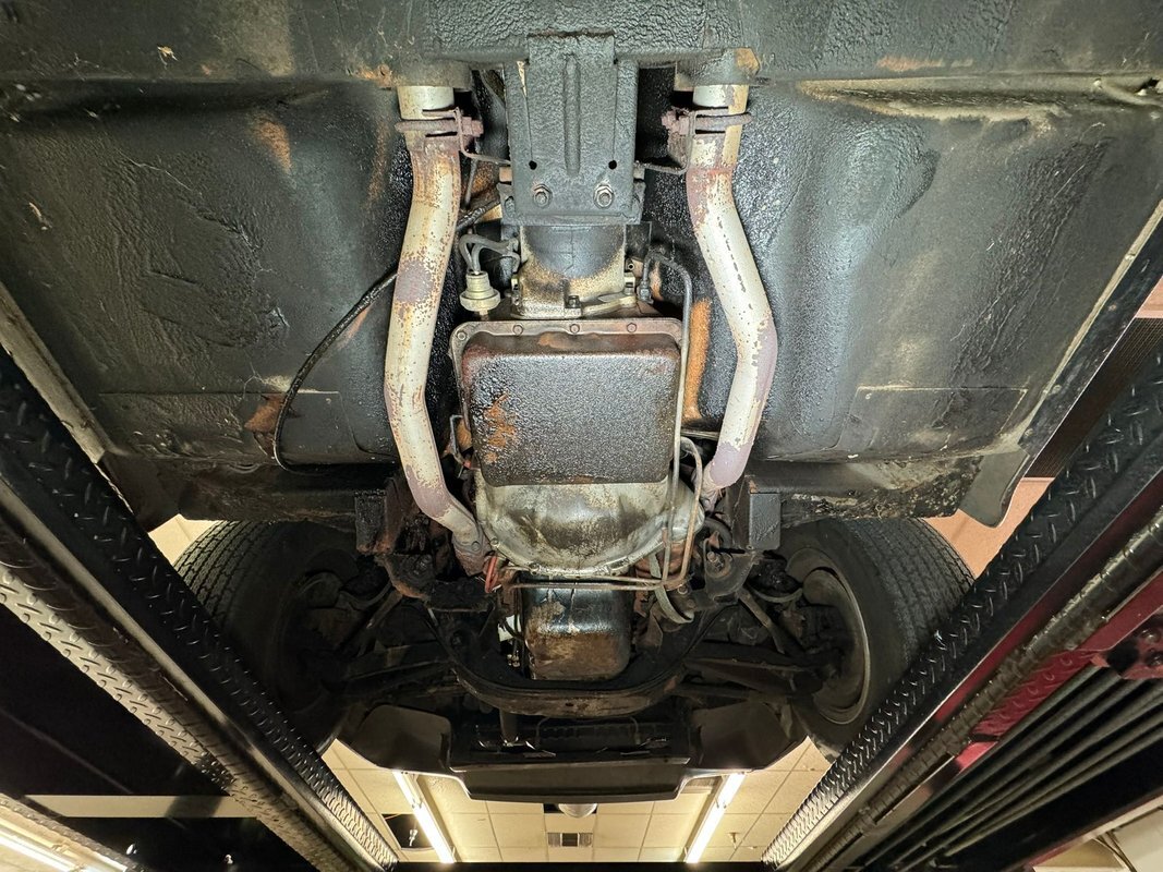 1975 models came with a Ford 351ci Windsor V8 and that's what resides in the unmolested and dusty engine bay. It is topped with a 4-barrel carburetor and has a FMX 3-speed automatic transmission on back, (the only option available in 1975). This engine has a bit of paint wear off and slightly oiled blue painted valve coverings. The rear axle weighs in with a 3.15 ratio, providing the perfect mix of performance and economy.