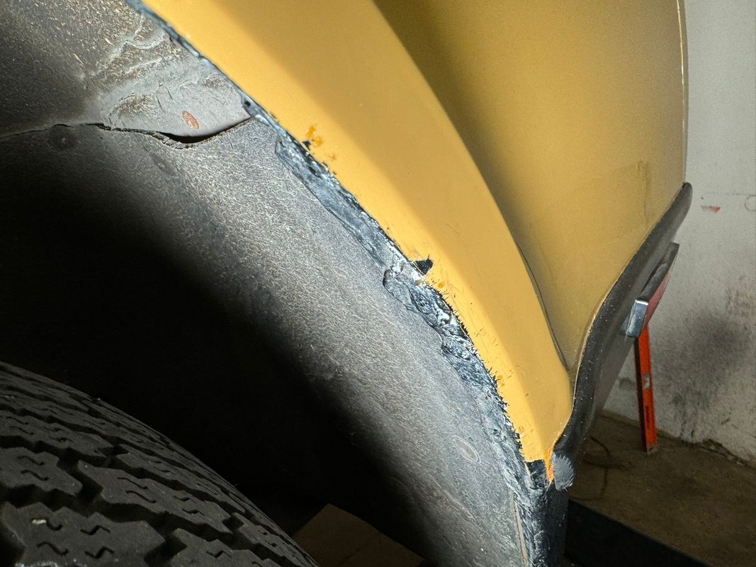 Showing in Suntan this gull winged and neoprene inserted to the front crash bumper car presents in its factory infused acrylic and it is all in good shiny condition. Wide black accenting is surrounding the lowers of the car as well as the rectangular rear bumper. Gullwing doors and a separate crash bumper which inserts into the grille area as well as hidden headlights are associated with this car. Id have to say a front view of this car looks like its sticking its tongue to at you...Raspberries..! The fit and finish are good with some cracking in the hood at the faux vent panels being noted, a bit of rust is seen under the rocker trimmings, and scratching on the neoprene black bumpers as these have encounters with walls or curbs are the flaws to be noted throughout the body. Looking closely at the lines it resembles the Datsun 240 and 260 Z cars that were invading from Japan at the time. This totally low-slung body rests on 15-inch turbine style wheels and old skool kewl BF Goodrich tires in 245/60R15 format all around.