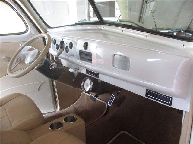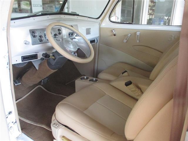 The 39 Master Deluxe Business Coupe had essentially the same body as the 37-38 models but was reworked just enough to give it a fresh look. One of the most noticeable changes was the new front clip that gave it a distinct resemblance to the Cadillac. This particular example was transformed into a street rod that retains its original unrestored grille. The heart of this rod is a 327ci V8 that was rebuilt before installing it 35,655 miles ago and is estimated to put out 300+ hp. It is fed via an Edelbrock 4bbl carb and hi-rise Performer intake, it is sparked by a Mallory electronic ignition and it sounds just plain nasty ripping through its performance dual exhaust system. Power is put to the Ford 9” posi rear end via a performance built T400 auto tranny. It has been upgraded to a 4 wheel independent suspension with 4 wheel power disc brakes and it was also upgraded with power steering. It was restored about 15 years ago at which time it was repainted in a gorgeous Metallic White that just sparkles in the sun. The interior was redone about 6 or 7 years ago in a gorgeous 2-tone cream and tan leather interior. It has 8-way power seats with power lumbar adjustments and multiple heat settings. There is a gorgeous Billet Specialties steering wheel that is accented with billet cranks, knobs, wiper arms as well as a billet gear selector. It was upgraded with Vintage Air a/c, heat and defrost. It retains all of its original glass which is why you will see some delaminating in the vent windows as well as a small crack in one of the windshields. The paint has some small flaws which are noticeable upon close inspection. You will notice a few spots that were touched up, a couple of spots that are spider webbing and the jambs being a weak spot. It is, however, an all steel car that looks amazing from 3 feet away. It’s fitted with a sweet set of Eagle Alloy billet wheels that really give it a great stance. Everything works perfectly with the exception of the a/c which is in need of recharging. The car is geared to cruise comfortably at 65-70 mph and is an absolute pleasure to drive. We have priced it to sell so if you like what you see please reach out before it is too late!