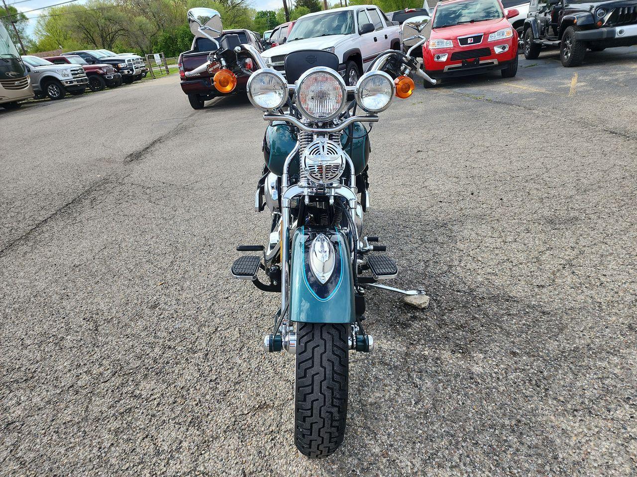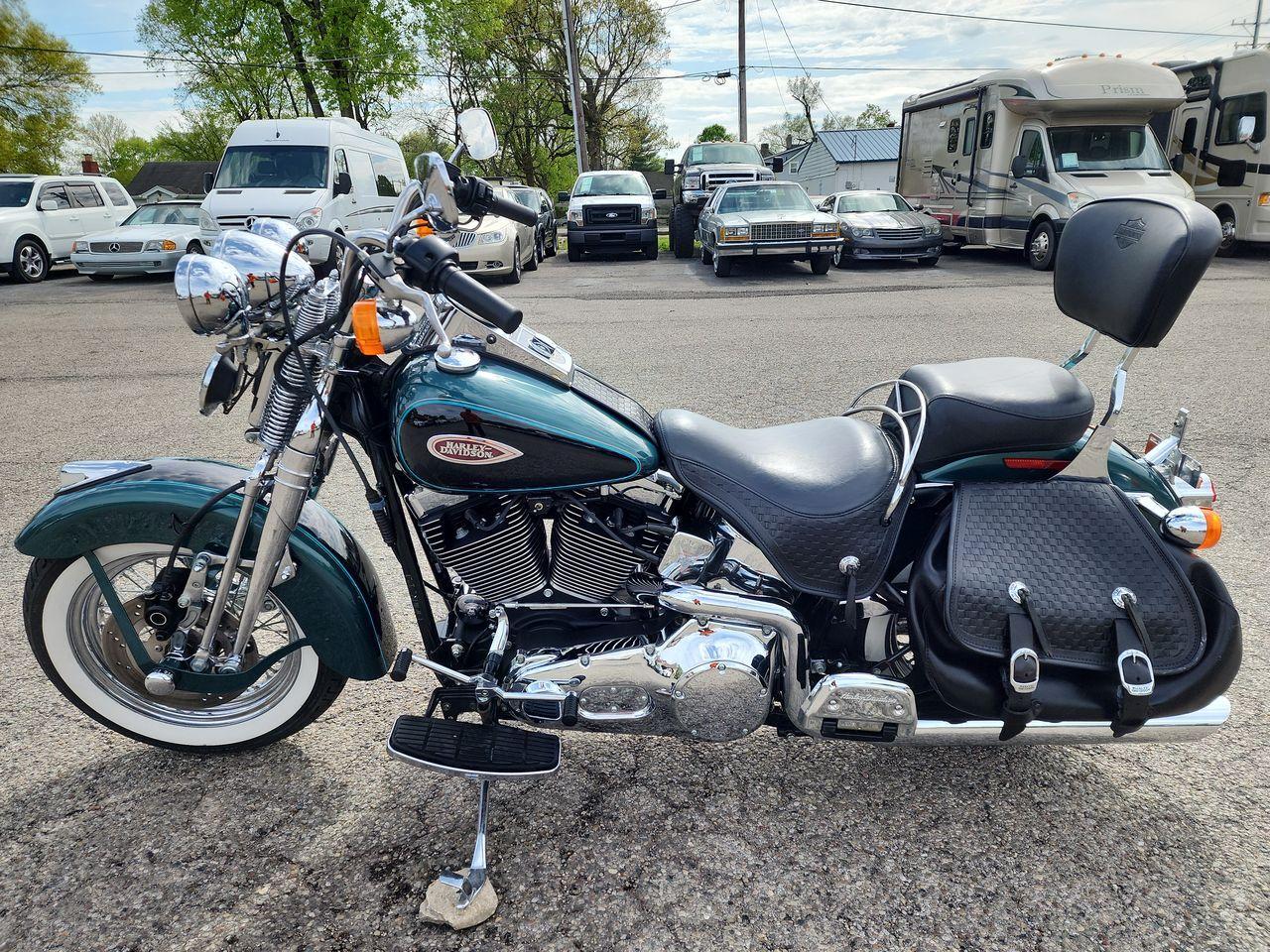 ONLY 3,071 ORIGINAL MILE HERITAGE SPRINGER!!! 2001 only rare Suede Green Pearl factory paint color. Very original bike, passenger backrest, nice original leather bags, passenger floorboards with covers, Factory dual exhaust system with upgraded slip on mufflers. Very good condition with just a couple minor touched up nicks from garage storage on the fender tips. Runs and rides great with no issues to be noted, fully inspected and turn-key ready! A clean original garage kept bike with ultra low mileage!