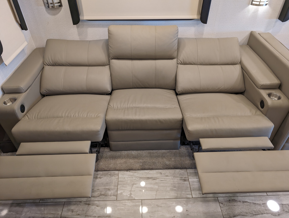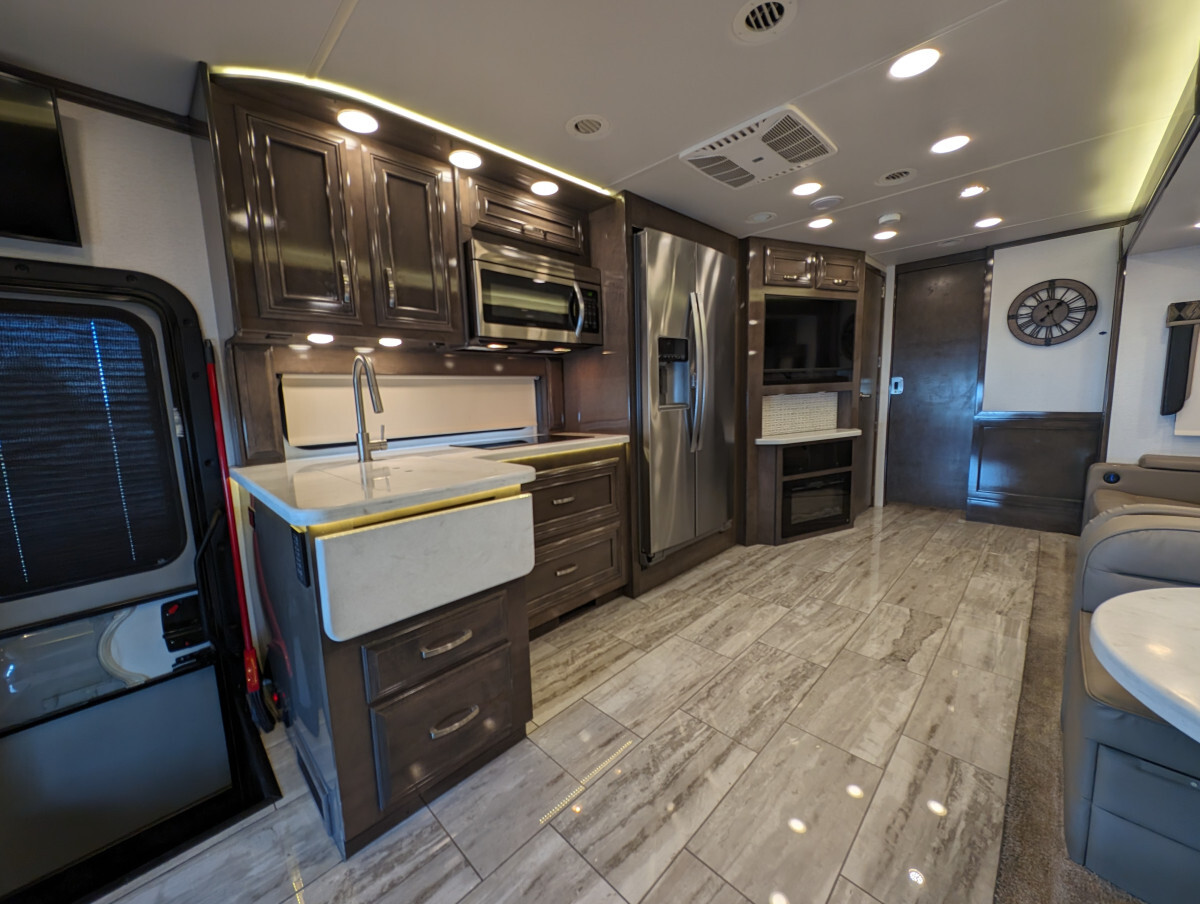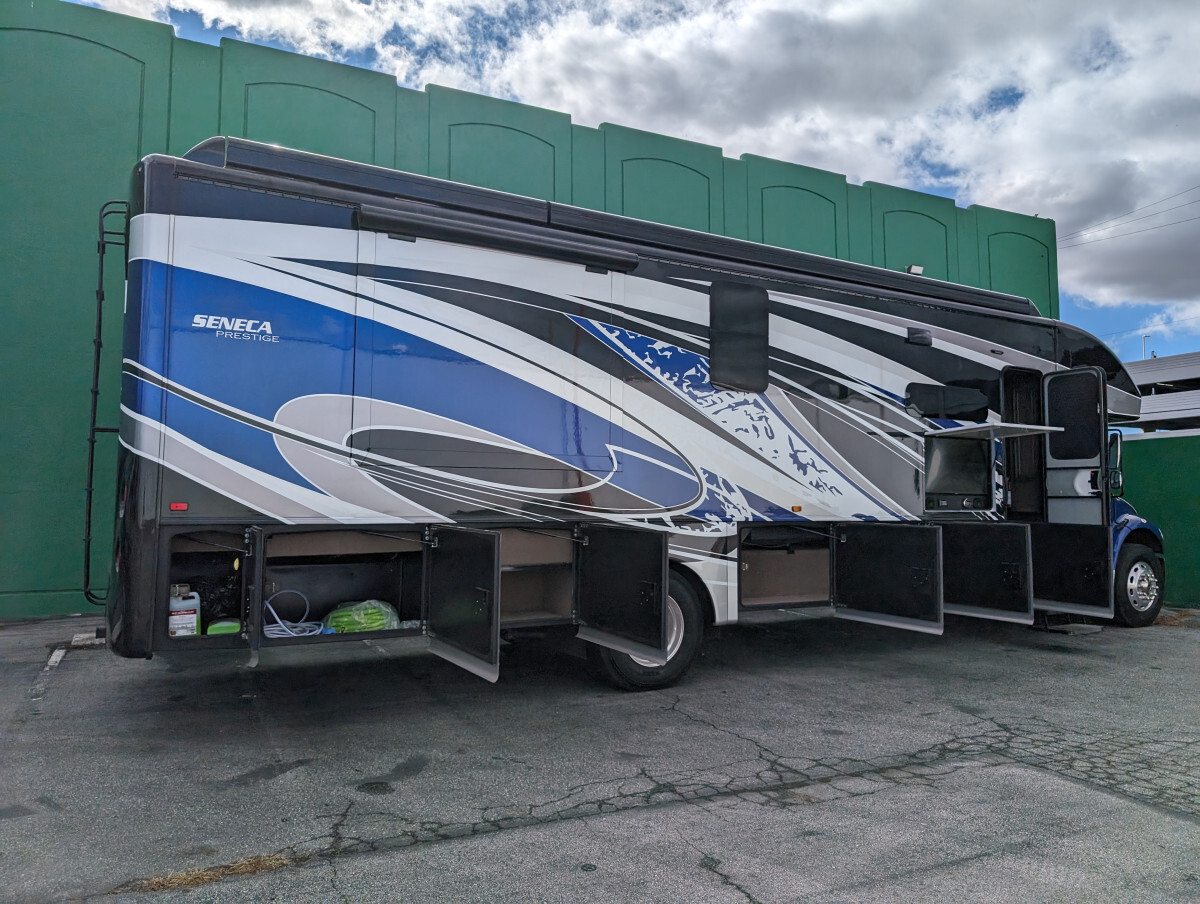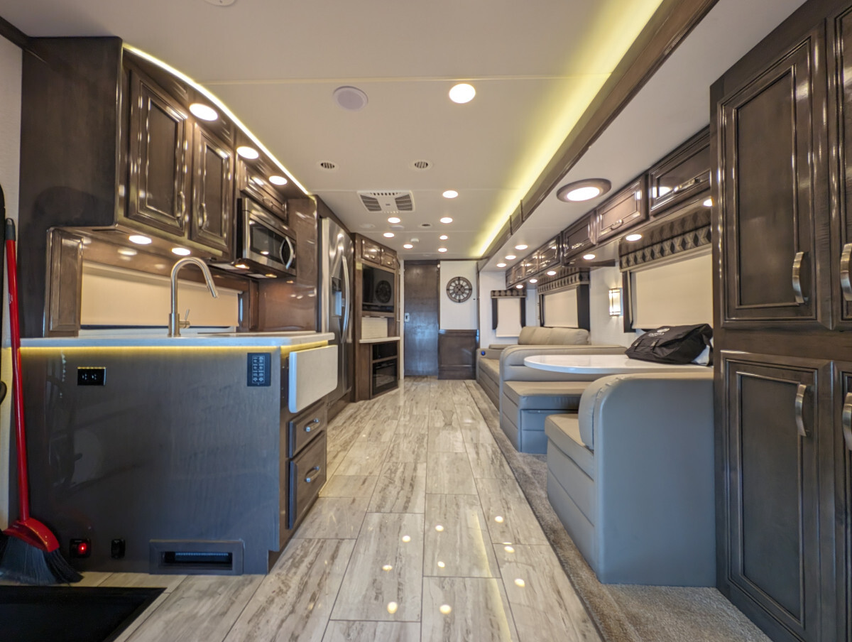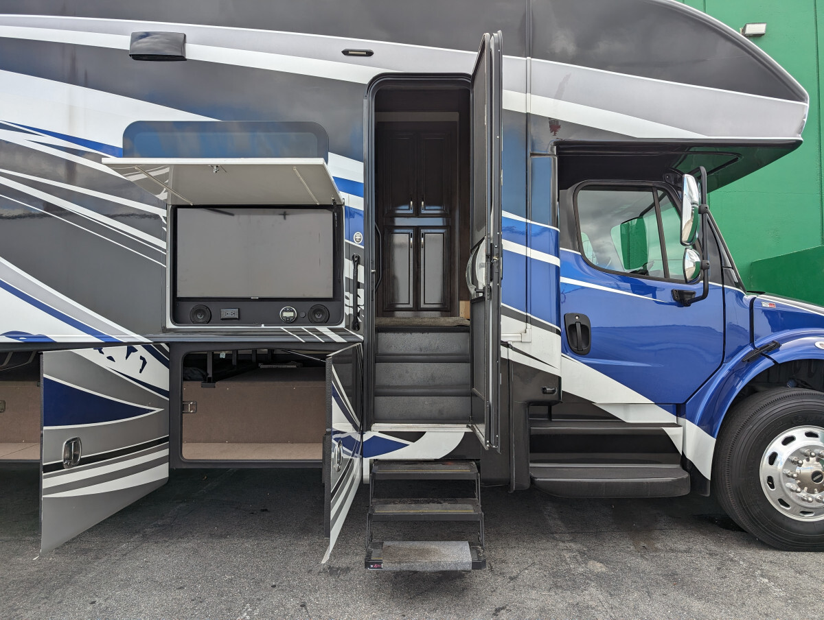 Here at FAM Vans we have over 350 vans and trucks in stock at any given time, plus we get fresh inventory every month. We can modify any vehicle to fit your needs or find the right one that fits your budget! Full Parts and Service departments. Take a closer look at this vehicle on our Youtube page, click the link below: -Sleeps 7-39.5' feet long-4 Smart TVs-Heated & cooled floors-Marble tile floors (Extra tile below coach)-Two Bathroom-Shower-Washer & Dryer-Full size couch with auto extend footrest-Full size refrigerator side by side-Full kitchen-Complete storage under coach-Self leveling-25' electrical cord on electric reel-100 ft 50 amp extension cord-Lithium batteries - with Bluetooth