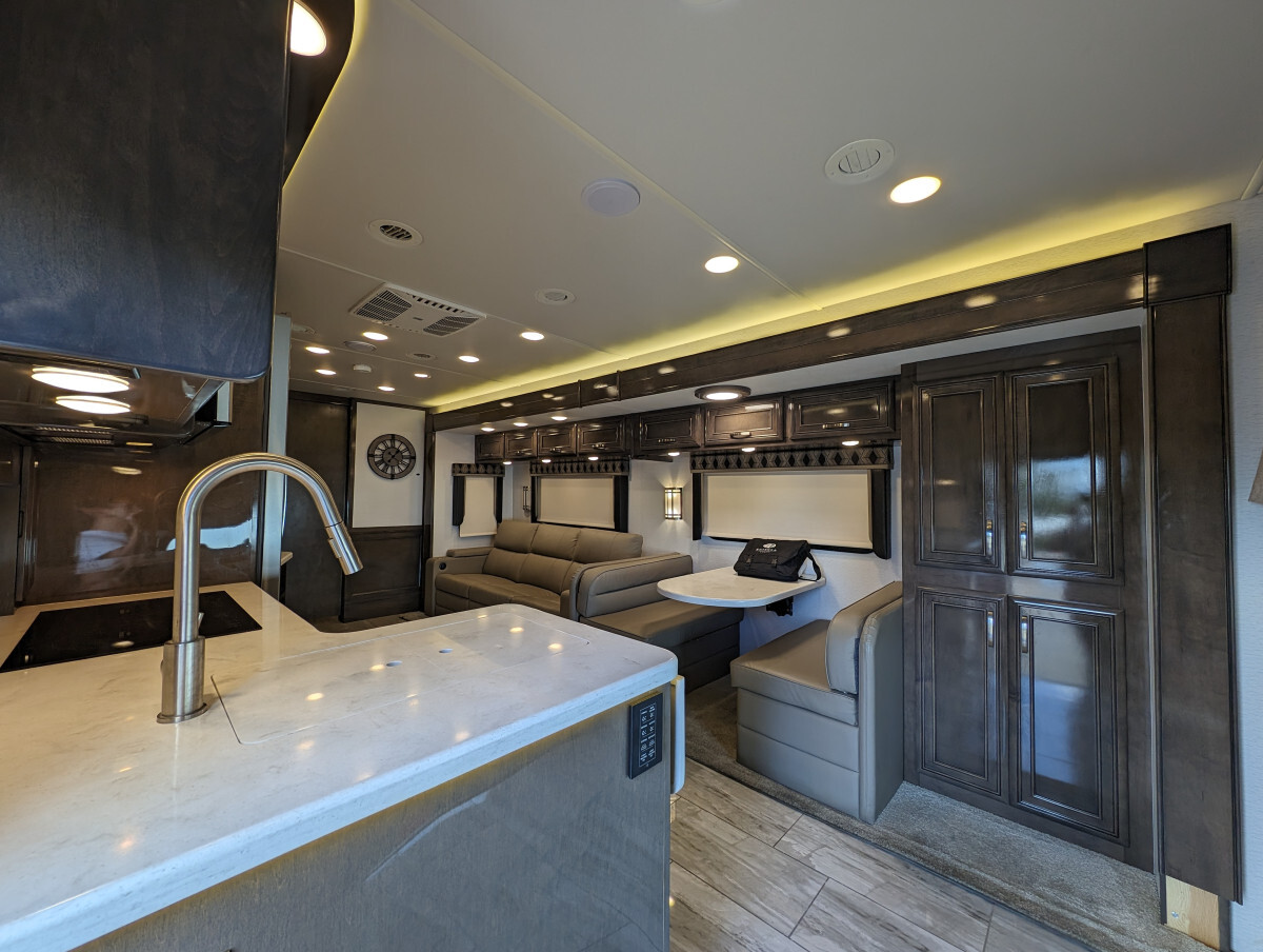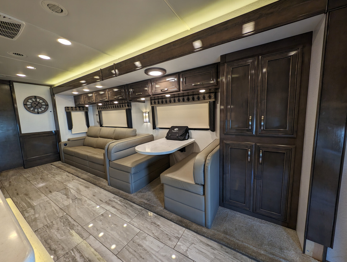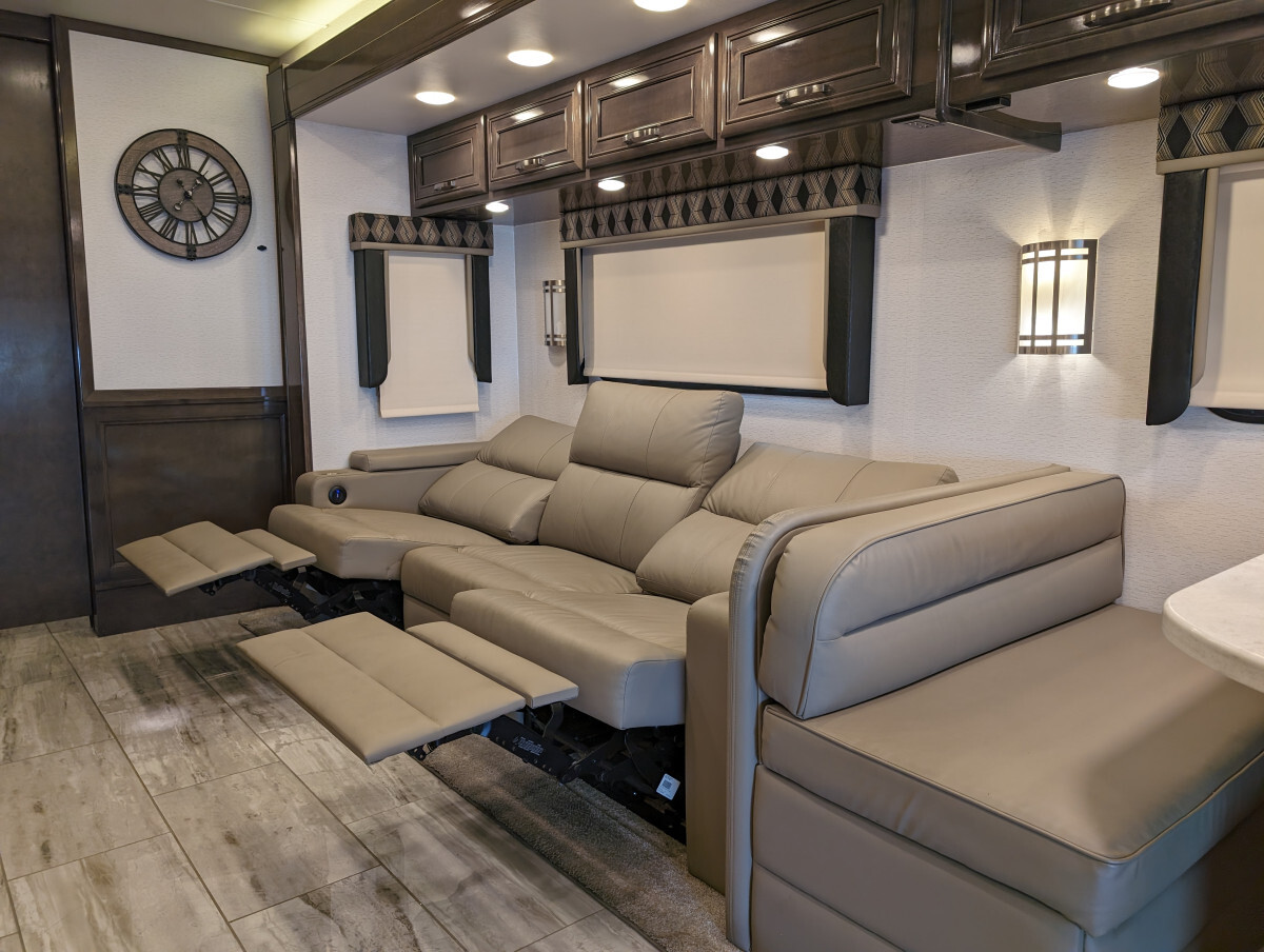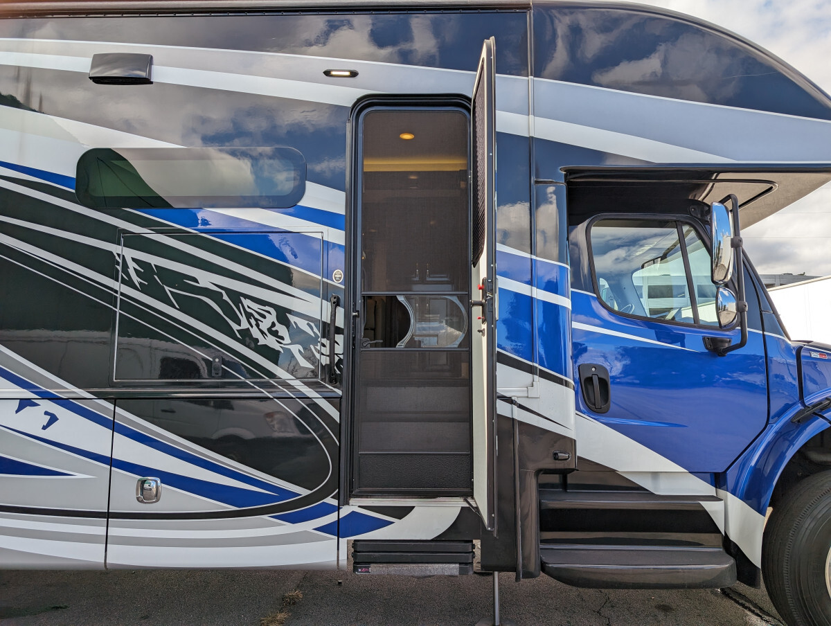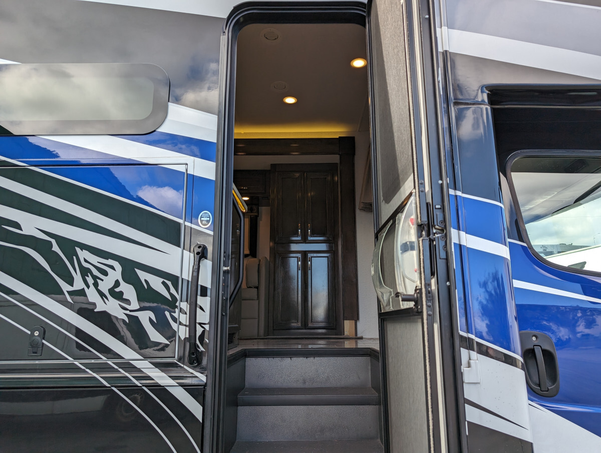 Here at FAM Vans we have over 350 vans and trucks in stock at any given time, plus we get fresh inventory every month. We can modify any vehicle to fit your needs or find the right one that fits your budget! Full Parts and Service departments. Take a closer look at this vehicle on our Youtube page, click the link below: -Sleeps 7-39.5' feet long-4 Smart TVs-Heated & cooled floors-Marble tile floors (Extra tile below coach)-Two Bathroom-Shower-Washer & Dryer-Full size couch with auto extend footrest-Full size refrigerator side by side-Full kitchen-Complete storage under coach-Self leveling-25' electrical cord on electric reel-100 ft 50 amp extension cord-Lithium batteries - with Bluetooth