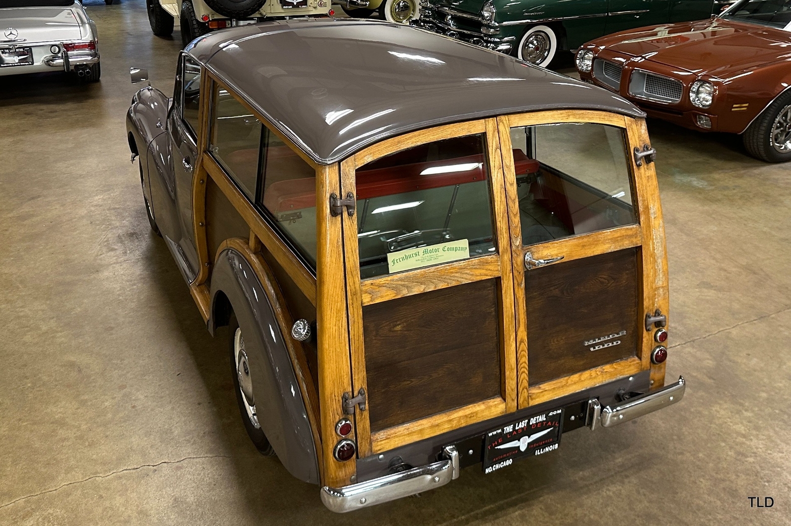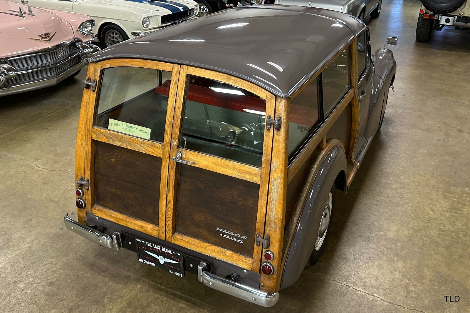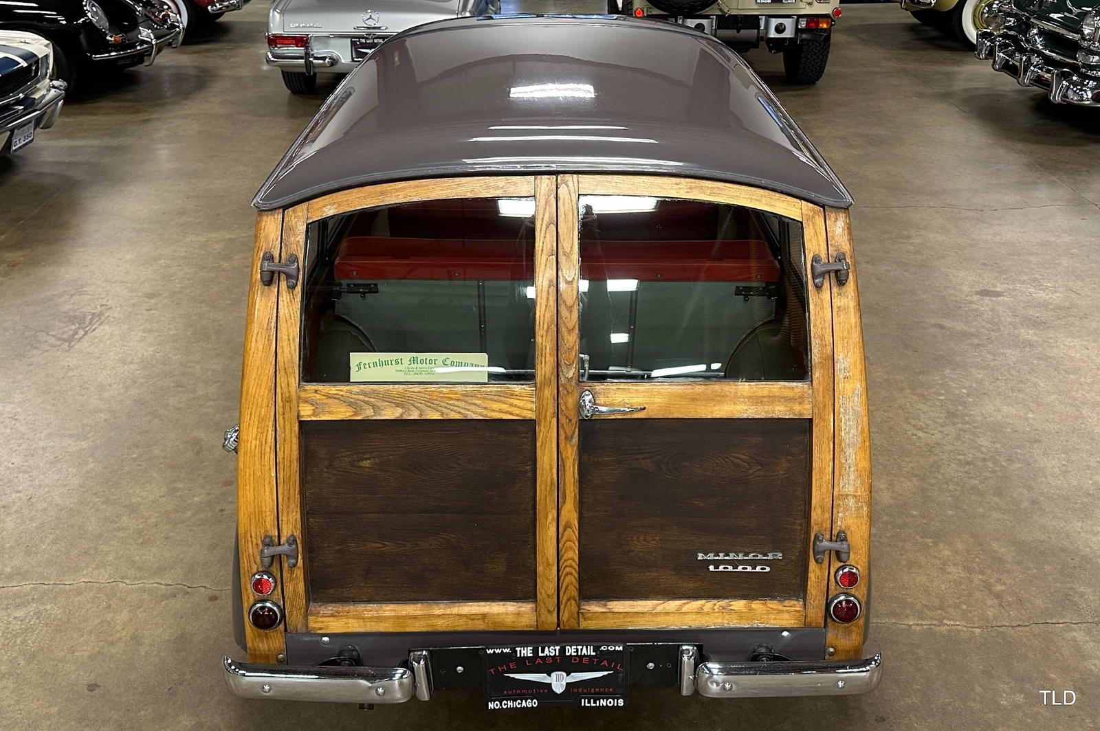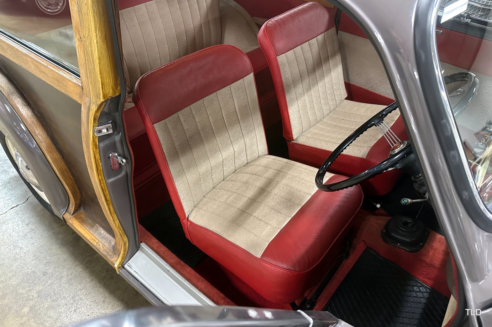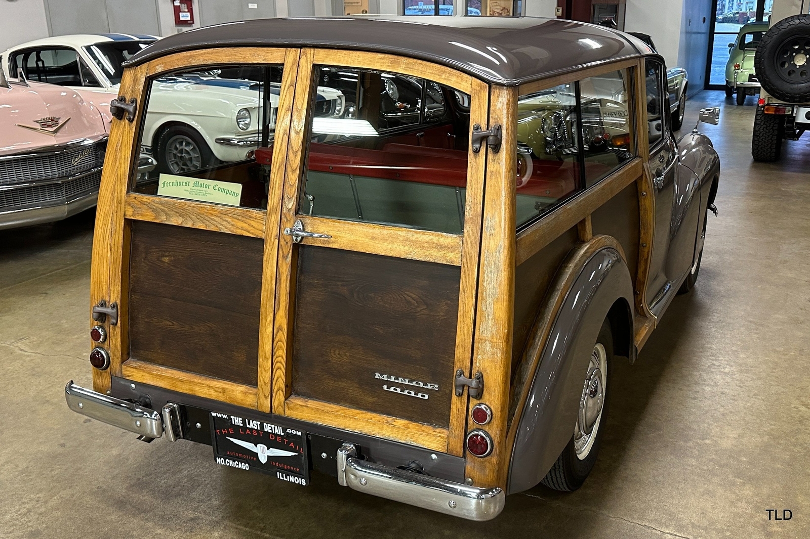 The Traveller's versatile Beige and Red 2-tone interior includes front bucket seats, an 80-mph speedometer, a rear bench seat, and roomy cargo compartment. Complete bright trim, full wheel covers, and period style Blackwall tires compete the exterior. An interesting additional feature is the British dealer sticker affixed to a rear window. Chic, cheeky, and exceptionally well preserved, this highly original 1965 Morris Minor 1000 Traveller Estate Wagon is a great example of the immensely successful Minor. Be sure to contact us today to see it for yourself, obtain full details, and get ready to add this wonderful British Woodie to your collection.