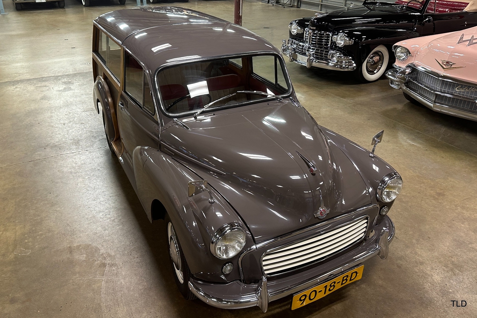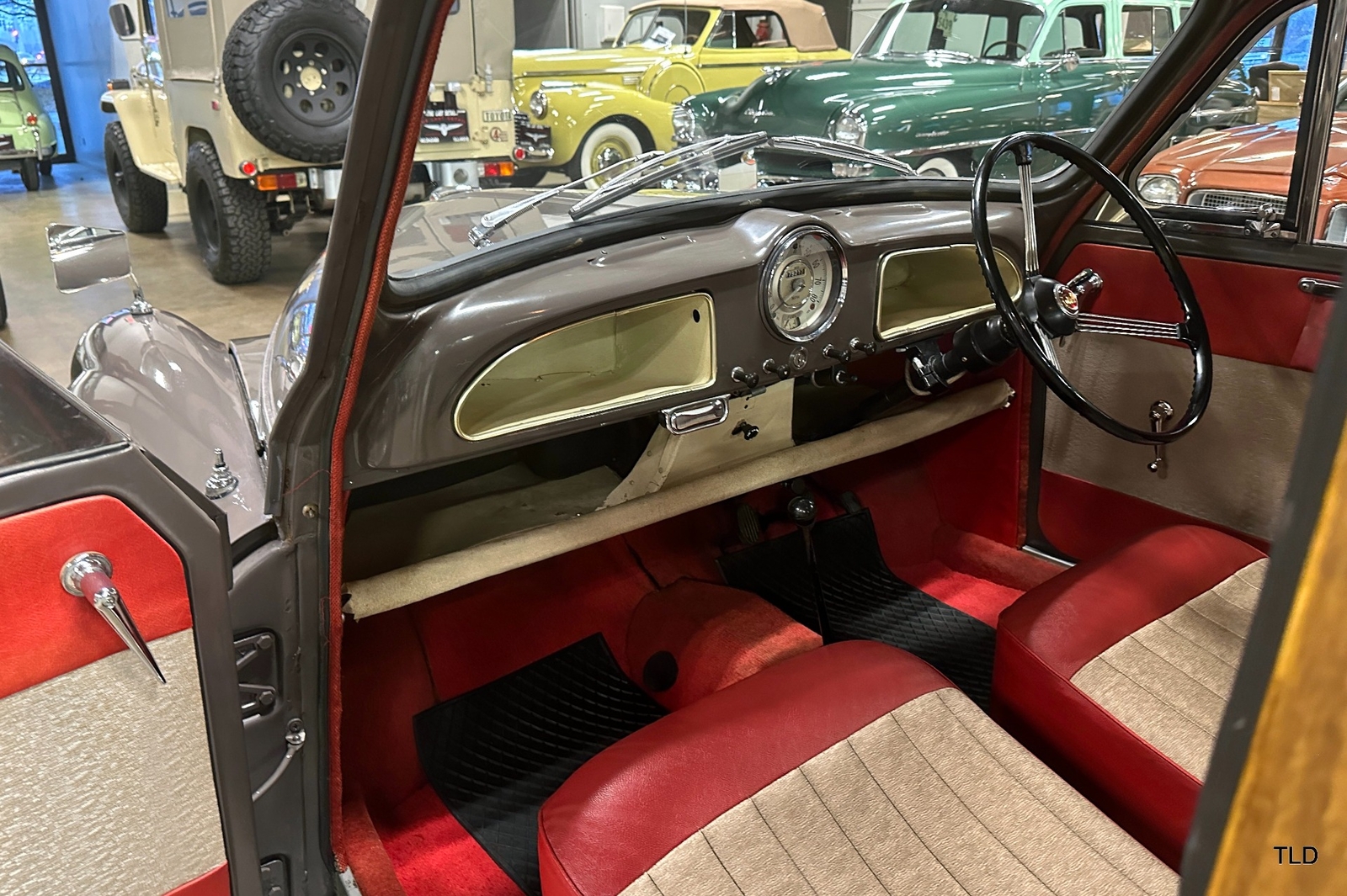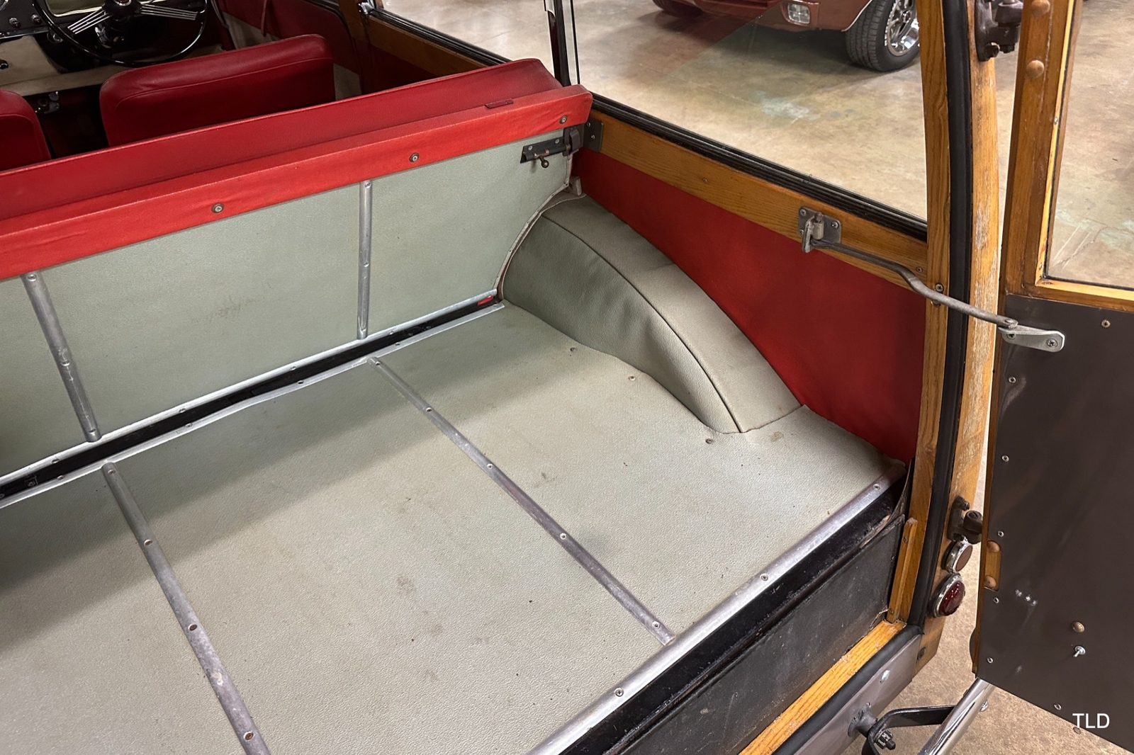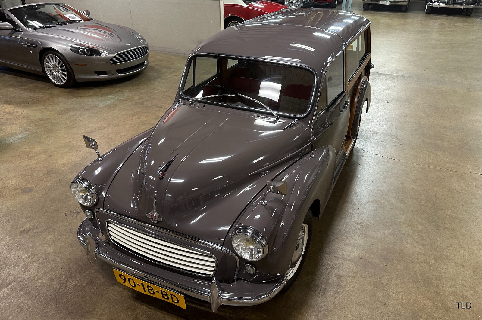 The Traveller's versatile Beige and Red 2-tone interior includes front bucket seats, an 80-mph speedometer, a rear bench seat, and roomy cargo compartment. Complete bright trim, full wheel covers, and period style Blackwall tires compete the exterior. An interesting additional feature is the British dealer sticker affixed to a rear window. Chic, cheeky, and exceptionally well preserved, this highly original 1965 Morris Minor 1000 Traveller Estate Wagon is a great example of the immensely successful Minor. Be sure to contact us today to see it for yourself, obtain full details, and get ready to add this wonderful British Woodie to your collection.