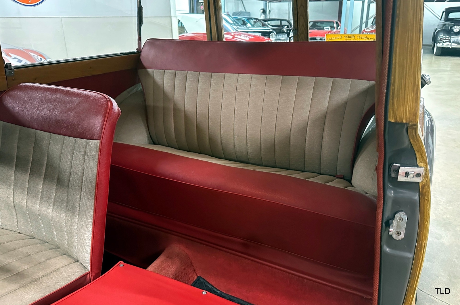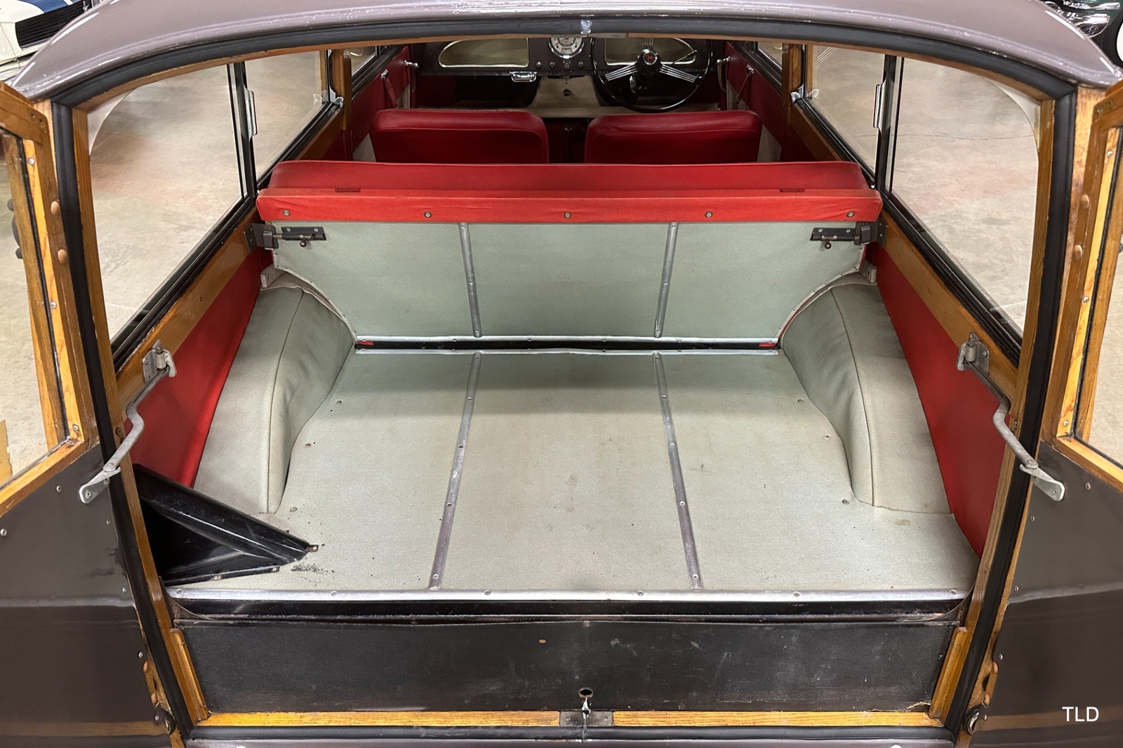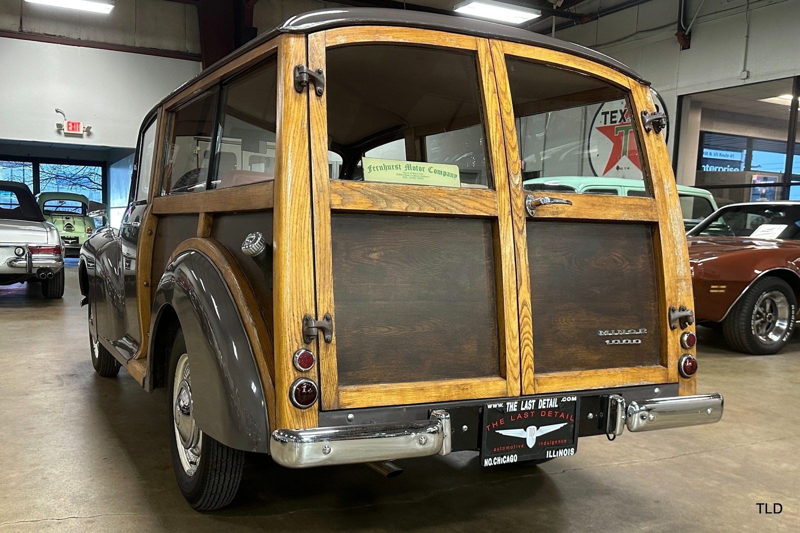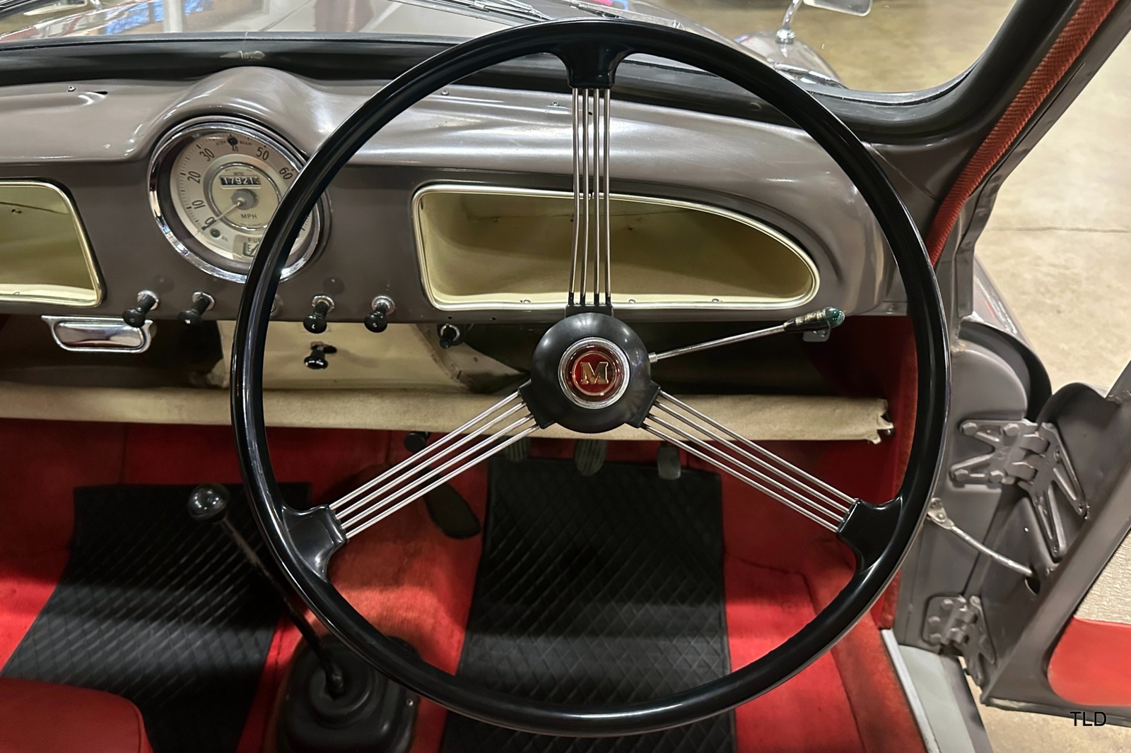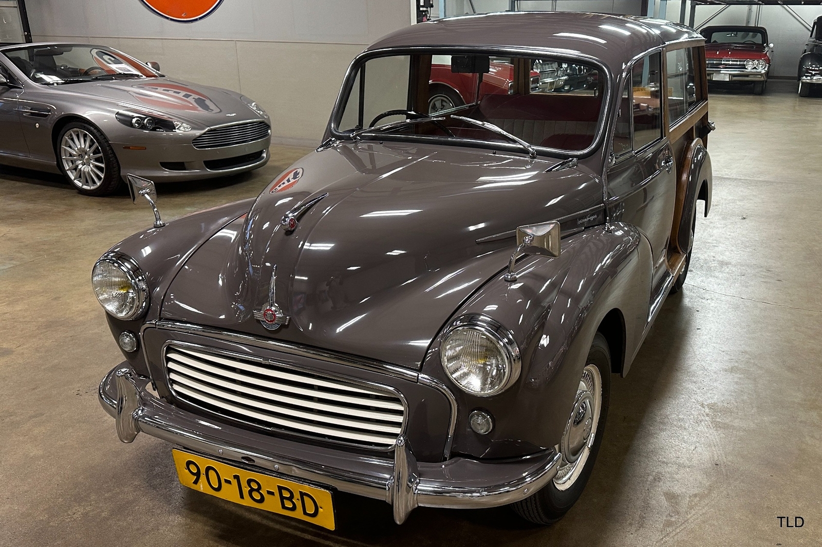 The Traveller's versatile Beige and Red 2-tone interior includes front bucket seats, an 80-mph speedometer, a rear bench seat, and roomy cargo compartment. Complete bright trim, full wheel covers, and period style Blackwall tires compete the exterior. An interesting additional feature is the British dealer sticker affixed to a rear window. Chic, cheeky, and exceptionally well preserved, this highly original 1965 Morris Minor 1000 Traveller Estate Wagon is a great example of the immensely successful Minor. Be sure to contact us today to see it for yourself, obtain full details, and get ready to add this wonderful British Woodie to your collection.