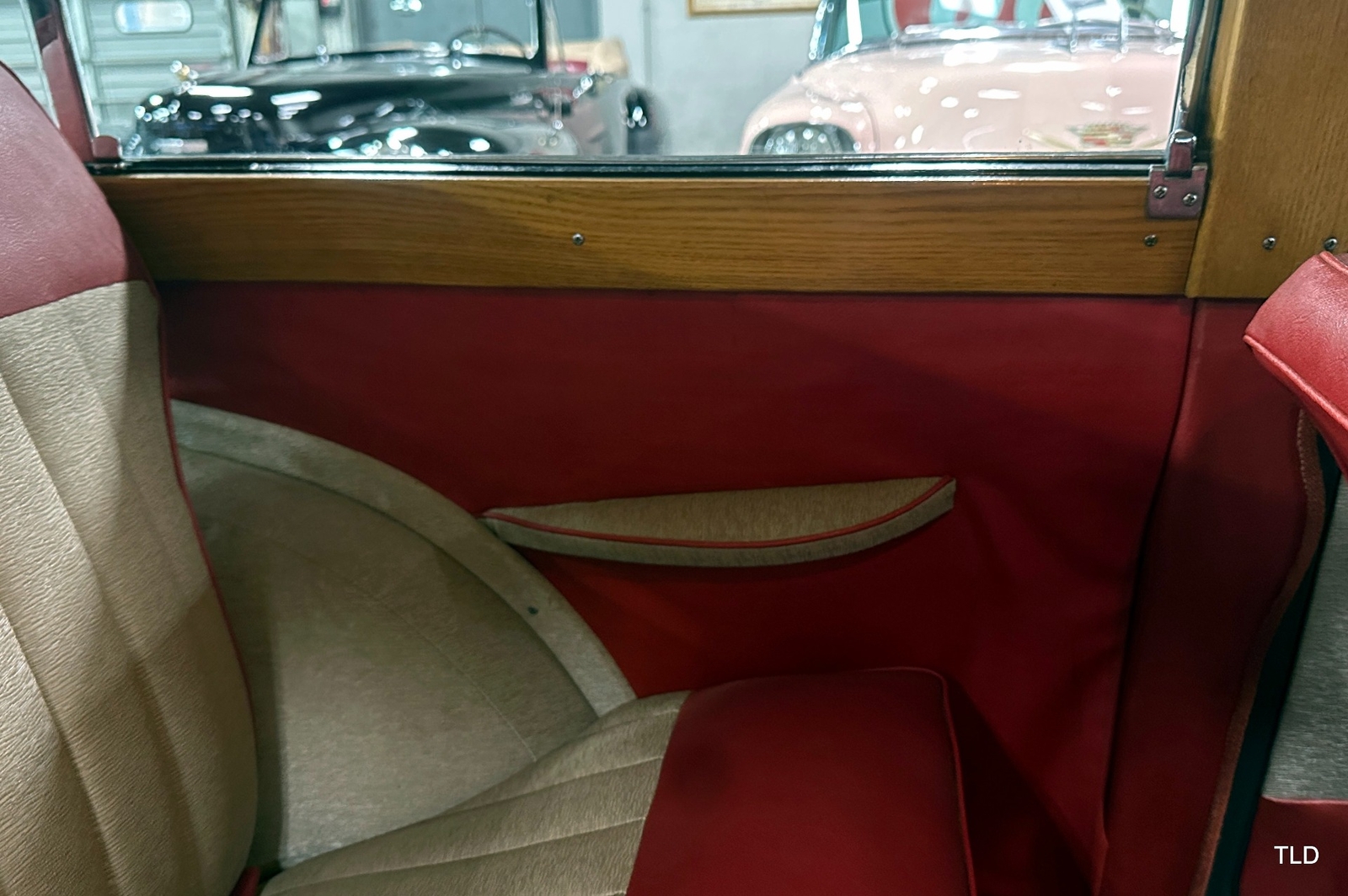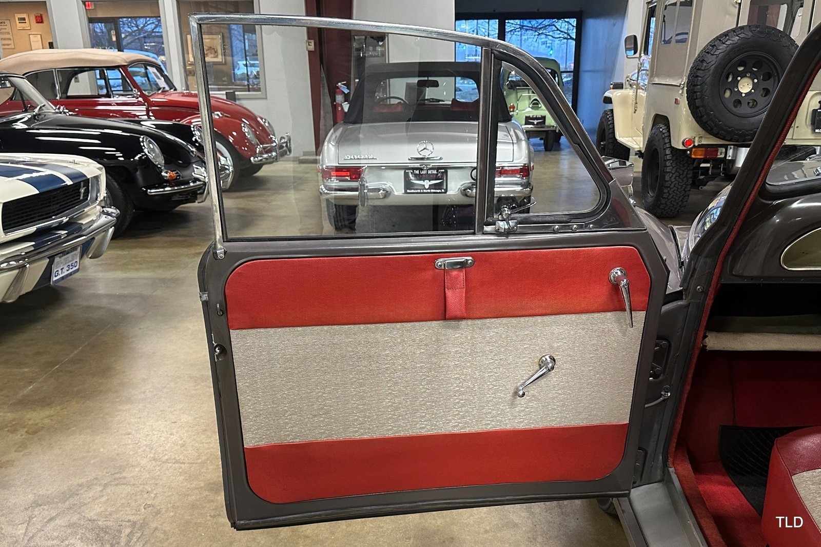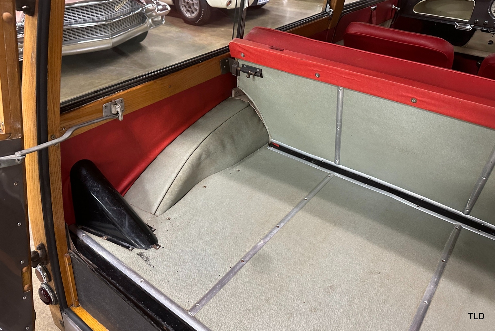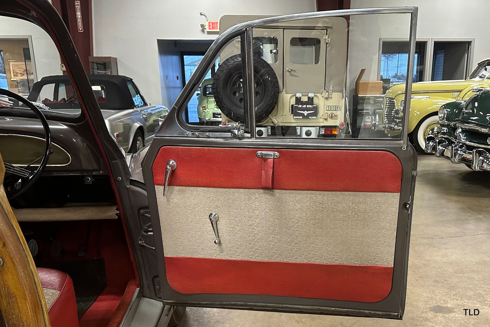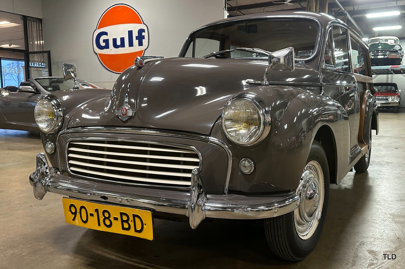 The Traveller's versatile Beige and Red 2-tone interior includes front bucket seats, an 80-mph speedometer, a rear bench seat, and roomy cargo compartment. Complete bright trim, full wheel covers, and period style Blackwall tires compete the exterior. An interesting additional feature is the British dealer sticker affixed to a rear window. Chic, cheeky, and exceptionally well preserved, this highly original 1965 Morris Minor 1000 Traveller Estate Wagon is a great example of the immensely successful Minor. Be sure to contact us today to see it for yourself, obtain full details, and get ready to add this wonderful British Woodie to your collection.