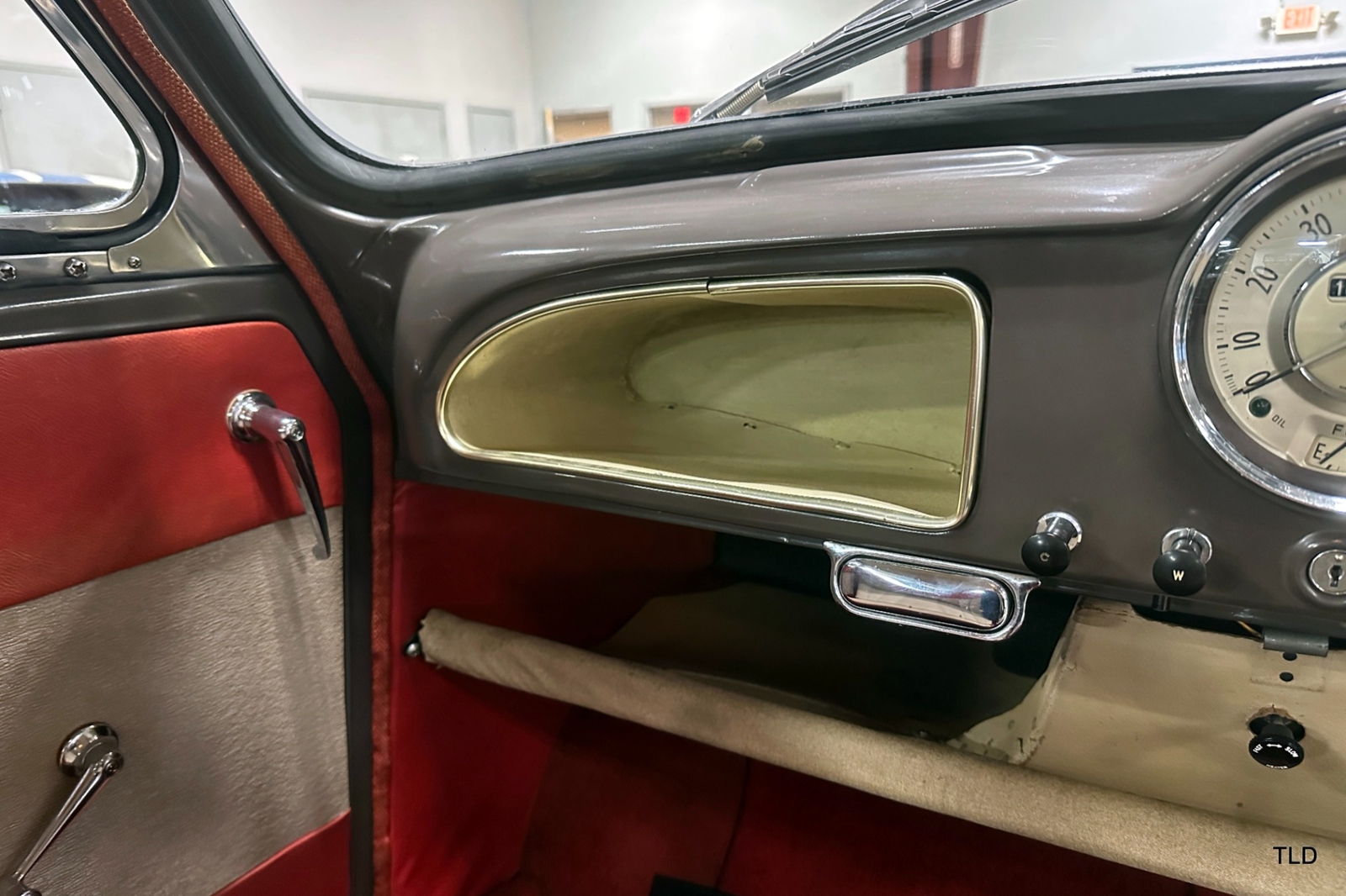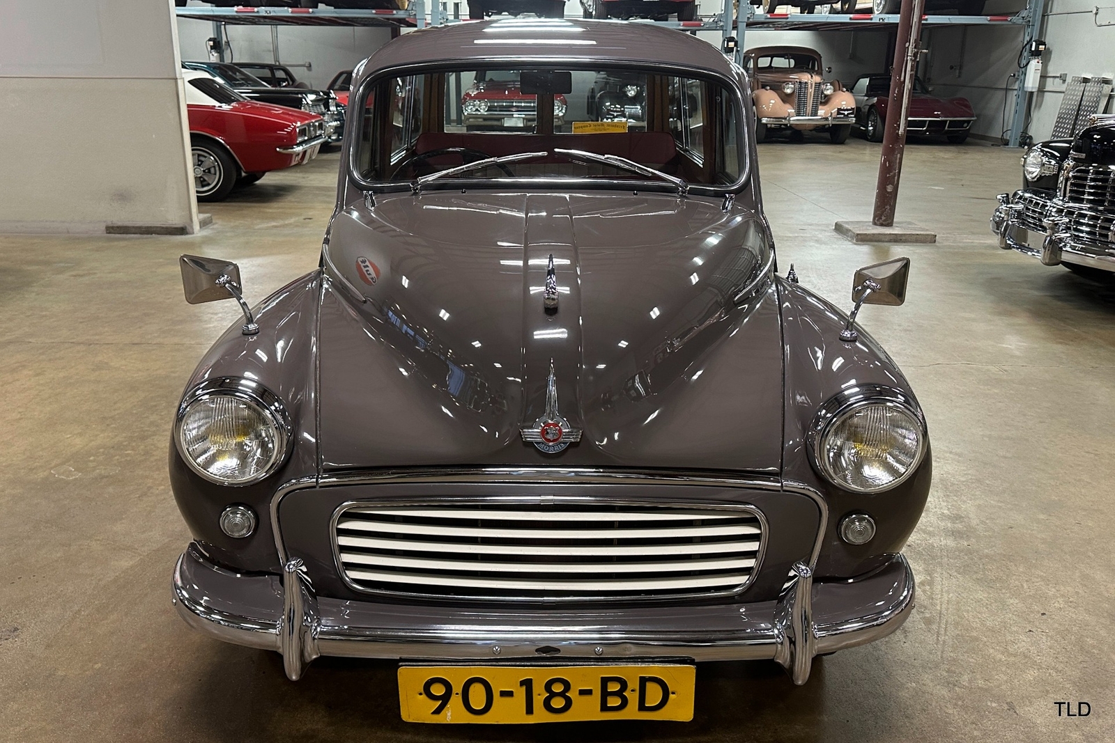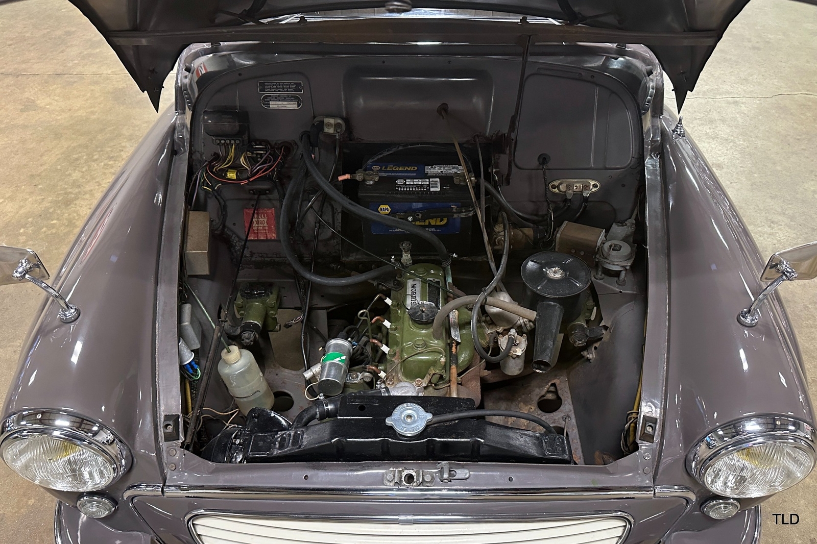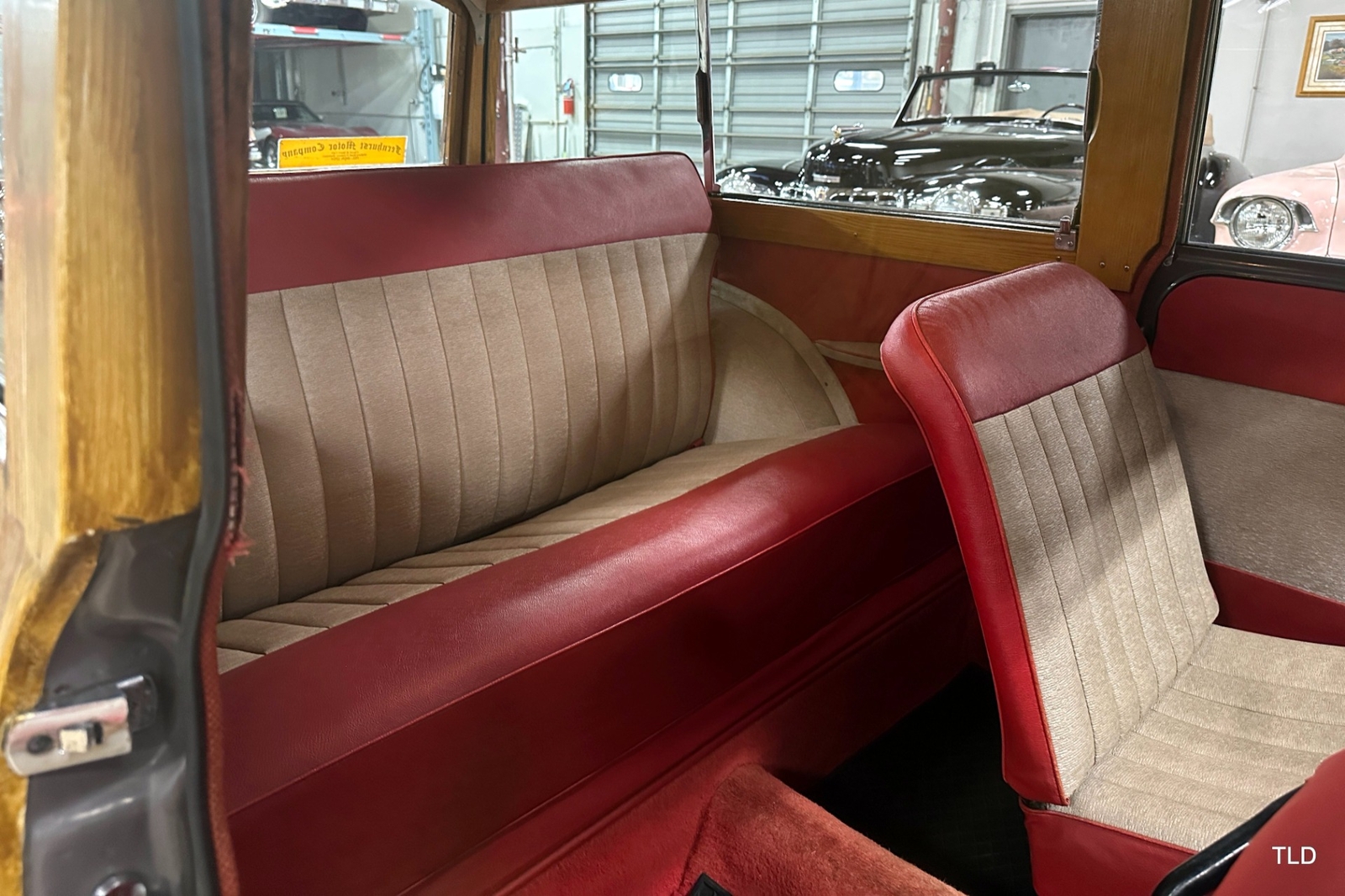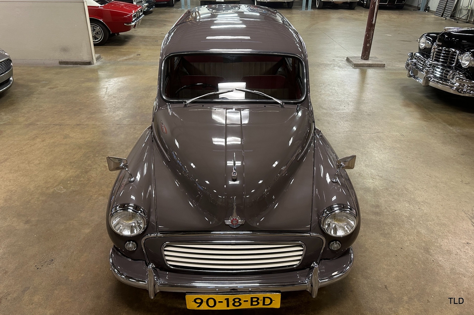 The Traveller's versatile Beige and Red 2-tone interior includes front bucket seats, an 80-mph speedometer, a rear bench seat, and roomy cargo compartment. Complete bright trim, full wheel covers, and period style Blackwall tires compete the exterior. An interesting additional feature is the British dealer sticker affixed to a rear window. Chic, cheeky, and exceptionally well preserved, this highly original 1965 Morris Minor 1000 Traveller Estate Wagon is a great example of the immensely successful Minor. Be sure to contact us today to see it for yourself, obtain full details, and get ready to add this wonderful British Woodie to your collection.