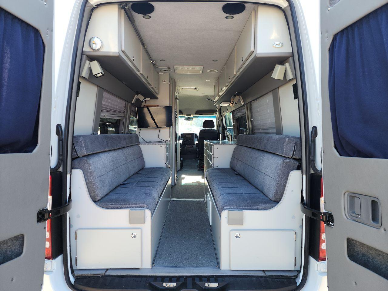 Beautiful and hard to find SportsMobile Class B RV on the Mercedes-Benz Sprinter 2500 Turbo Diesel 170" Extended chassis. Loaded with options and features including: Full enclosed bathroom with shower, Full rooftop solar array with built in batteries and Inverter system with Bluetooth. Rooftop ducted AC. Rear sofas that slide in to make a bed. Full kitchen with refrigerator/freezer, microwave, stove, and sink. Water system with hot water heater. Black and Gray water holding tanks. Snap in/out carpet throughout. Lots of latching storage drawers and cabinets including large hanging closet. GPS Navigation system with backup camera. Factory Mercedes-Benz Xenon HID Headlights with washers. Rear parking sensors. Rear entry step. Full matching painted body cladding and side accents. Alloy wheels with Michelin tires. TV. Window shades throughout. And so much more. Super clean and ready for your next trip immediately!