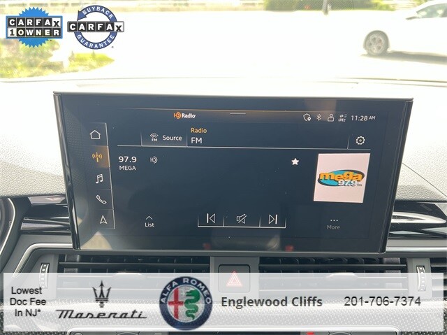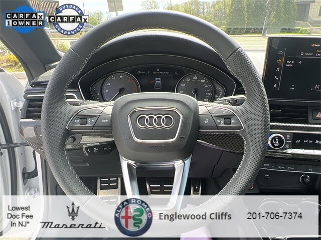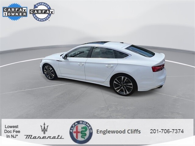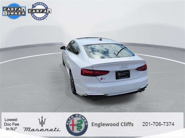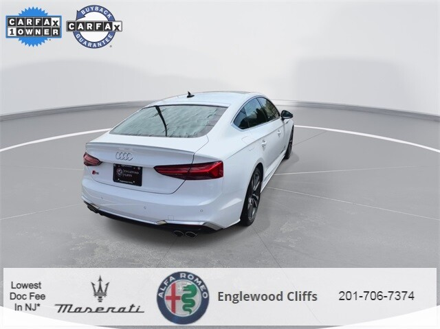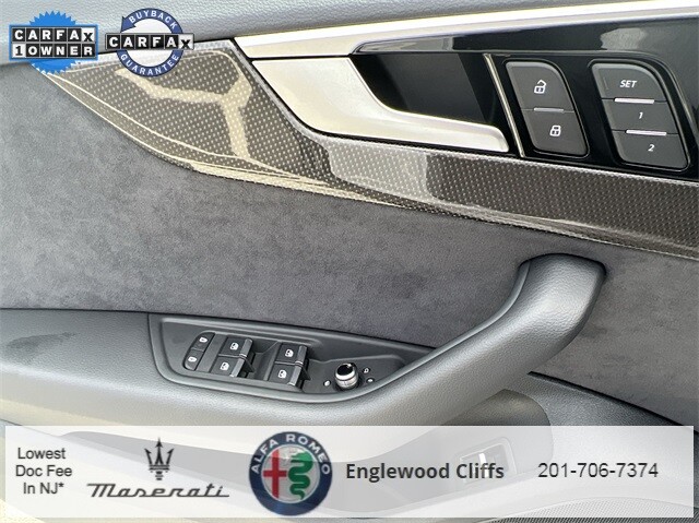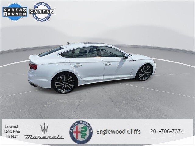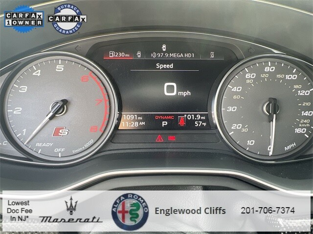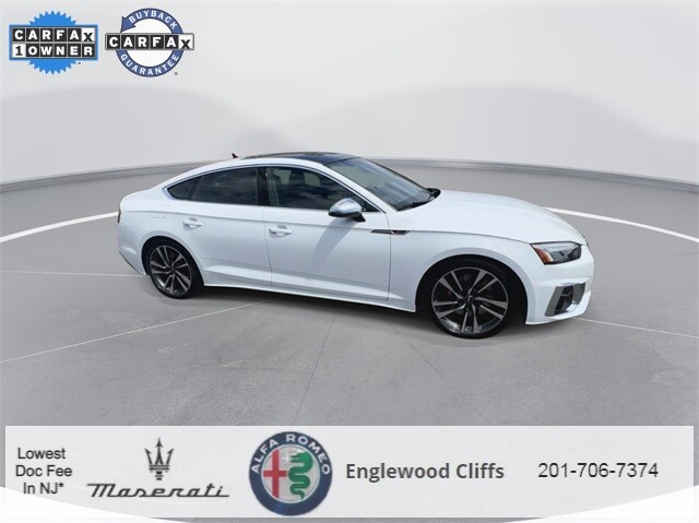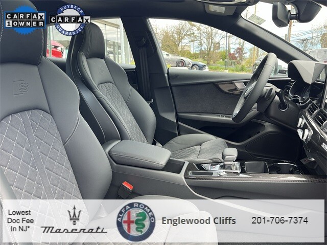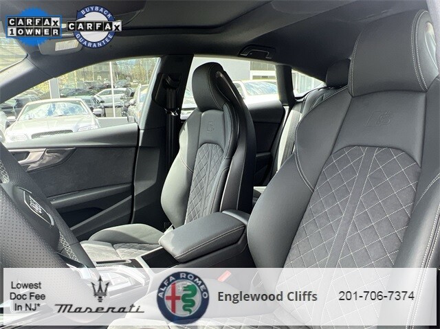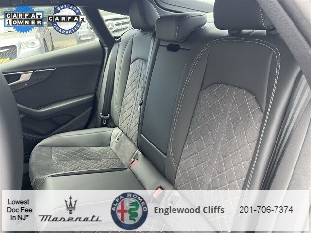 This S5 Sportback Premium is nicely equipped with Convenience Package (Alarm System w/Motion Sensor, Audi Advanced Key, Audi Side Assist w/Pre Sense Rear, Auto-Dimming Exterior Mirrors w/Memory, Driver Seat Memory, and SiriusXM w/360L), AM/FM radio, Auto High-beam Headlights, Auto-dimming Rear-View mirror, Automatic temperature control, Brake assist, Compass, Electronic Stability Control, Exterior Parking Camera Rear, Four wheel independent suspension, Front dual zone A/C, Front fog lights, Garage door transmitter: HomeLink, Heated door mirrors, Heated Front S Sport Seats, Heated front seats, Heated steering wheel, Illuminated entry, Leather/Dinamica Seating Surfaces, Outside temperature display, Overhead console, Panic alarm, Power door mirrors, Power driver seat, Power Liftgate, Power moonroof, Power passenger seat, Power steering, Power windows, Radio data system, Radio: Audi Sound System, Rain sensing wipers, Rear air conditioning, Rear window defroster, Remote keyless entry, Speed control, Speed-sensing steering, Steering wheel mounted audio controls, Traction control, Turn signal indicator mirrors, 10 Speakers, 4-Wheel Disc Brakes, ABS brakes, Air Conditioning, Alloy wheels, Bumpers: body-color, Delay-off headlights, Driver door bin, Driver vanity mirror, Dual front impact airbags, Dual front side impact airbags, Emergency communication system: Audi connect CARE, Front anti-roll bar, Front Bucket Seats, Front Center Armrest, Front reading lights, Knee airbag, Leather Shift Knob, Leather steering wheel, Low tire pressure warning, Occupant sensing airbag, Overhead airbag, Passenger door bin, Passenger vanity mirror, Rear anti-roll bar, Rear reading lights, Rear seat center armrest, Speed-Sensitive Wipers, Split folding rear seat, Spoiler, Tachometer, Telescoping steering wheel, Tilt steering wheel, Trip computer, Variably intermittent wipers, and Wheels: 19 5-Double-Arm Design Bi-Color Finish.