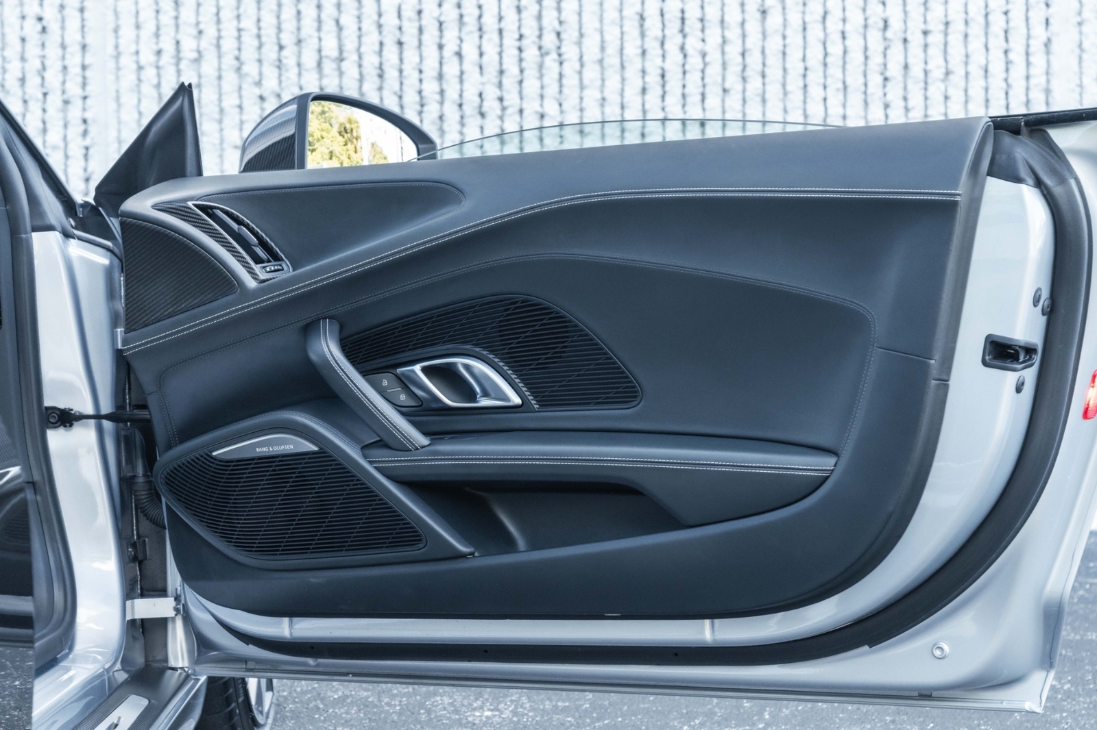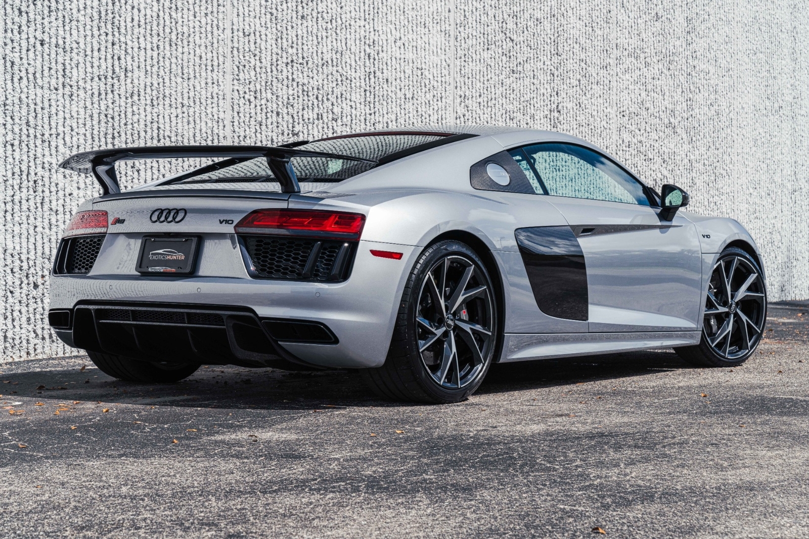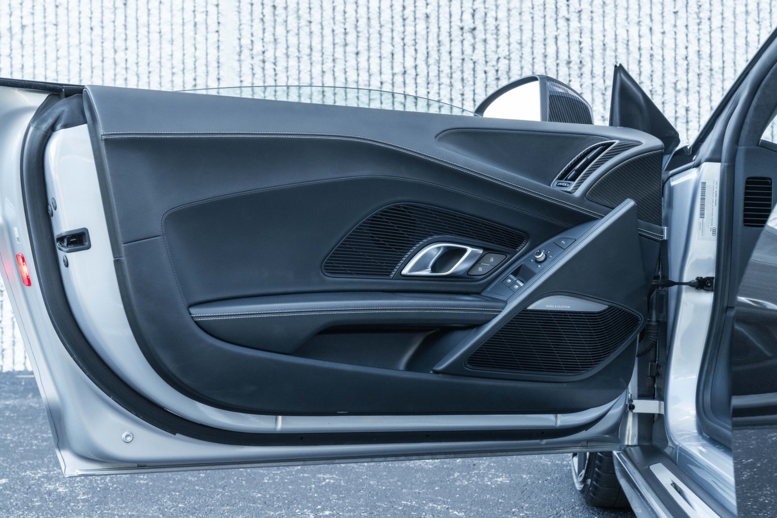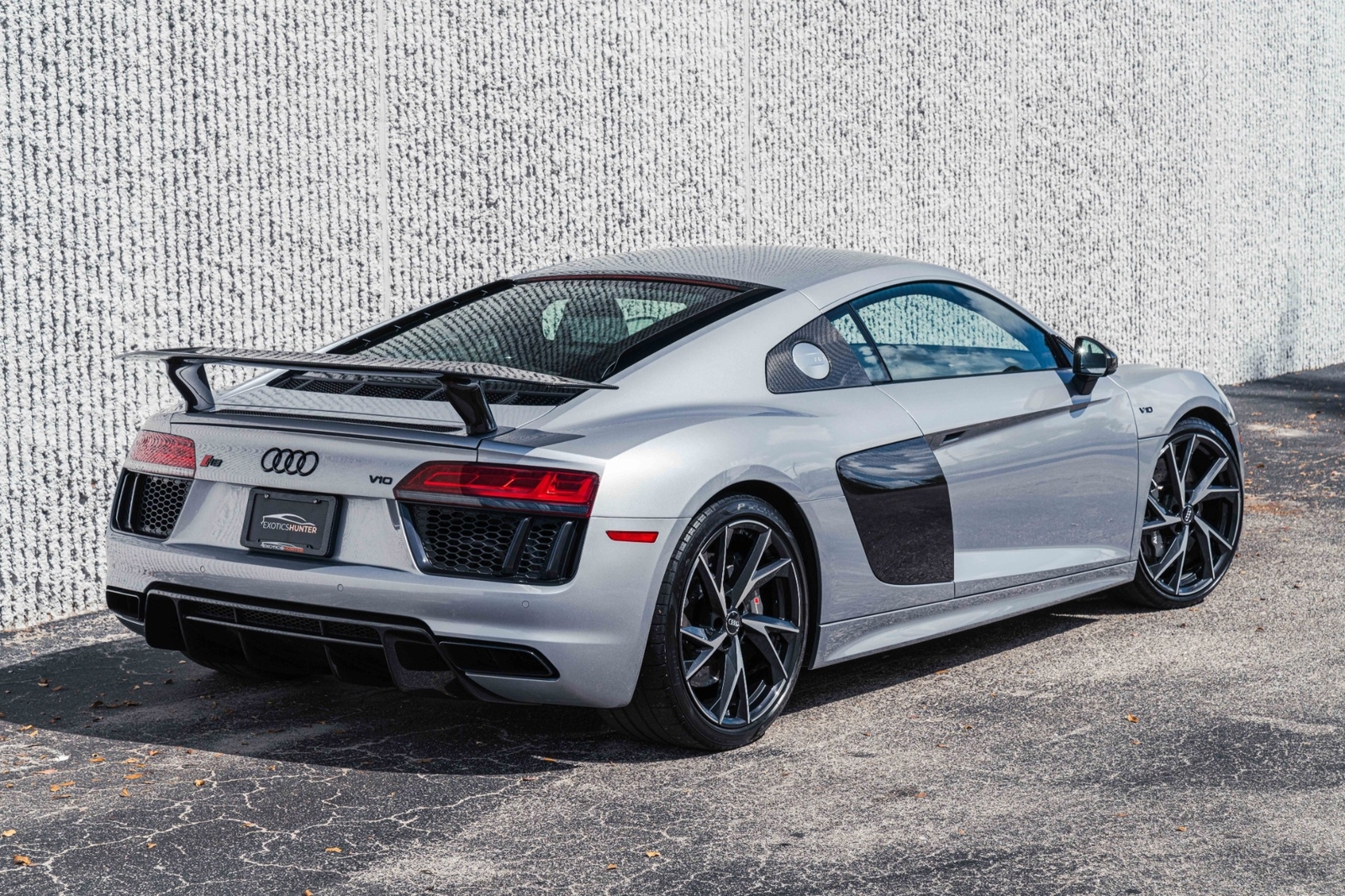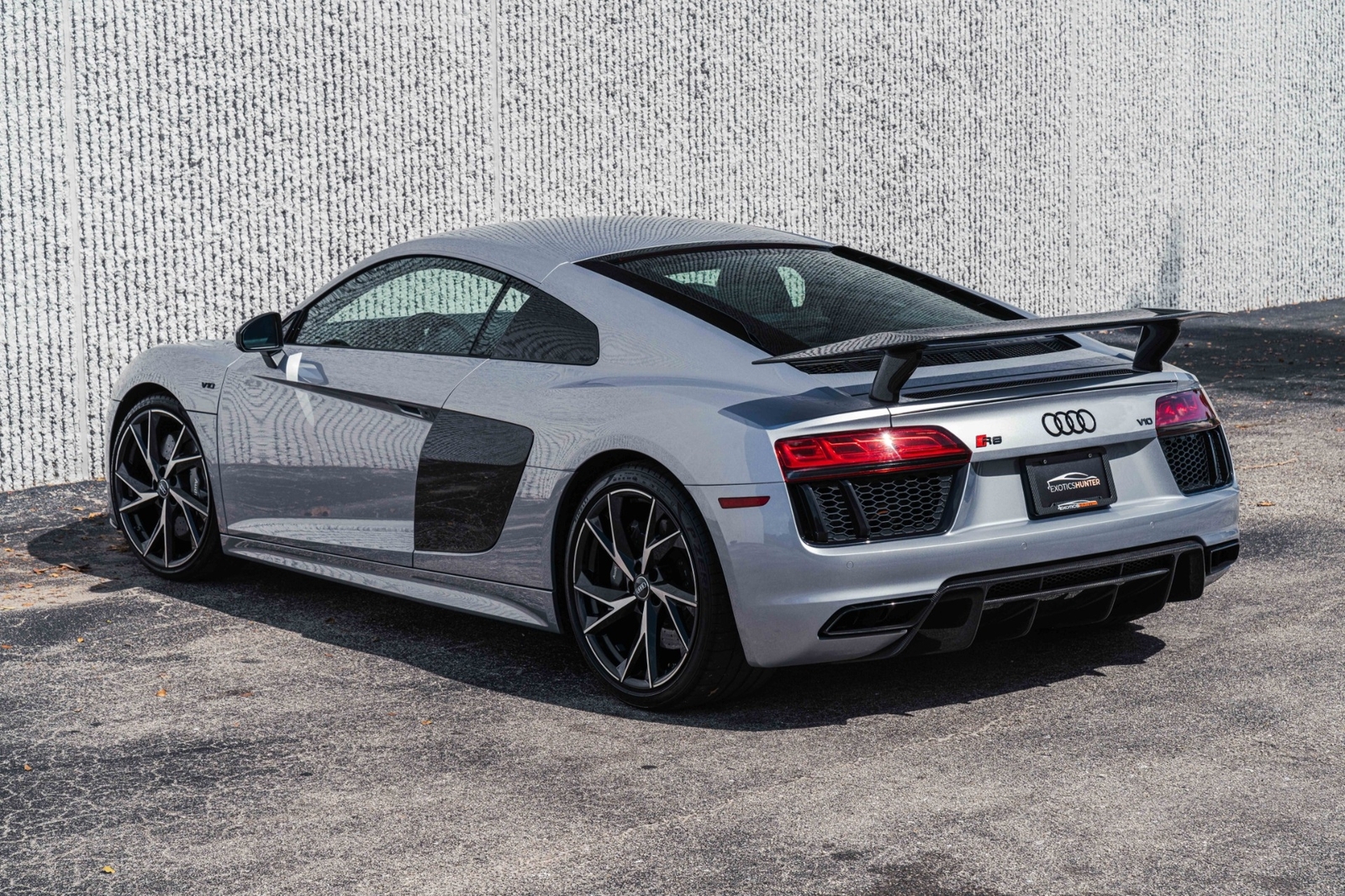 Exotics Hunter proudly presents this 2017 R8 V10 Plus with tasteful modifications. This Florett Silver R8 is fitted with a carbon fiber Vorsteiner rear wing, a carbon fiber Vorsteiner front splitter, and a Kline exhaust elevating every drive. Along with the modifications this spec features the diamond stitch leather pack, featuring diamond stitched seats, diamond stitched Alcantara headliner, extended leather throughout the interior, and more.