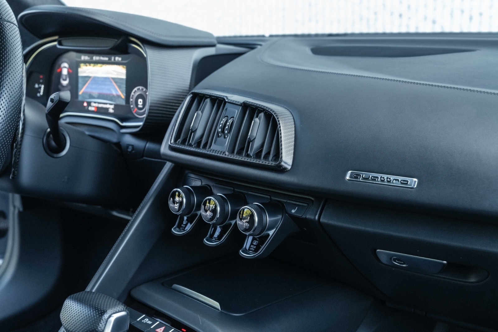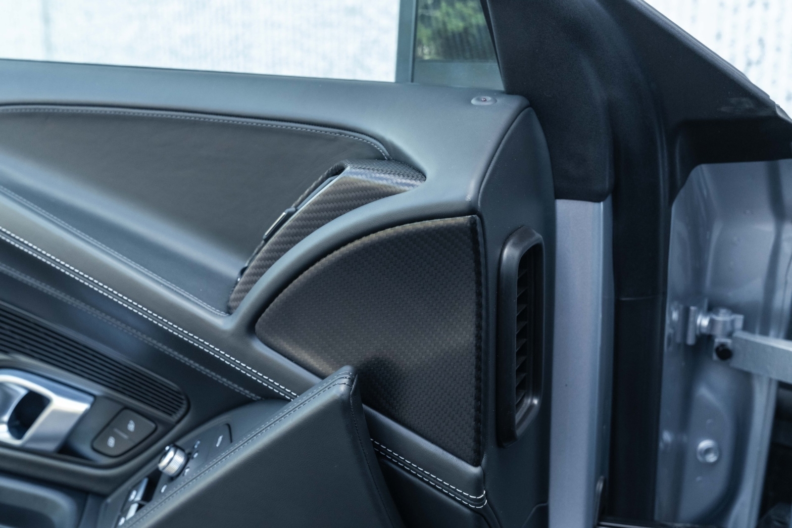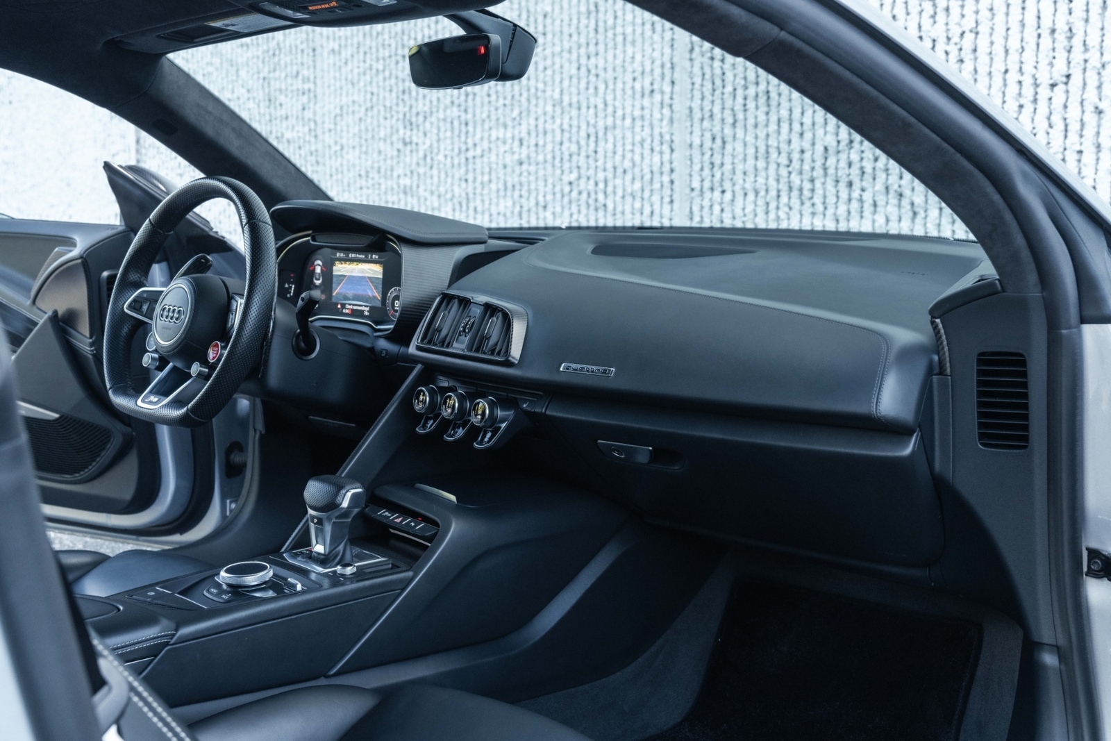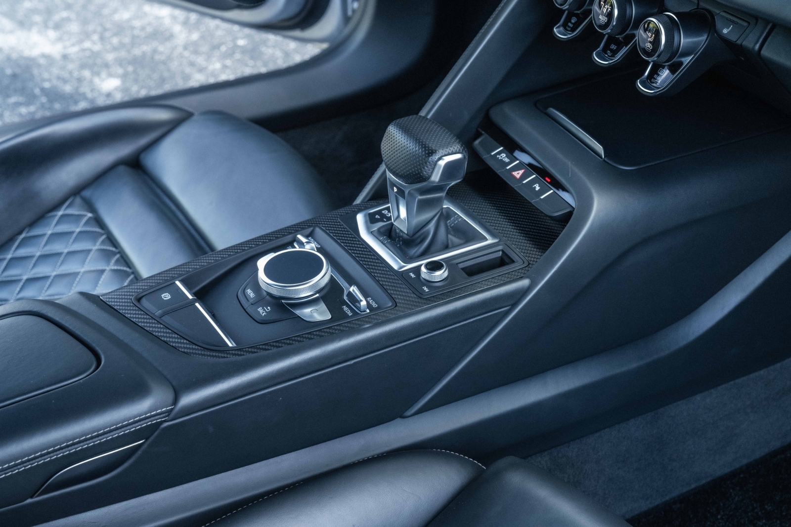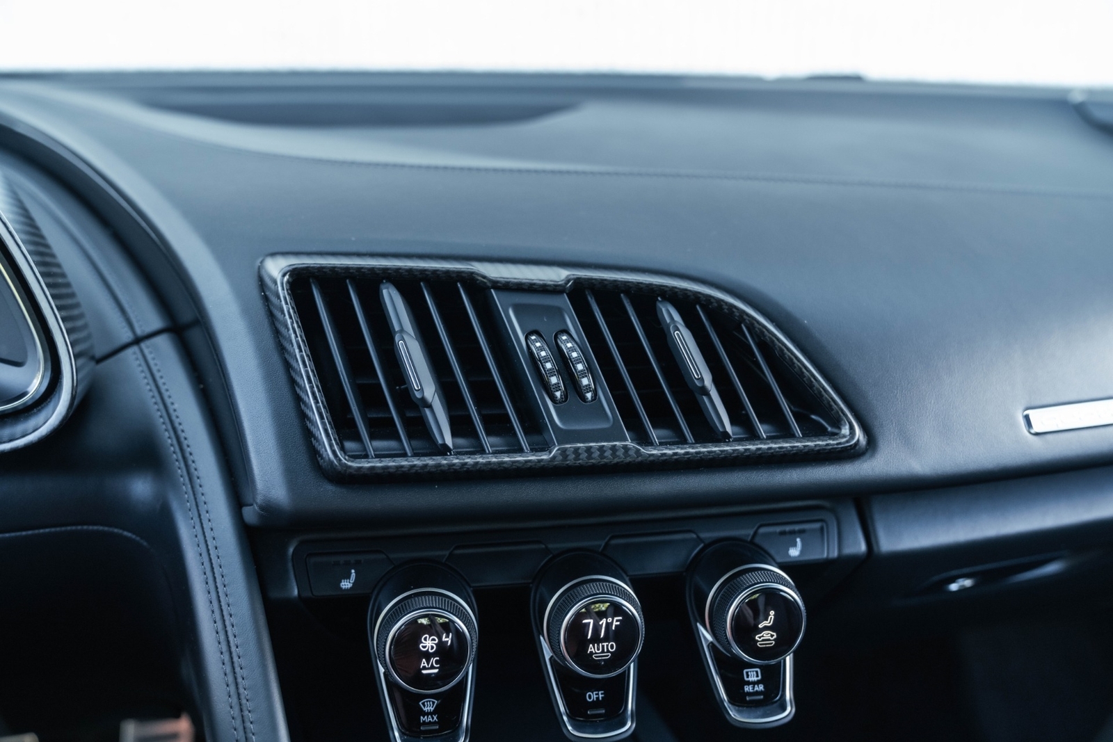 Exotics Hunter proudly presents this 2017 R8 V10 Plus with tasteful modifications. This Florett Silver R8 is fitted with a carbon fiber Vorsteiner rear wing, a carbon fiber Vorsteiner front splitter, and a Kline exhaust elevating every drive. Along with the modifications this spec features the diamond stitch leather pack, featuring diamond stitched seats, diamond stitched Alcantara headliner, extended leather throughout the interior, and more.