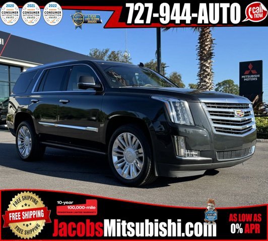 Platinum Package 4WD!, Escalade Platinum Edition, 4D Sport Utility, 6.2L V8, 10-Speed Automatic with Overdrive, 4WD, Manhattan Noir Metallic, Maple Sugar With Jet Black Accents Leather, 12-Way Power Front Passenger Seat Adjuster, 16 Speakers, 2-Presets Memory For Driver Seat Adjuster, 3.23 Axle Ratio, 3rd row seats: split-bench, 4-Wheel Disc Brakes, A/V remote, ABS brakes, Adaptive suspension, Adjustable pedals, Advanced Adaptive Cruise Control, Air Conditioning, Alloy wheels, AM/FM radio: SiriusXM, Apple CarPlay/Android Auto, Auto High-beam Headlights, Auto tilt-away steering wheel, Auto-dimming door mirrors, Auto-leveling suspension, Automatic Seat Belt Tightening, Automatic temperature control, Bodyside moldings, Bose Centerpoint 16 Speaker Surround Sound System, Brake assist, Bumpers: body-color, CD player, Compass, Cooled Console w/Covered Storage, Delay-off headlights, Driver Assist Package, Driver door bin, Driver vanity mirror, Dual DVD Screens, Dual front impact airbags, Dual front side impact airbags, DVD-Audio, Electronic Powered Parking Brake, Electronic Stability Control, Emergency communication system: OnStar Protection, Exterior Parking Camera Rear, Forward & Reverse Automatic Braking, Forward Automatic Braking, Forward Collision Alert, Front anti-roll bar, Front Bucket Seats, Front Center Armrest w/Storage, Front dual zone A/C, Front reading lights, Front wheel independent suspension, Fully automatic headlights, Garage door transmitter, Genuine wood dashboard insert, HD Radio, Headphones, Heads-Up Display, Heated & Cooled Driver & Front Passenger Seats, Heated door mirrors, Heated front seats, Heated rear seats, Heated steering wheel, Illuminated Door Handles, Illuminated entry, Inclination Sensor, IntelliBeam Automatic High Beam On/Off, Lane Change Alert w/Side Blind Zone Alert, Lane Keep Assist w/Lane Departure Warning, Leather Shift Knob, Leather steering wheel, Leather Wrapped IP/Console/Door, Low tire pressure warning, Magnetic Ride Control Suspension, Memory seat, Microfiber Sueded Headliner, Navigation System, Occupant sensing airbag, Outside temperature display, Overhead airbag, Overhead console, Panic alarm, Passenger door bin, Passenger vanity mirror, Pedal memory, Platinum Package, Platinum Sill Plates, Power Configurable Second Row Bucket Seats, Power door mirrors, Power driver seat, Power Liftgate, Power moonroof, Power passenger seat, Power steering, Power Tilt-Sliding Sunroof w/Express-Open/Close, Power windows, Power-Retractable Assist Steps, Preferred Equipment Group 1SD, Premium Floor Mats, Radio data system, Radio: AM/FM Cadillac User Experience w/Nav, Rain sensing wipers, Rear air conditioning, Rear anti-roll bar, Rear audio controls, Rear Camera Mirror, Rear Camera Mirror Washer, Rear Cross Traffic Alert, Rear reading lights, Rear Seat Entertainment System, Rear window defroster, Rear window wiper, Reconfigurable 4-Color Head-Up Display, Remote keyless entry, Roof rack: rails only, Safety Alert Seat, Security system, Semi-Aniline Leather Seating Surfaces, SiriusXM NavTraffic, SiriusXM Radio, Speed control, Split folding rear seat, Spoiler, Steering wheel memory, Steering wheel mounted audio controls, Sumi Black Tamo Ash Unique Exotic Wood, Tachometer, Telescoping steering wheel, Theft-Deterrent Alarm System, Theft-Deterrent Package, Tilt steering wheel, Traction control, Trip computer, Turn signal indicator mirrors, Unique Grille Design, VAC Power 17 Disc Brakes, Variably intermittent wipers, Vehicle Interior Movement Sensor, Ventilated front seats, Wheels: 22 x 9 Dual 9-Spoke Alloy w/Chrome Inserts. CARFAX One-Owner. Priced below KBB Fair Purchase Price!Manhattan Noir Metallic 2019 Cadillac Escalade Platinum Edition 4WD 6.2L V8Awards:* JD Power Initial Quality StudyHere at Jacobs Mitsubishi our goal is to make you a customer for life. We want you to have the most enjoyable car buying experience possible . All prices displayed do not include additional accessories or fees and costs of closing including any government, additional packages applied to vehicle, including but not limited to Jacobs Care, Reconditioning fees,federal, dealer fees, taxes, registration, dealer document, cost of accessories, emissions testing, or any other fees. All prices, specifications and availability are subject to change at any time, without notice. Not all applicants will be approved, offers may change at any time and may not reflect accuracy online, see dealer for most updated offers. Not all offers can be combined. Applicant may qualify for partial discount displayed by financing with another approved lender through and provided by Jacobs Mitsubishi. Contact dealer for most current information, availability, or details.