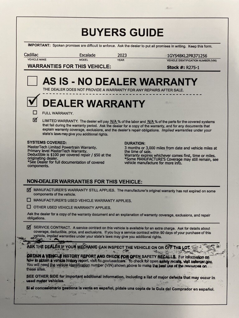 CONTEMPORARY CHRYSLER DODGE JEEP RAM is proud to present you with another True Market Priced Pre-Owned Vehicle. This 2023 Cadillac Escalade Premium Luxury is loaded with the following Factory Options: 4WD, Black Leather, 3rd row seats: split-bench, Exterior Parking Camera Rear, Hitch Guidance w/Hitch View, Integrated Trailer Brake Controller, Lane Change Alert w/Side Blind Zone Alert, Power Liftgate, Power Panoramic Tilt-Sliding Sunroof, Super Cruise, Trailer Side Blind Zone Alert, Trailer Tire Pressure Monitoring System, Trailering Assist Guidelines, Wheel Locks, and Wheels: 22 14-Spoke Alloy w/Polished Finish Heavy-Duty Trailering Package (Trailer Tire Pressure Monitoring System, Trailering Assist Guidelines, 2-Speed Active Transfer Case, Extra Capacity Cooling System, and Wired Auxiliary Trailer Camera (LPO)), Performance Package (Hitch Guidance w/Hitch View, Integrated Trailer Brake Controller, Trailer Side Blind Zone Alert, Electronic Limited-Slip Differential, Magnetic Ride Control Suspension, and Smart Trailer Integration Indicator), Preferred Equipment Group 1SB (Lane Change Alert w/Side Blind Zone Alert, Power Panoramic Tilt-Sliding Sunroof, AKG Studio 19-Speaker Audio System, Automatic Seat Belt Tightening, Door Lock & Latch Shields, Enhanced Automatic Emergency Braking, Enhanced Automatic Parking Assist, Glass Breakage Sensor, Heated & Ventilated Driver & Front Passenger Seats, Mechanical Limited-Slip Differential, Rear Camera Mirror, Rear Camera Mirror Washer, Rear Cross Traffic Alert, Reconfigurable Full-Color Head-Up Display, Reverse Automatic Braking, Running Board Assist Steps, Theft-Deterrent Alarm System, Vehicle Inclination Sensor, and Vehicle Interior Movement Sensor), 4WD, Black Leather, 3rd row seats: split-bench, Exterior Parking Camera Rear, Power Liftgate, Super Cruise, Wheel Locks, Wheels: 22 14-Spoke Alloy w/Polished Finish, 16.9 Diagonal OLED Infotainment Screen, 19 Speakers, 2-Presets Memory For Driver Seat Adjuster, 3 Years of OnStar & Connected Services Plan, 3.23 Axle Ratio, 4-Way Power Driver Lumbar Seat Adjuster, 4-Way Power Front Passenger Lumbar Seat Adjuster, 4-Wheel Disc Brakes, 8-Way Power Driver Seat Adjuster, 8-Way Power Front Passenger Seat Adjuster, ABS brakes, Air Conditioning, Alloy wheels, AM/FM radio: SiriusXM with 360L, Apple CarPlay/Android Auto, Audio memory, Auto High-beam Headlights, Auto tilt-away steering wheel, Auto-dimming door mirrors, Automatic temperature control, Brake assist, Bumpers: body-color, Compass, Delay-off headlights, Driver door bin, Driver vanity mirror, Dual front impact airbags, Dual front side impact airbags, Electronic Stability Control, Emergency communication system: OnStar and Cadillac connected services capable, Four wheel independent suspension, Front anti-roll bar, Front Bucket Seats, Front Center Armrest w/Storage, Front dual zone A/C, Front License Plate Bracket, Front reading lights, Fully automatic headlights, Garage door transmitter, HD Radio, Heads-Up Display, Heated door mirrors, Heated Driver & Front Passenger Seats, Heated front seats, Heated rear seats, Heated steering wheel, Illuminated entry, Leather Seating Surfaces w/Mini-Chevron Perf Inserts, Low tire pressure warning, Memory seat, Navigation System, Not Equipped w/2nd Row Express-Up Window Control, Not Equipped w/Wheel Locks (LPO), Occupant sensing airbag, Outside temperature display, Overhead airbag, Overhead console, Panic alarm, Passenger door bin, Passenger vanity mirror, Power door mirrors, Power driver seat, Power passenger seat, Power steering, Power windows, Premium Smooth Ride Suspension, Radio data system, Radio: AM/FM w/Navigation, Rain sensing wipers, Rear air conditioning, Rear anti-roll bar, Rear reading lights, Rear window defroster, Rear window wiper, Remote keyless entry, Roof rack: rails only, Security system, SiriusXM w/360L, Split folding rear seat, Spoiler, Steering wheel memory, Steering wheel mounted audio controls, Tachometer, Teen Driver, Telescoping st