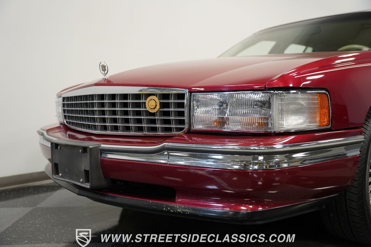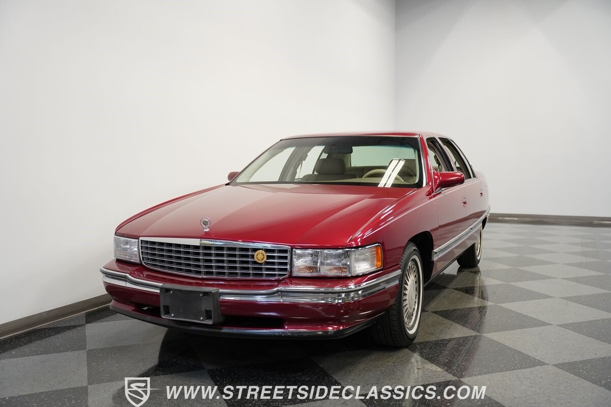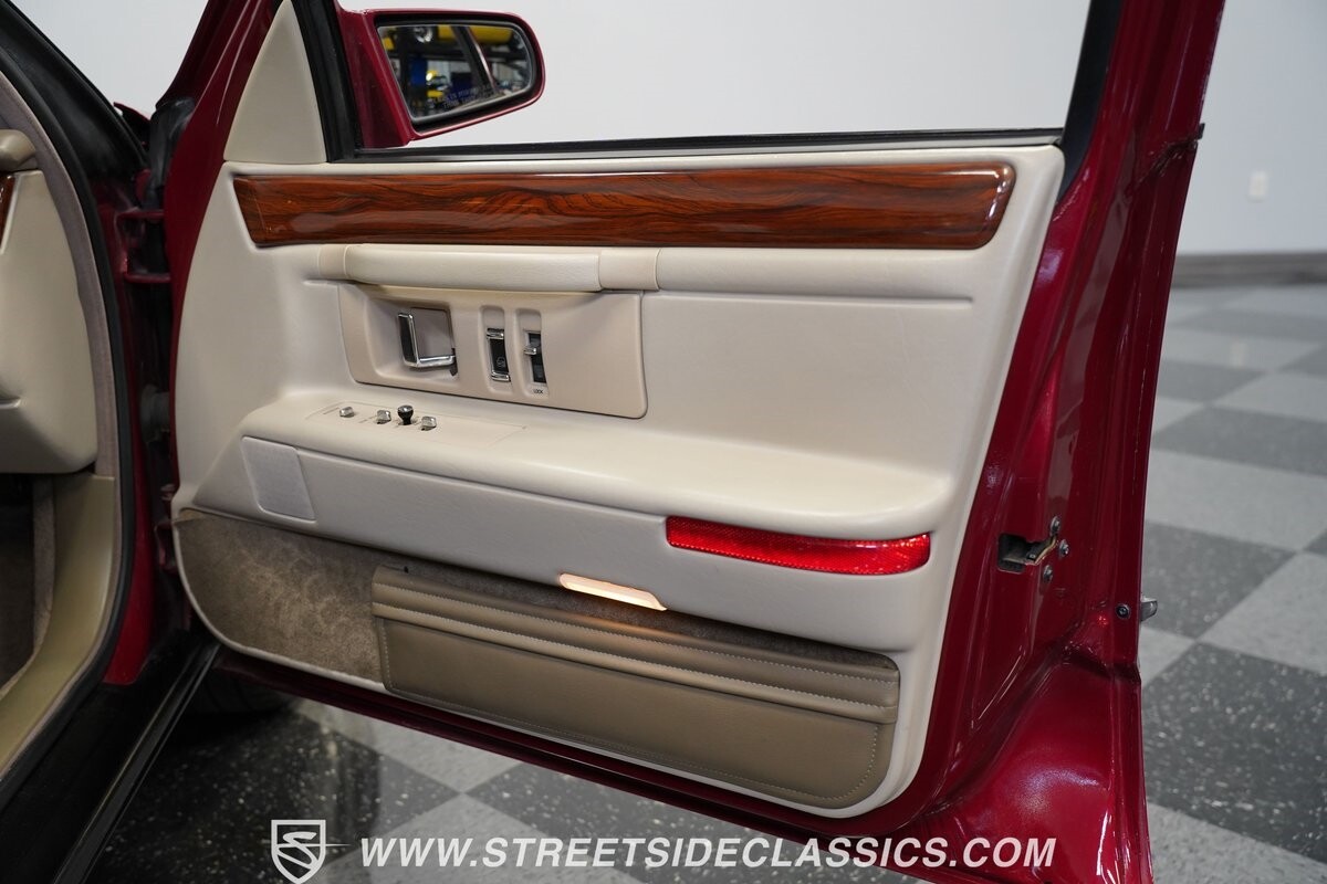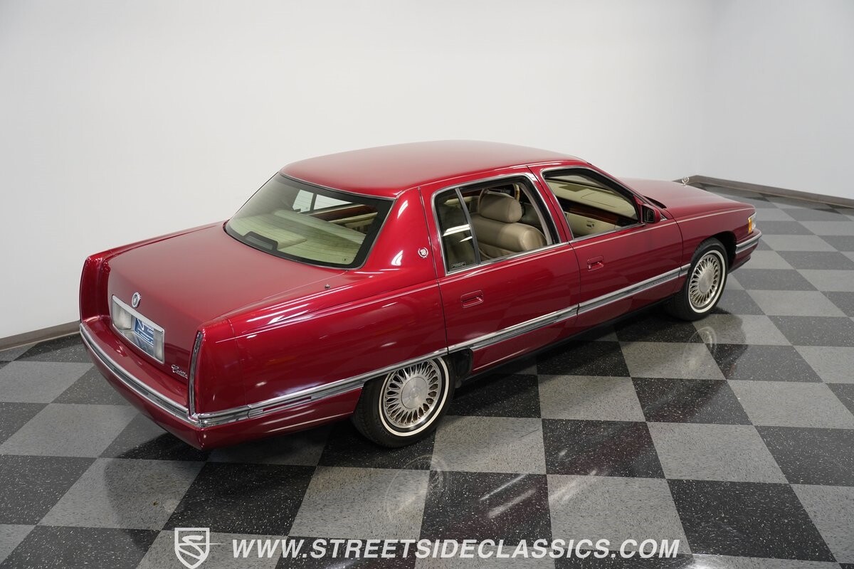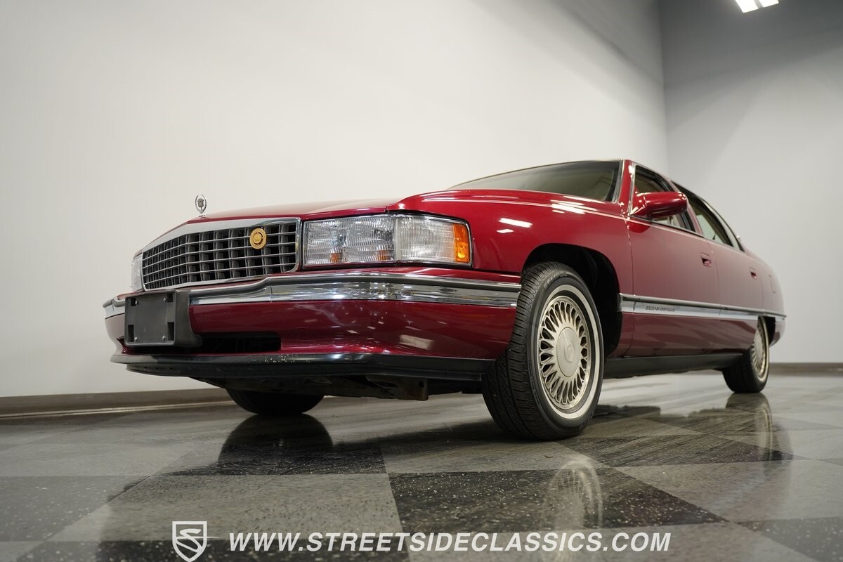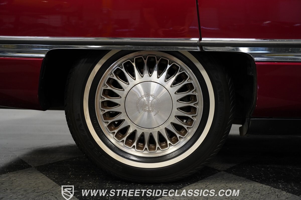 With its Carmine Red paint still gleaming, this 1995 Cadillac Sedan DeVille is a timeless classic that refuses to fade into the background. The subtle tailfins, a nod to Cadillac's iconic design heritage, add a touch of nostalgia to this modern luxury sedan. Rolling on 15" wheels wrapped in Toyo 215/75R15 whitewall radials up front and 215/70R15 in the rear, this DeVille maintains its smooth, composed stance.