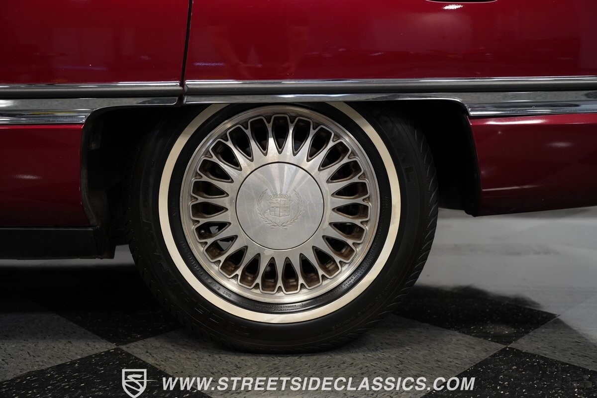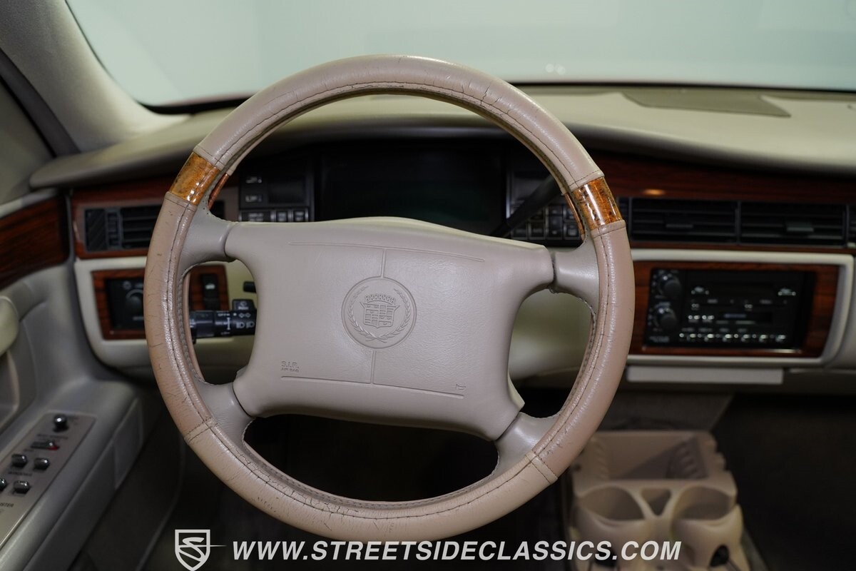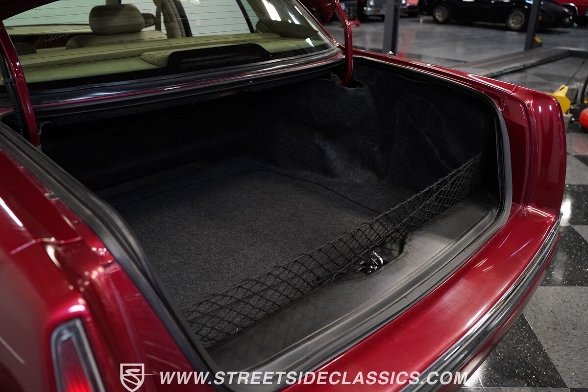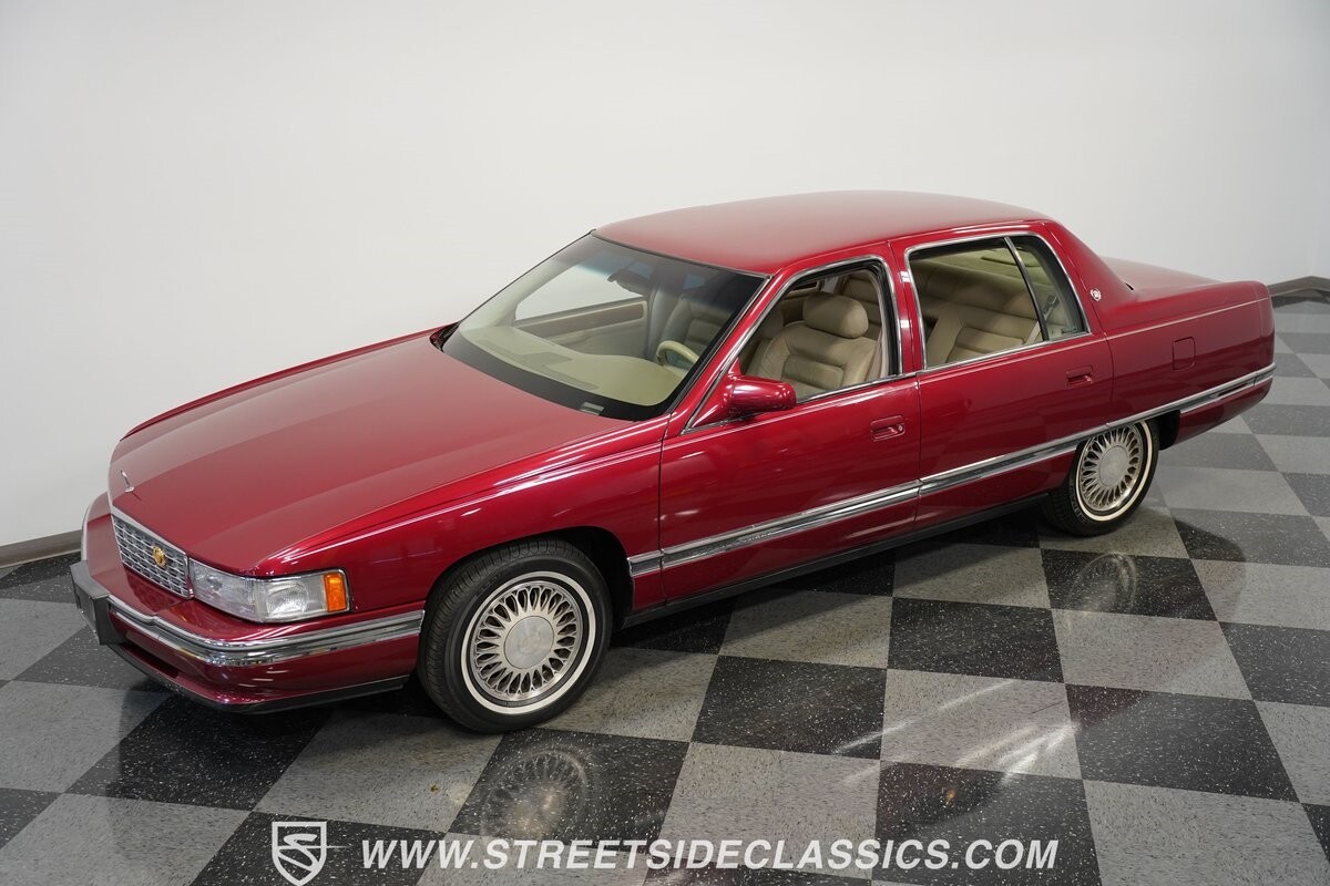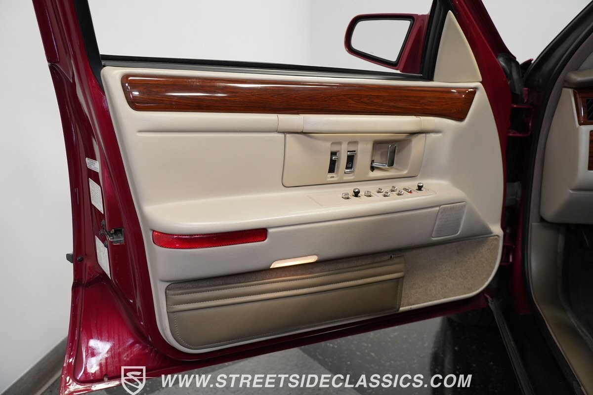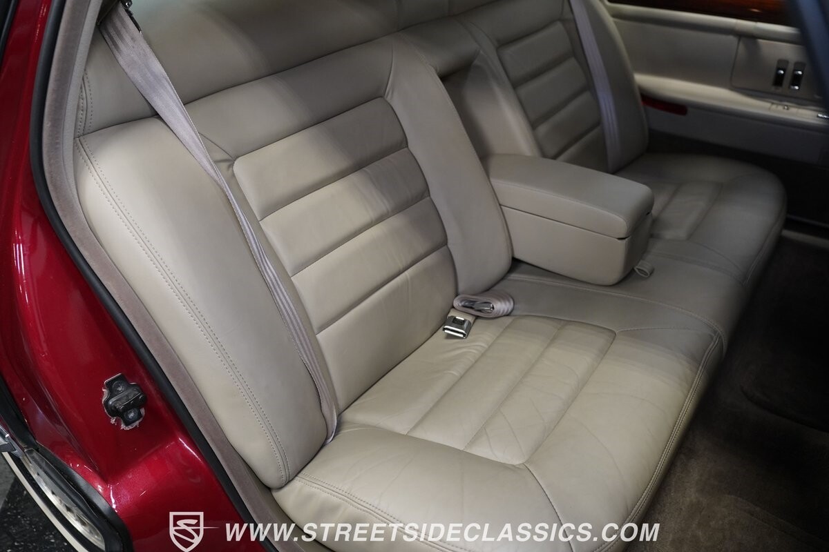 With its Carmine Red paint still gleaming, this 1995 Cadillac Sedan DeVille is a timeless classic that refuses to fade into the background. The subtle tailfins, a nod to Cadillac's iconic design heritage, add a touch of nostalgia to this modern luxury sedan. Rolling on 15" wheels wrapped in Toyo 215/75R15 whitewall radials up front and 215/70R15 in the rear, this DeVille maintains its smooth, composed stance.