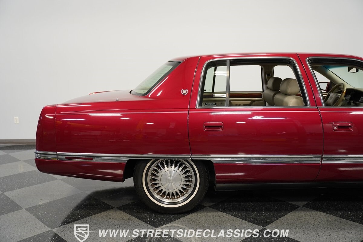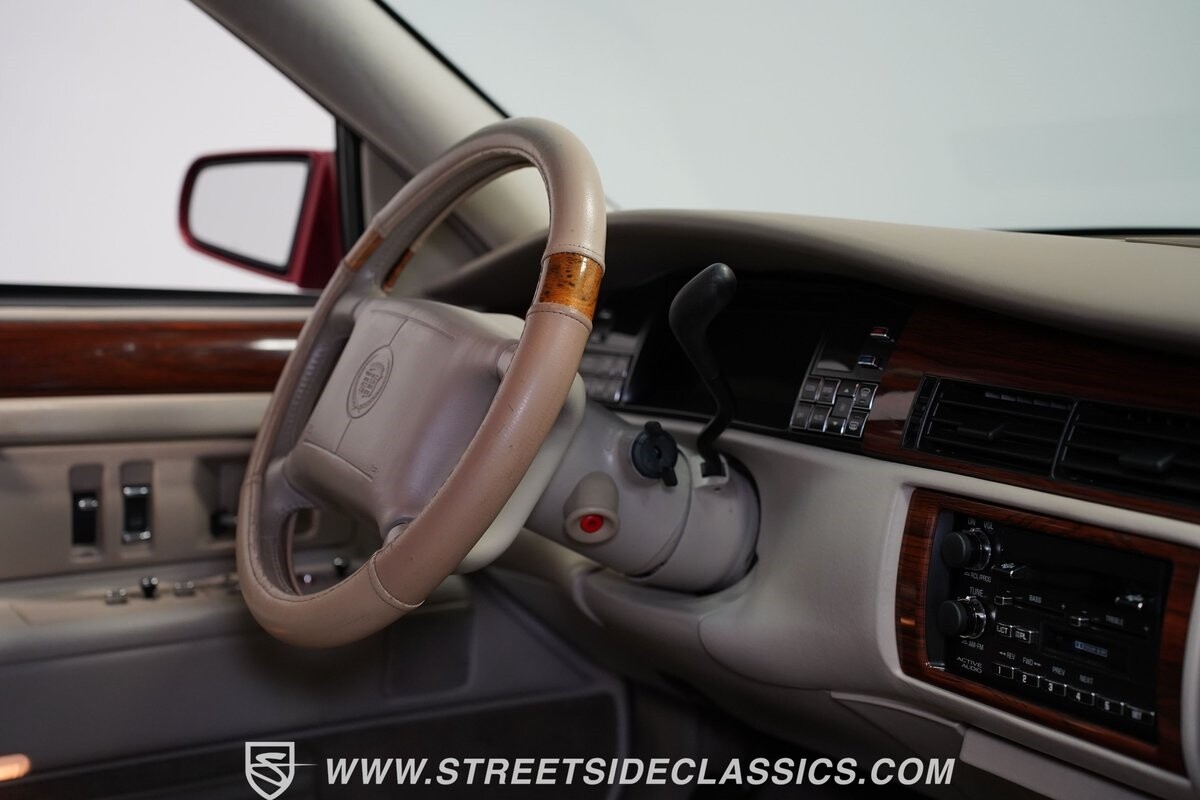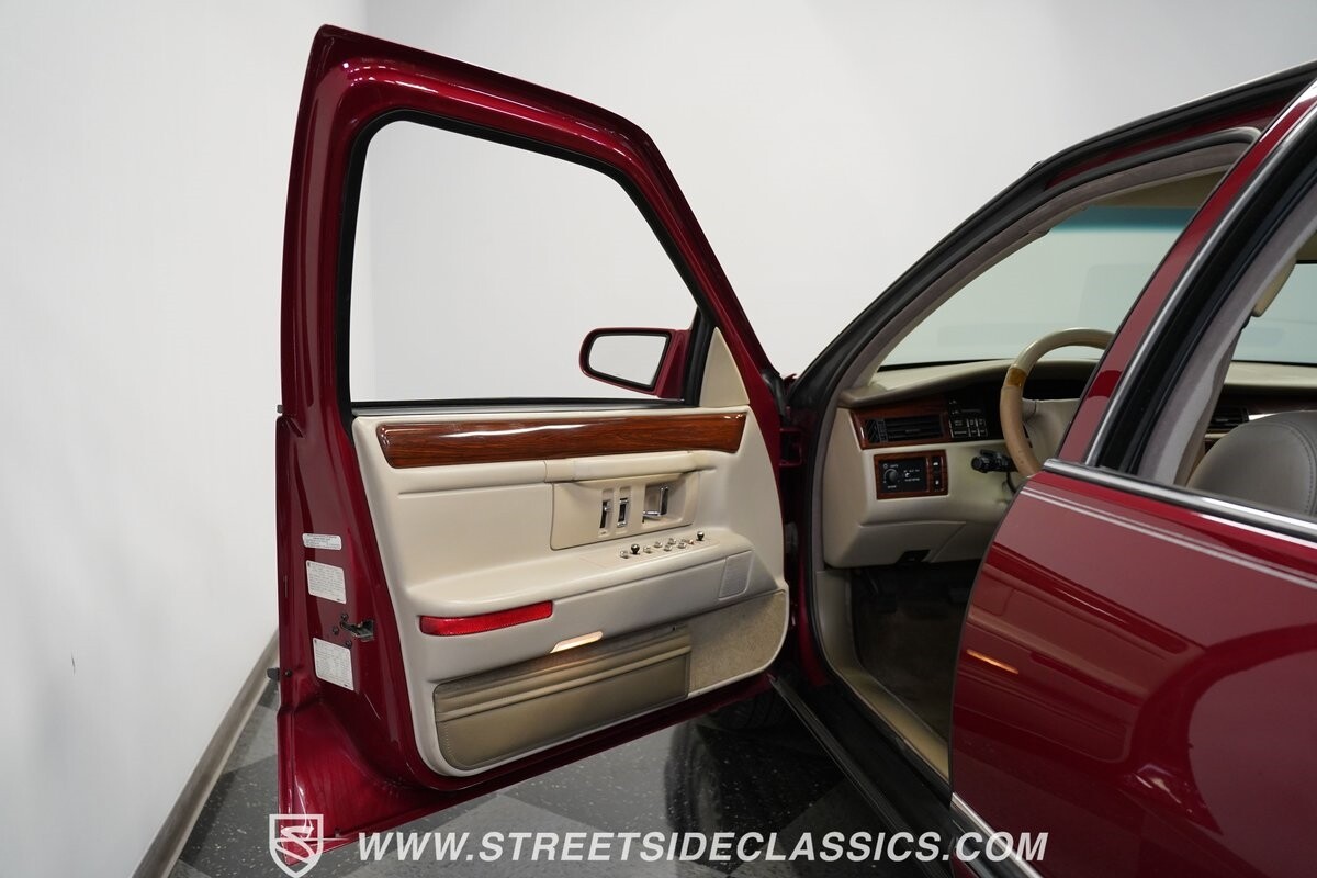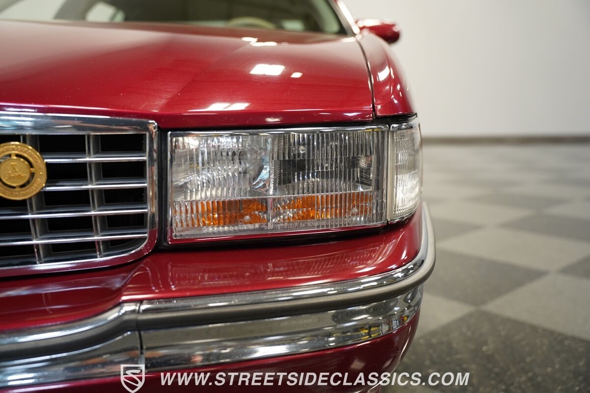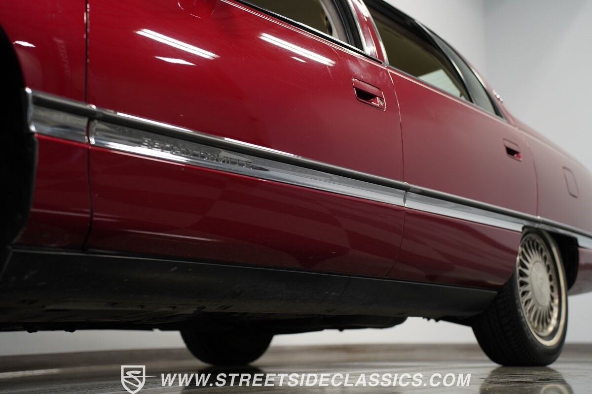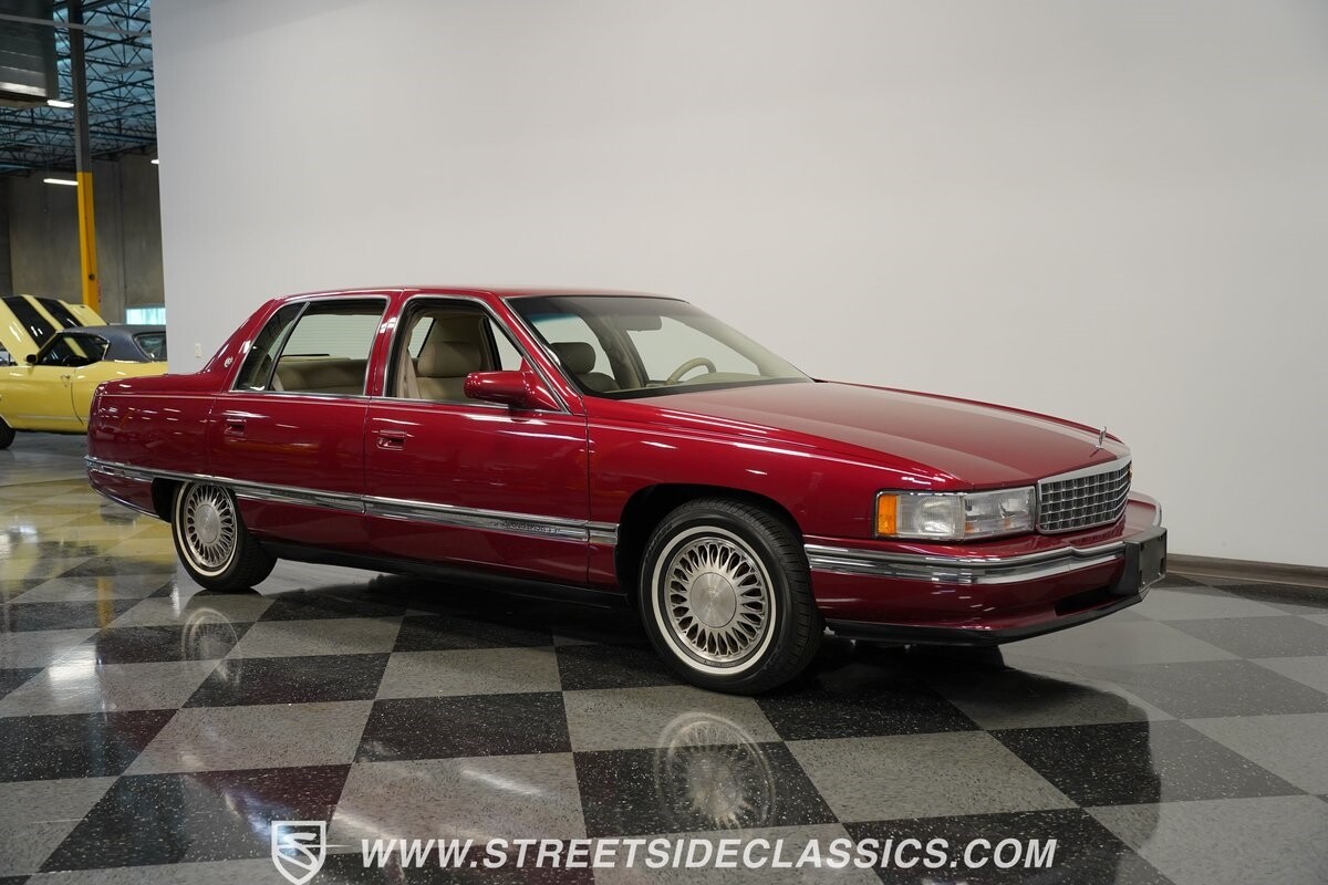 With its Carmine Red paint still gleaming, this 1995 Cadillac Sedan DeVille is a timeless classic that refuses to fade into the background. The subtle tailfins, a nod to Cadillac's iconic design heritage, add a touch of nostalgia to this modern luxury sedan. Rolling on 15" wheels wrapped in Toyo 215/75R15 whitewall radials up front and 215/70R15 in the rear, this DeVille maintains its smooth, composed stance.