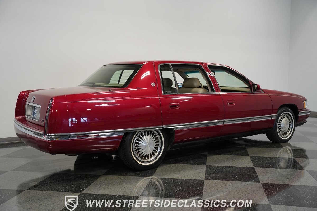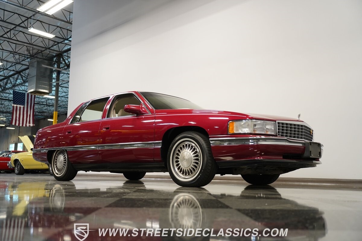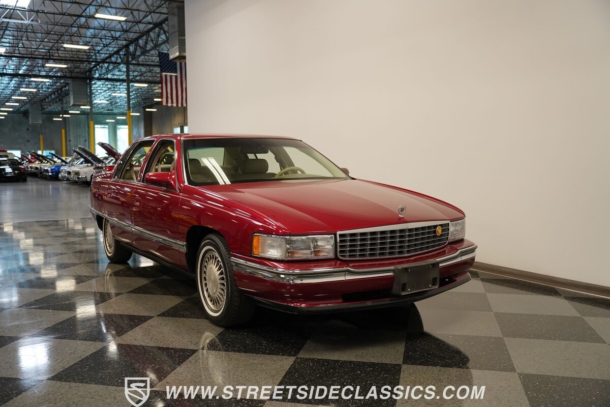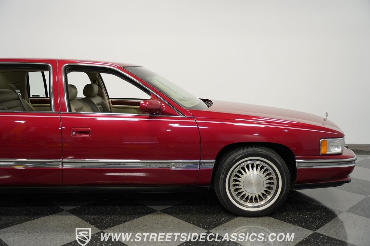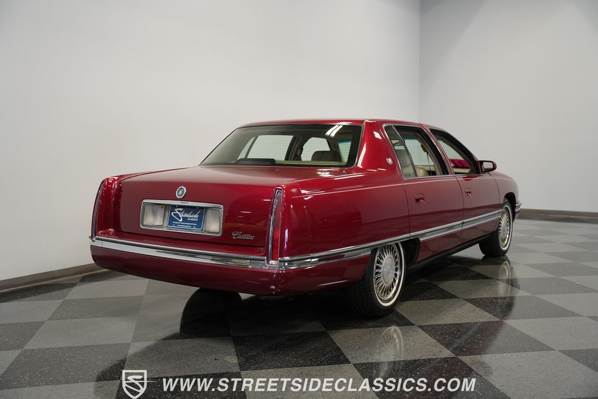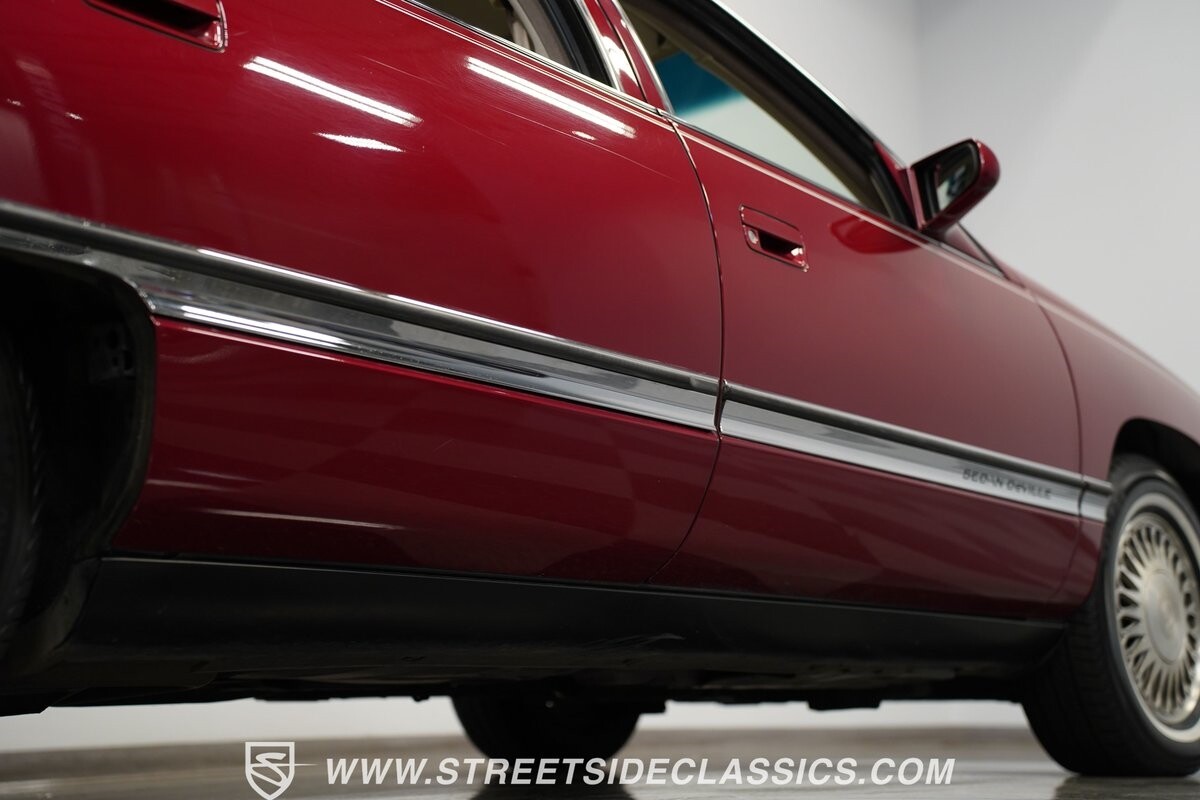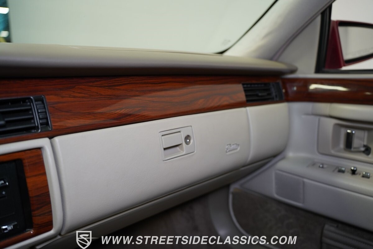 With its Carmine Red paint still gleaming, this 1995 Cadillac Sedan DeVille is a timeless classic that refuses to fade into the background. The subtle tailfins, a nod to Cadillac's iconic design heritage, add a touch of nostalgia to this modern luxury sedan. Rolling on 15" wheels wrapped in Toyo 215/75R15 whitewall radials up front and 215/70R15 in the rear, this DeVille maintains its smooth, composed stance.