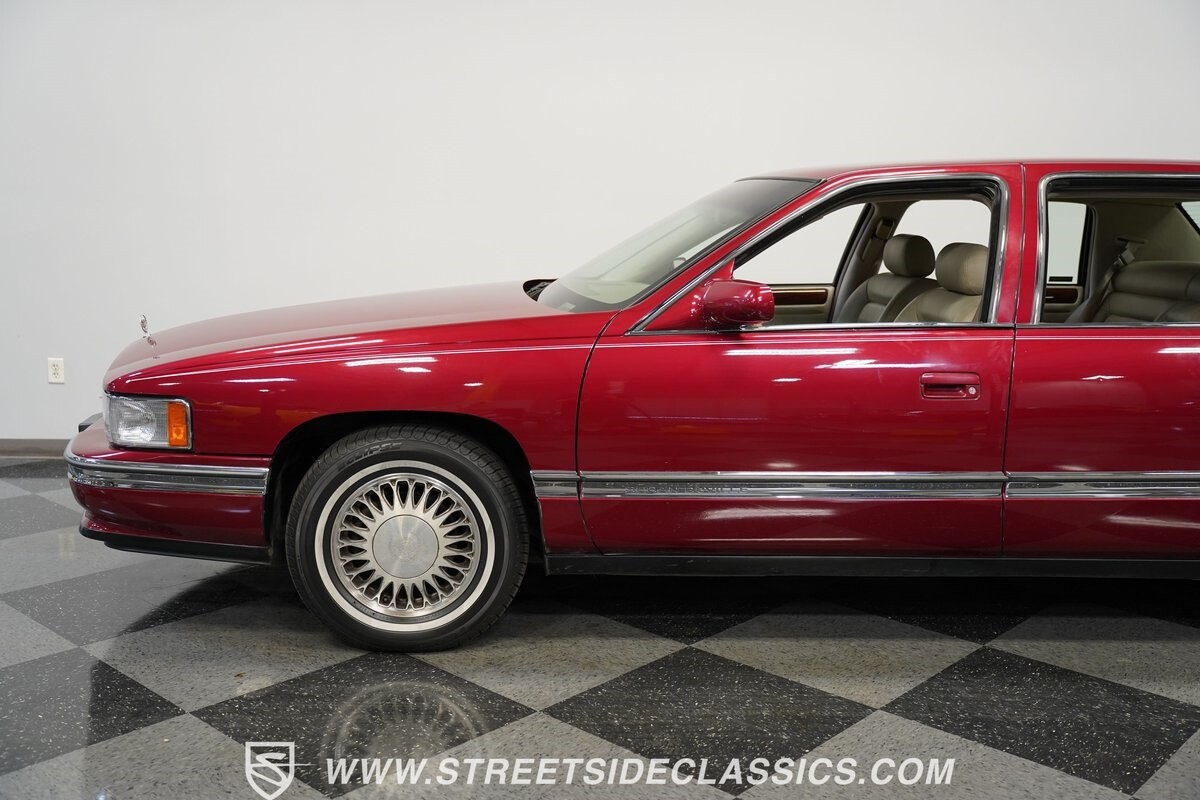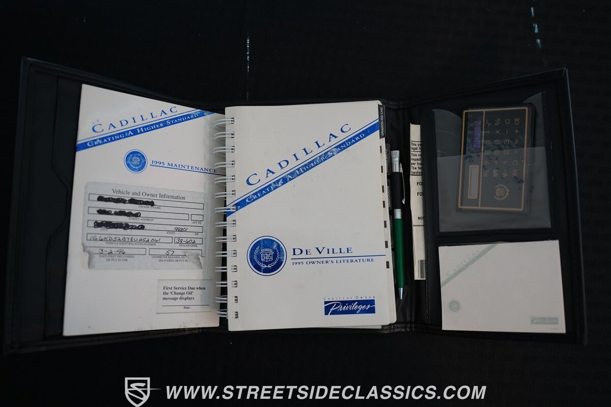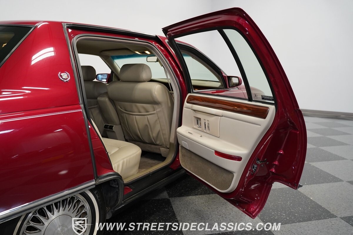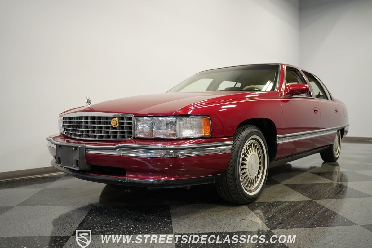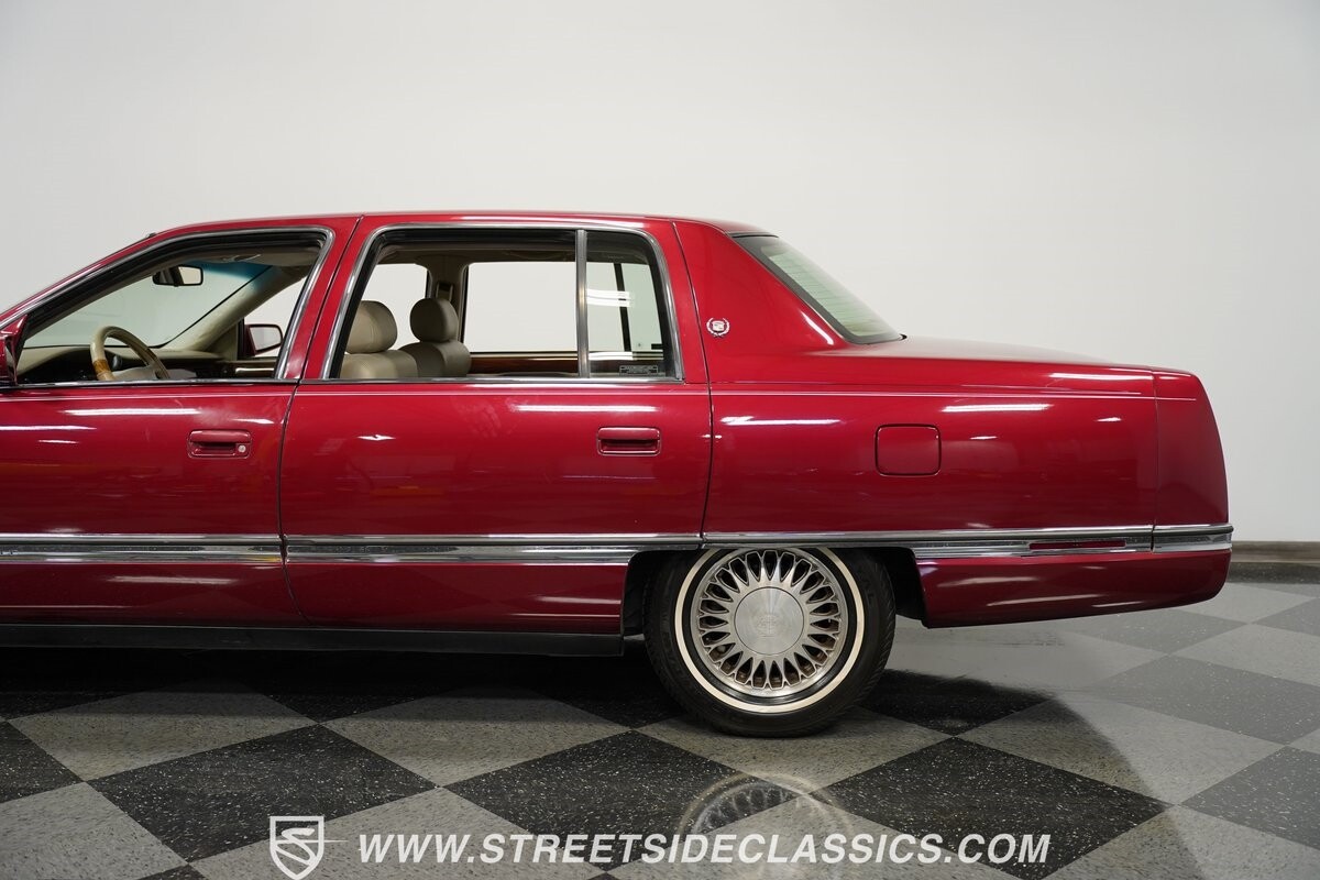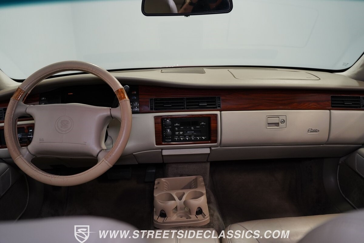 With its Carmine Red paint still gleaming, this 1995 Cadillac Sedan DeVille is a timeless classic that refuses to fade into the background. The subtle tailfins, a nod to Cadillac's iconic design heritage, add a touch of nostalgia to this modern luxury sedan. Rolling on 15" wheels wrapped in Toyo 215/75R15 whitewall radials up front and 215/70R15 in the rear, this DeVille maintains its smooth, composed stance.