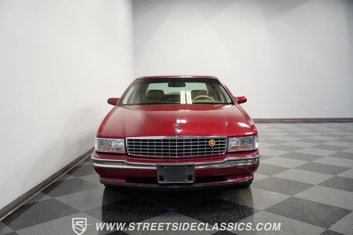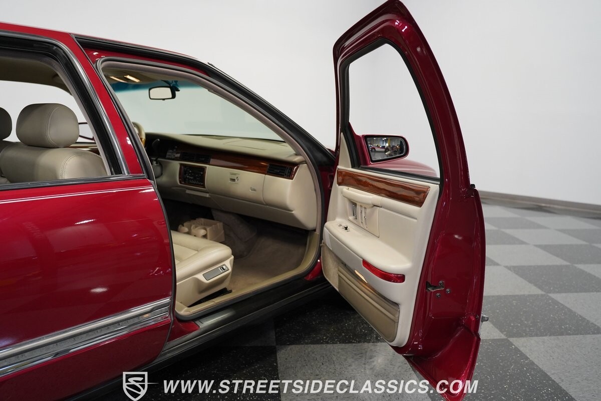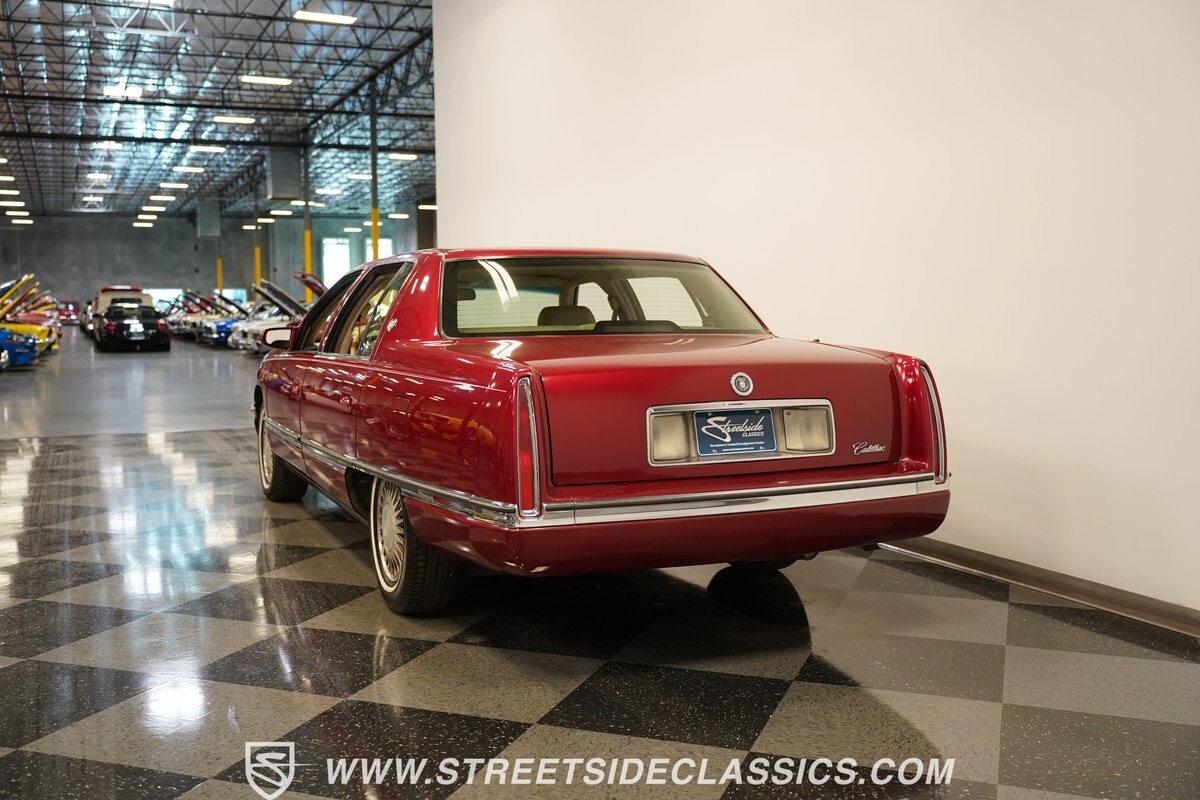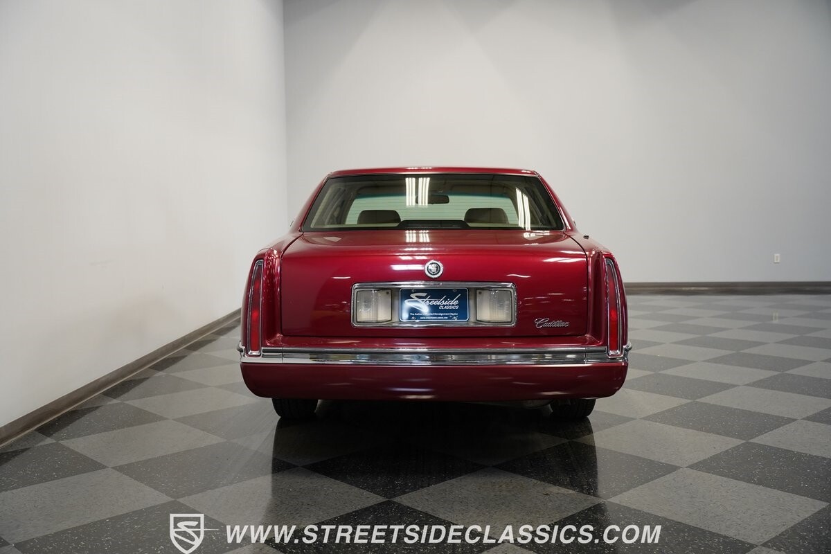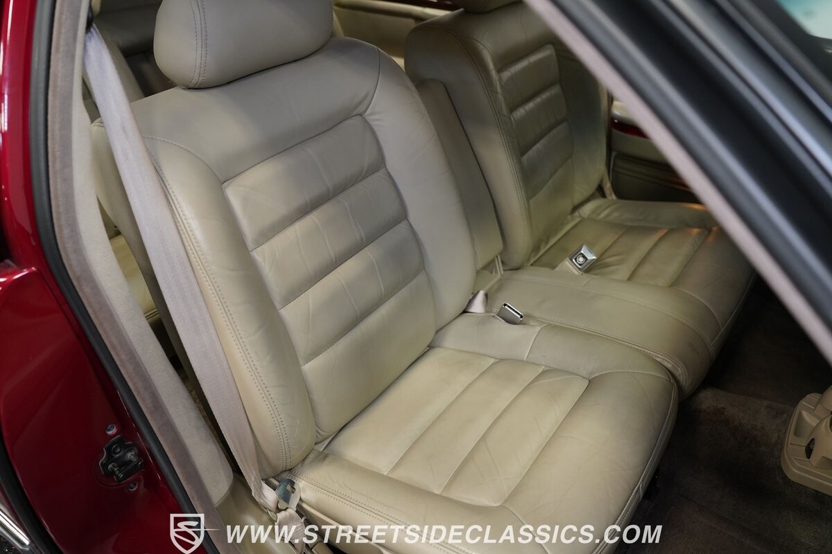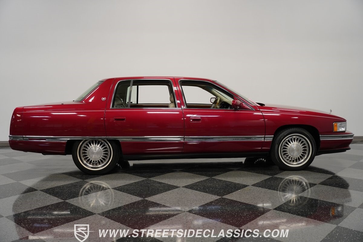 With its Carmine Red paint still gleaming, this 1995 Cadillac Sedan DeVille is a timeless classic that refuses to fade into the background. The subtle tailfins, a nod to Cadillac's iconic design heritage, add a touch of nostalgia to this modern luxury sedan. Rolling on 15" wheels wrapped in Toyo 215/75R15 whitewall radials up front and 215/70R15 in the rear, this DeVille maintains its smooth, composed stance.