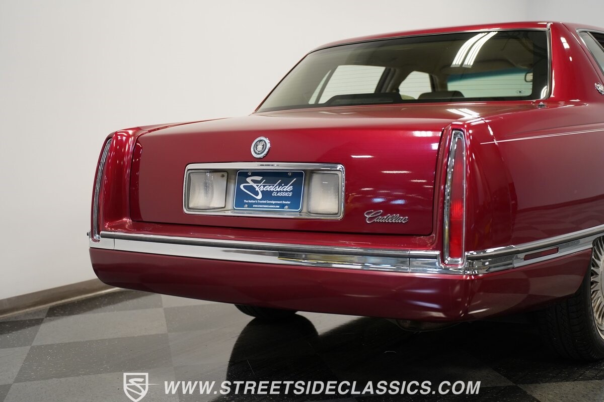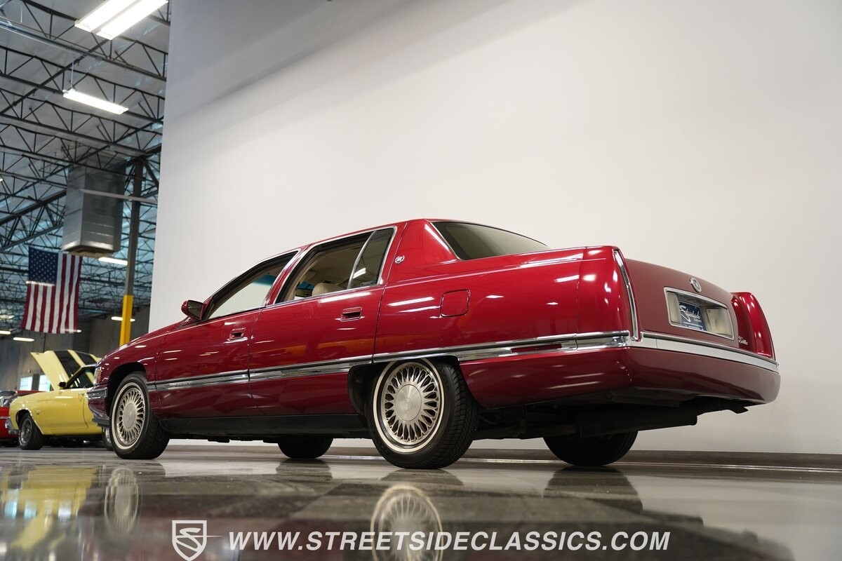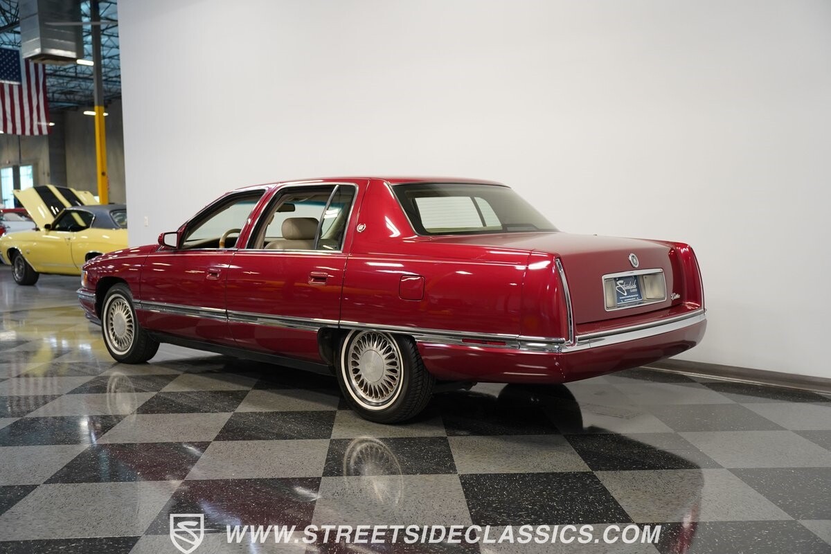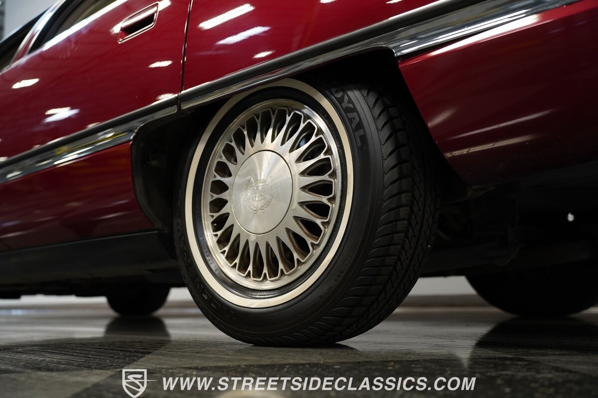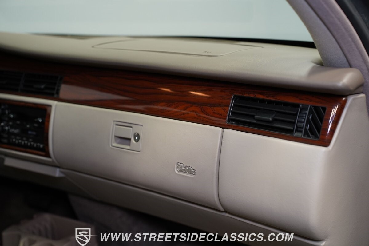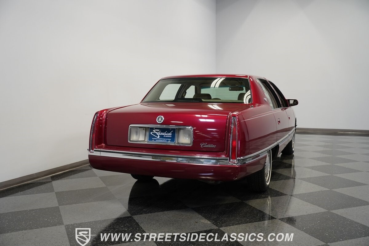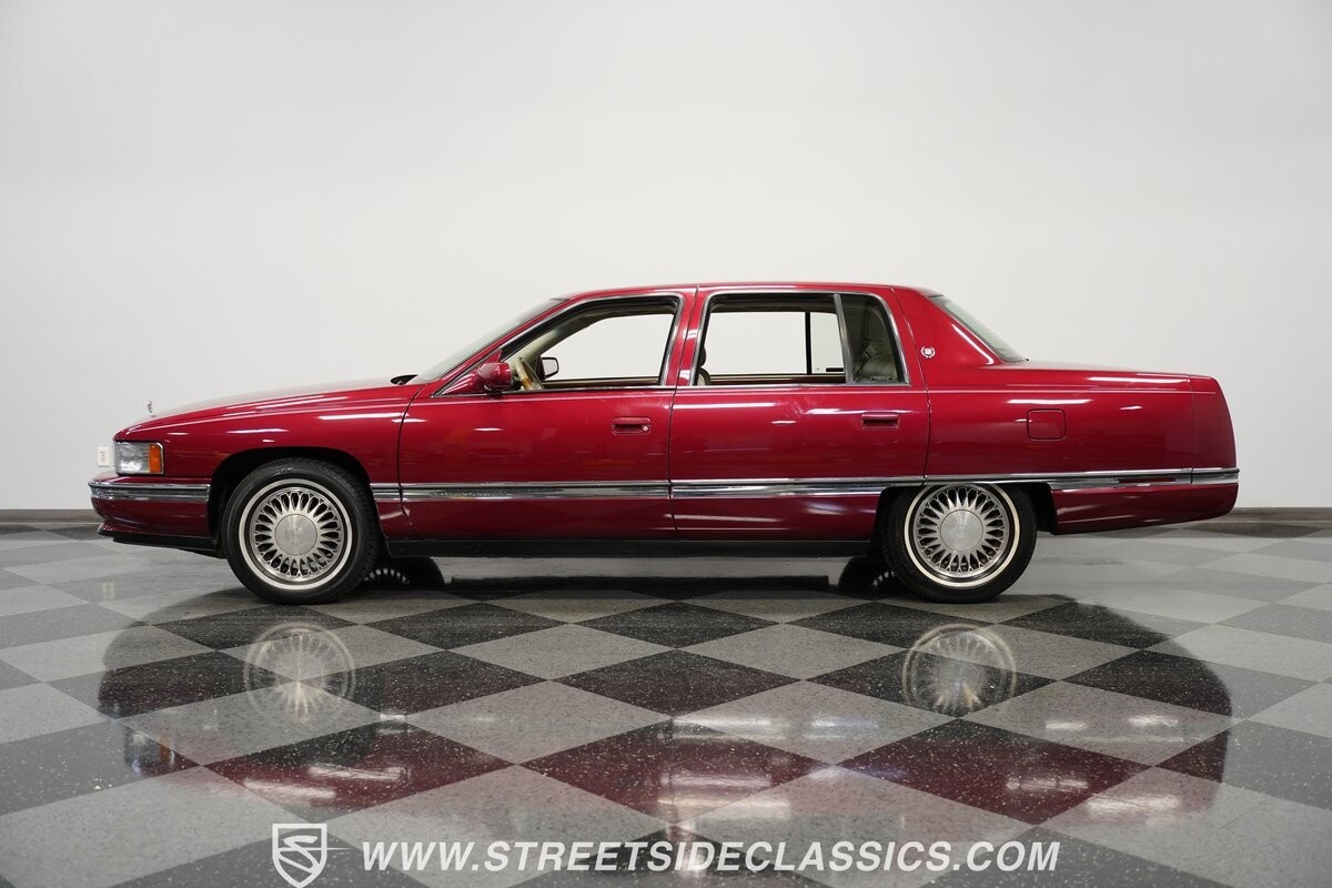 With its Carmine Red paint still gleaming, this 1995 Cadillac Sedan DeVille is a timeless classic that refuses to fade into the background. The subtle tailfins, a nod to Cadillac's iconic design heritage, add a touch of nostalgia to this modern luxury sedan. Rolling on 15" wheels wrapped in Toyo 215/75R15 whitewall radials up front and 215/70R15 in the rear, this DeVille maintains its smooth, composed stance.