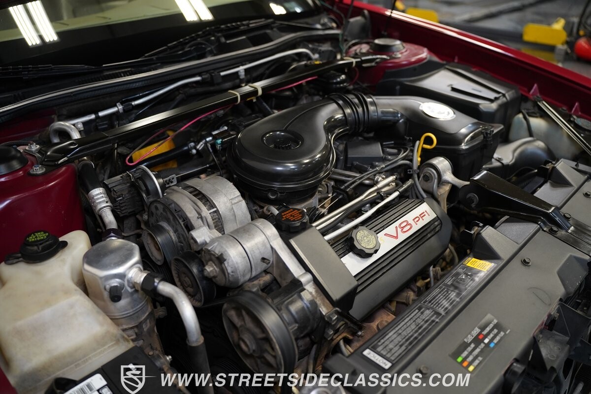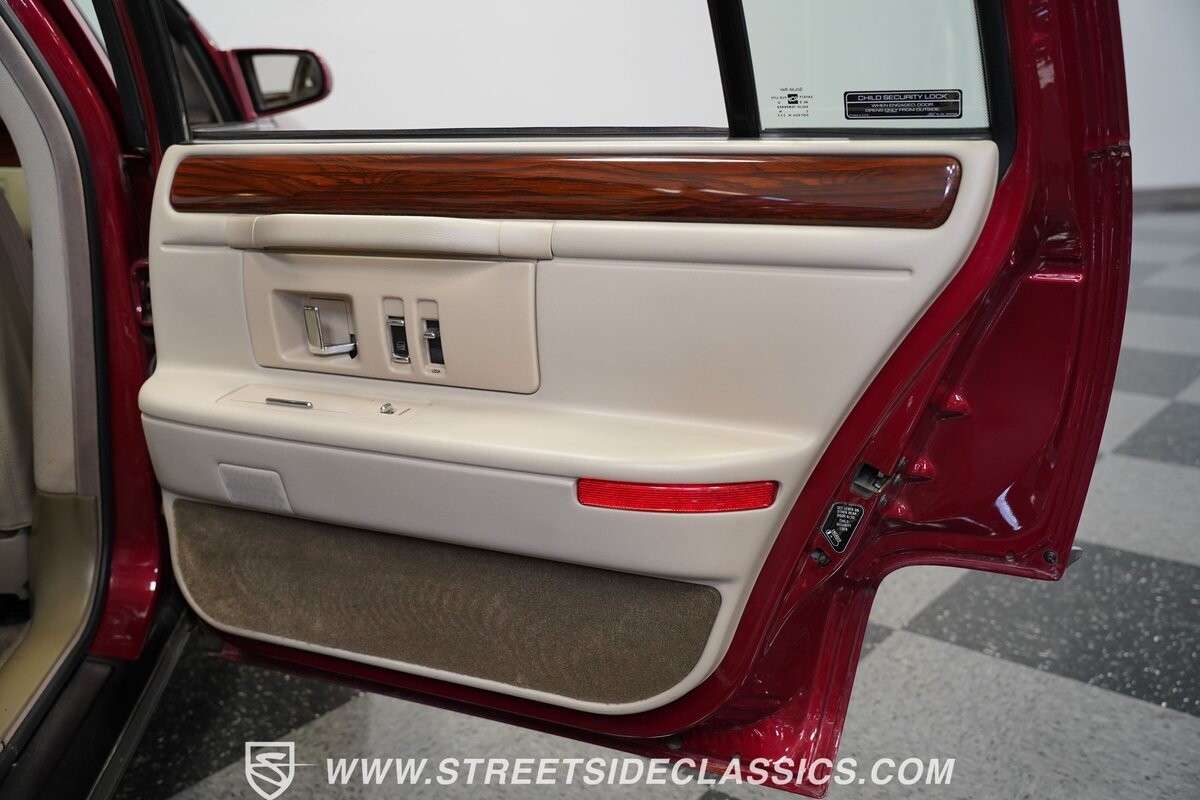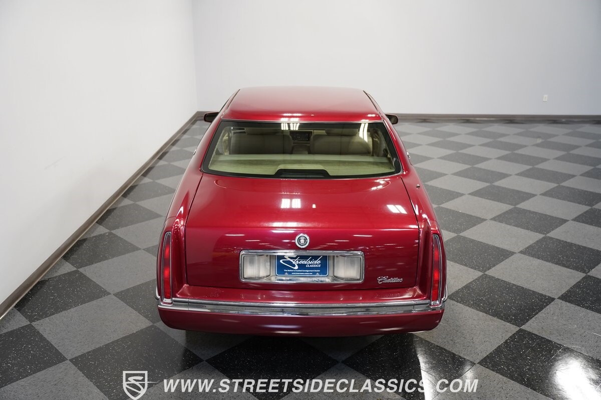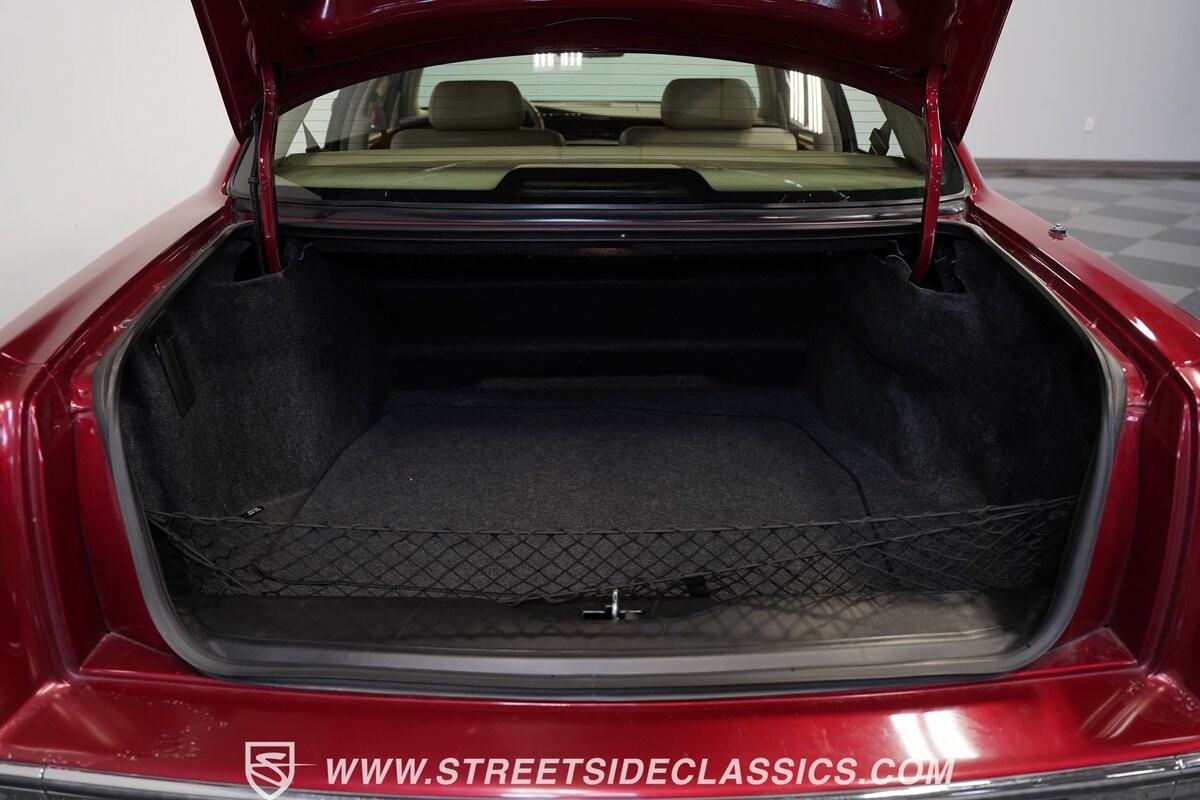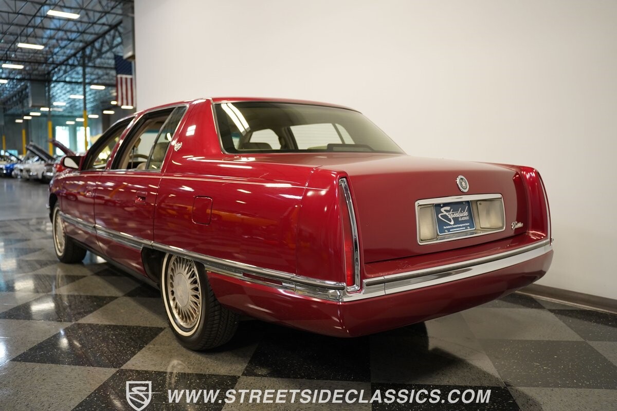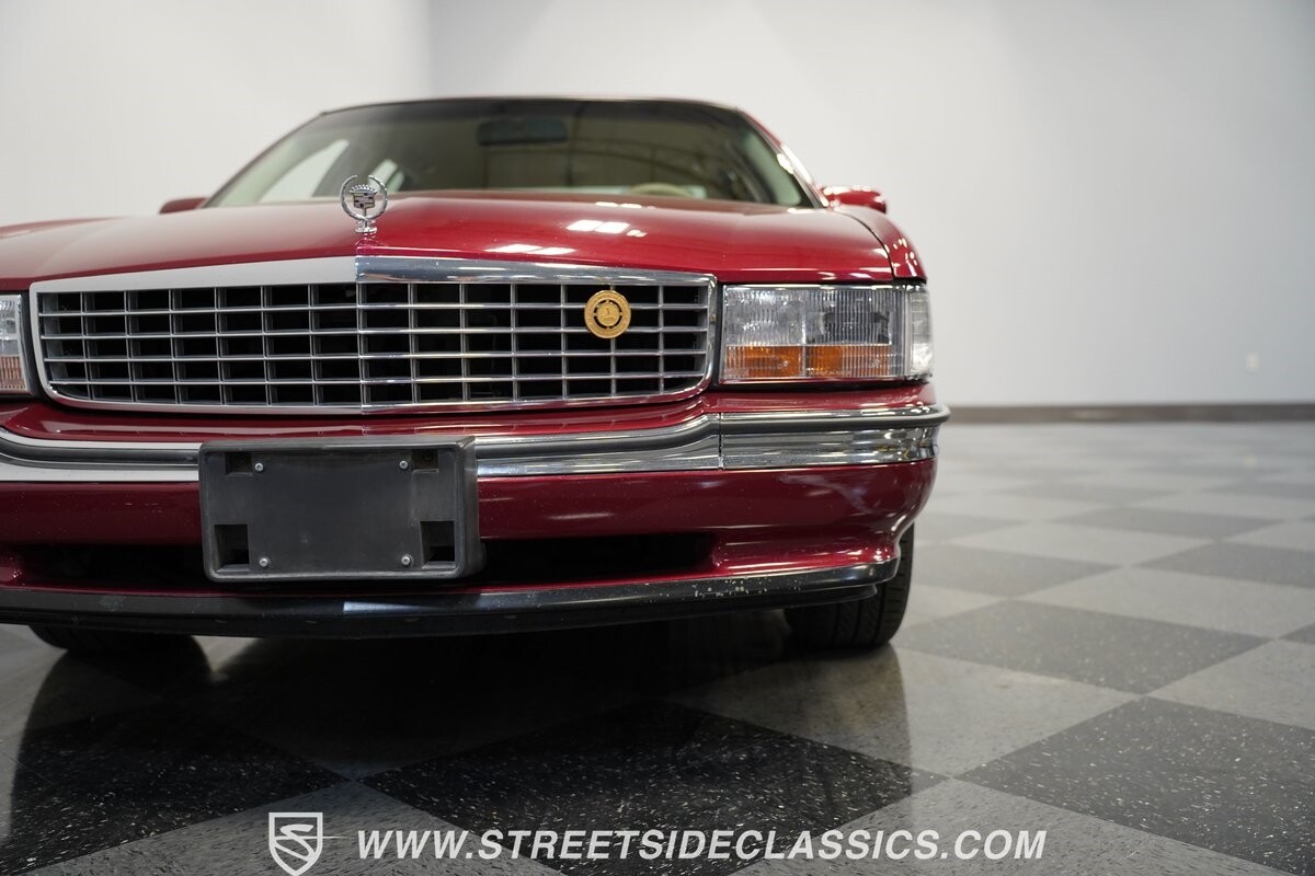 With its Carmine Red paint still gleaming, this 1995 Cadillac Sedan DeVille is a timeless classic that refuses to fade into the background. The subtle tailfins, a nod to Cadillac's iconic design heritage, add a touch of nostalgia to this modern luxury sedan. Rolling on 15" wheels wrapped in Toyo 215/75R15 whitewall radials up front and 215/70R15 in the rear, this DeVille maintains its smooth, composed stance.