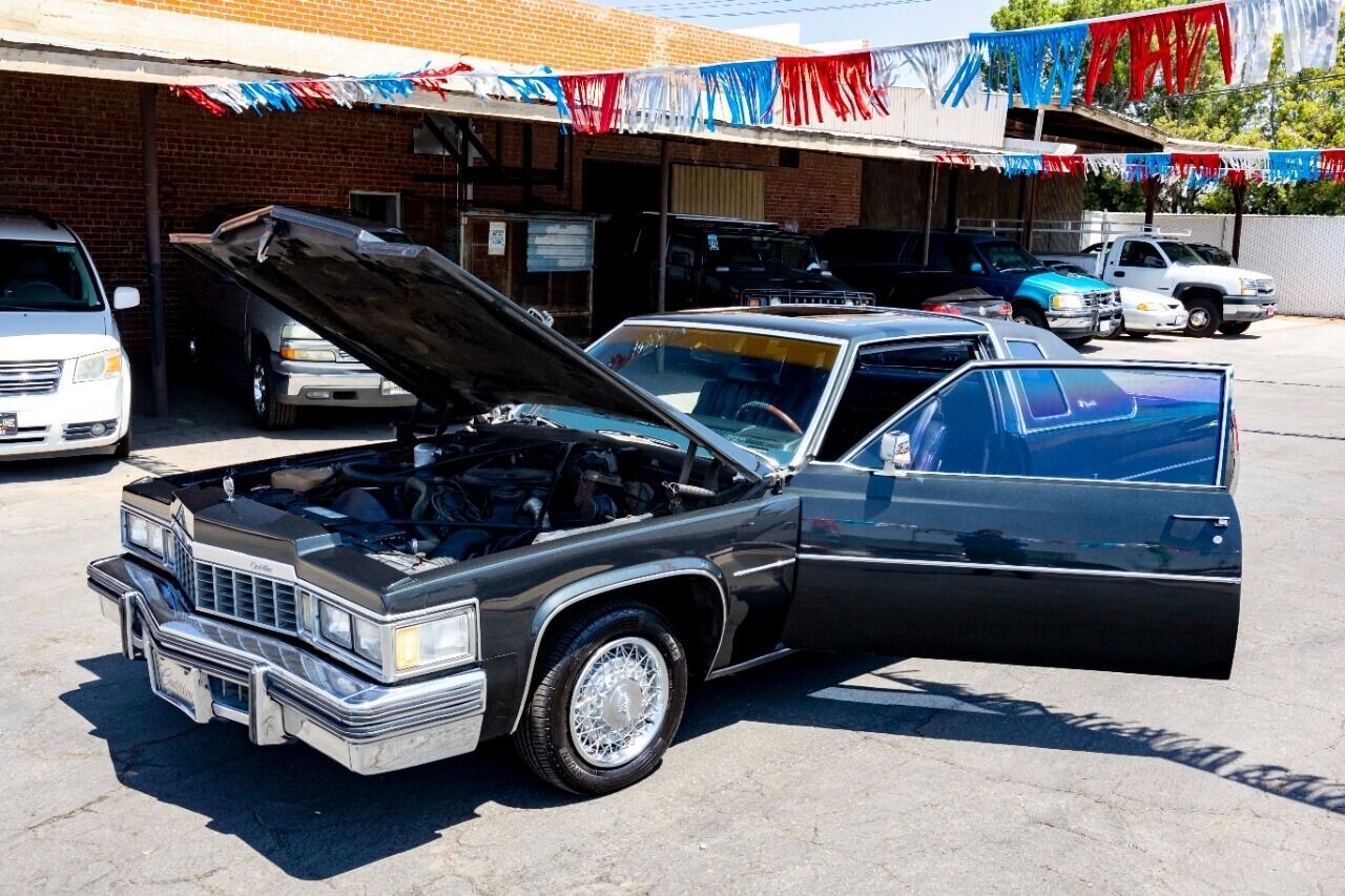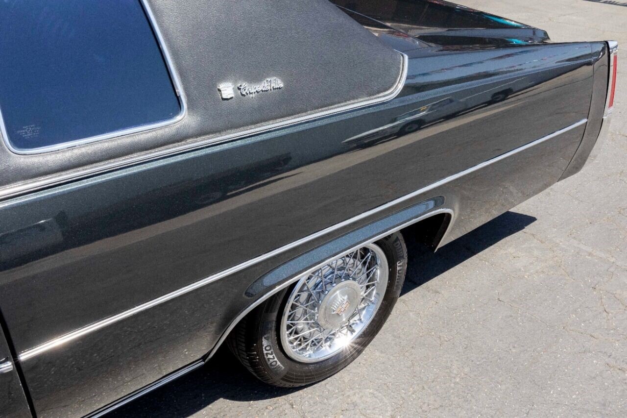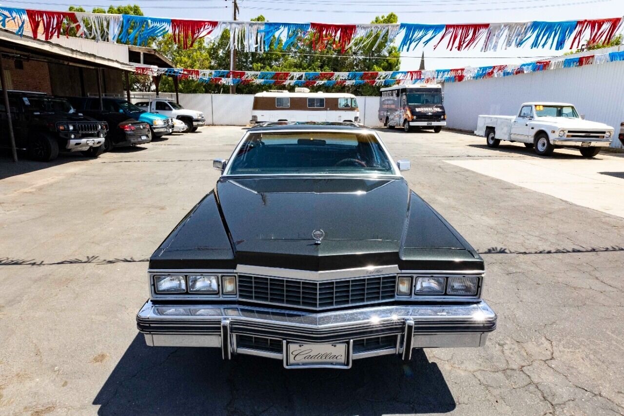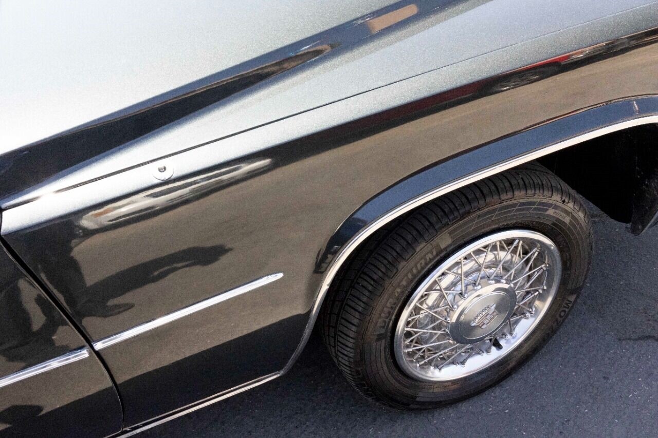 The first year of the 5th generation Cadillac DeVille, 1977 Cadillac DeVilles are a complete redesign from their predecessors, with a new body style that was significantly shorter, slimmer, and lighter – yet gave buyers larger trunk space & much more interior room!! This 1977 Cadillac DeVille features the popular “Cabriolet” trim option, with “Cabriolet” not being a convertible as is common today, but rather a vinyl covering for rear section of the roof! The Dark ‘Edinburgh Green’ metallic paint looks great, highlighting the Cadillac’s body lines!! Interior is typical Cadillac luxury with plush leather seats & wood trim! Under hood is the standard Cadillac 7.0L (427CI) V8 mated to a three-speed automatic transmission. The car also has the same Cadillac wire wheel caps in had when it left the dealerships lot the first time!! In addition, this Cadillac has also been fitted with 4-wheel air-ride system, giving it a comfortable ride plus a GREAT stance when lowered!! See this 1977 Cadillac DeVille Cabriolet today at Borderline Classics & Auto Sales in Downtown Dinuba!!