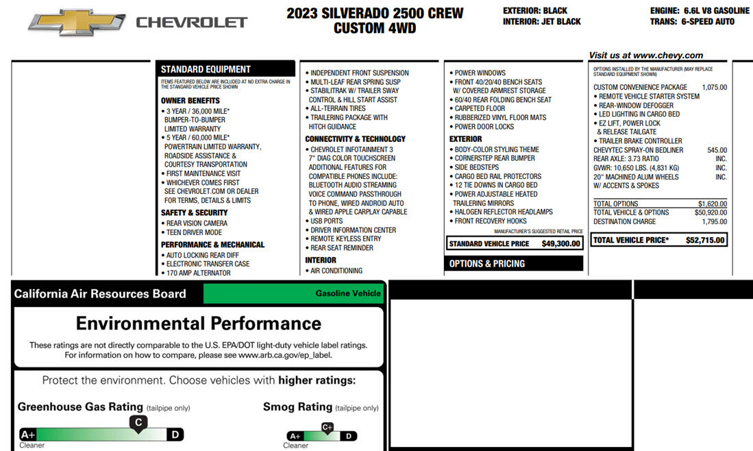 • GVWR, 10,650 lbs. (4831 kg) (Included and only available with CK20743 model and (L8T) 6.6L V8 gas engine with 18" or 20" wheels or CK20943 and (L8T) 6.6L V8 gas engine with 17" wheels.)