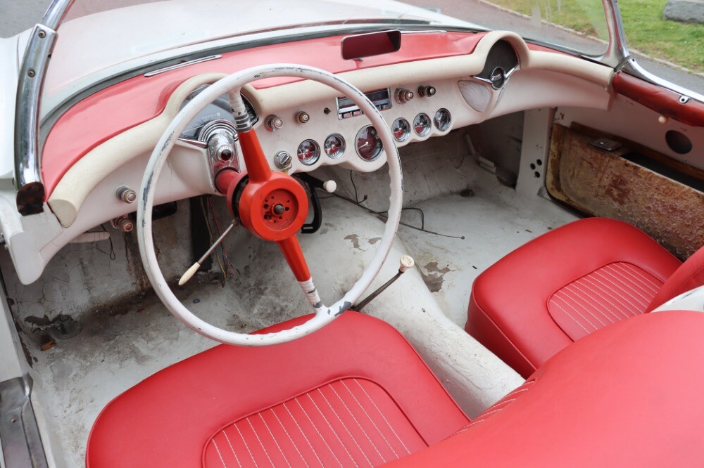 This 1955 Chevrolet Corvette is an extremely sought-after C1 that's the ideal candidate for simple restoration. Polo white with red interior. Just out of an estate where it's been sitting off the road for several years. Offered with its side windows, interior trim pieces, and carpeting. Equipped with the powerglide automatic transmission. Don't miss this extremely collectible and desirable American icon.