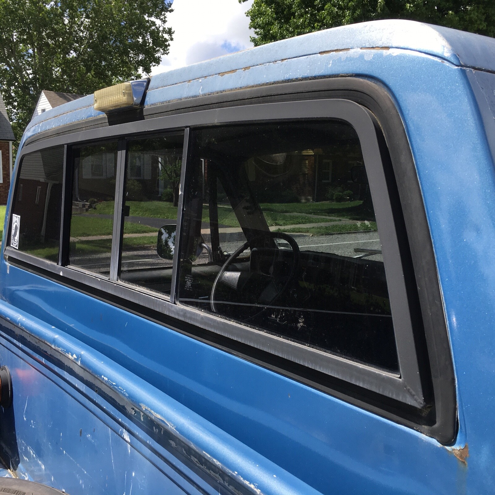 two door, four-wheel-drive, blue and gray, two-tone exterior blue interior