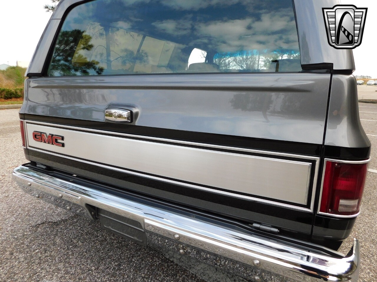 Gateway Classic Cars of Tampa is proud to offer this killer custom 1981 GMC Jimmy. Throw any preconceived ideas you have of what a GMC Jimmy is right out the window and feast your eyes on this beautiful build. Not only are the two door Jimmy's very hard to find, but you may never find one quite like this. The glass like custom paint and obvious painstaking attention to detail from front to back immediately draws your attention. No corners were cut as the paint on the roof looks just as good as the hood! The Detroit Steel wheels are a beautiful adaptation of the factory Rally style offered by GM decades ago. Continuing the walk around the exterior you'll notice the bumpers, glass, and moldings are all new. Looking inside, the theme of new continues throughout the cabin with Dakota Digital gages, a new sound system, and new Houndstooth inspired front and rear seats. Wondering what's under the hood? I thought you'd never ask. Take a peak at a fully rebuilt 6.0l fitted with a Holley intake and Sniper fuel injection system, a mild cam, and custom exhaust that sounds so sweet. For inquiring minds, the undercarriage, where the 700r4 trans resides, is also show worthy and displays tubular lower control arms, QA1s in the front and Ridetech shocks in the rear. This is a high quality highly custom build that runs just as good as it looks. [ omitted ]. [ omitted ]. Our Tampa Showroom is located at 361 30th Street NE Ruskin, FL 33570. [ omitted ].