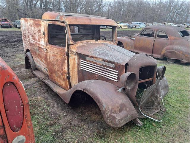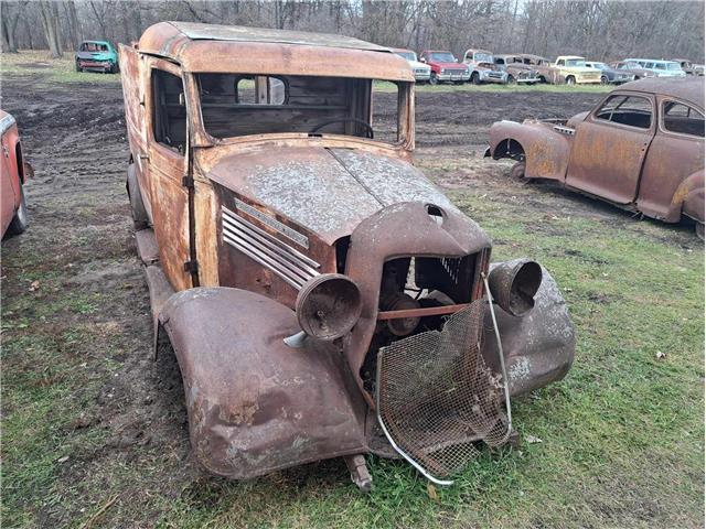 1936 GMC Panel Delivery. Has the original engine and transmission. The engine is likely stuck. Body is pretty rough but the idea is there. This was formerly an ice cream truck back in the day by the looks of the script on the sides. This does not have a front axle or rear wheels. Keep that in mind when finding transport. We have a skidsteer and can assist in loading it. It will winch up on a trailer just fine. No title. It will be sold with a bill of sale only. Asking $2000. Located in Thief River Falls, MN.