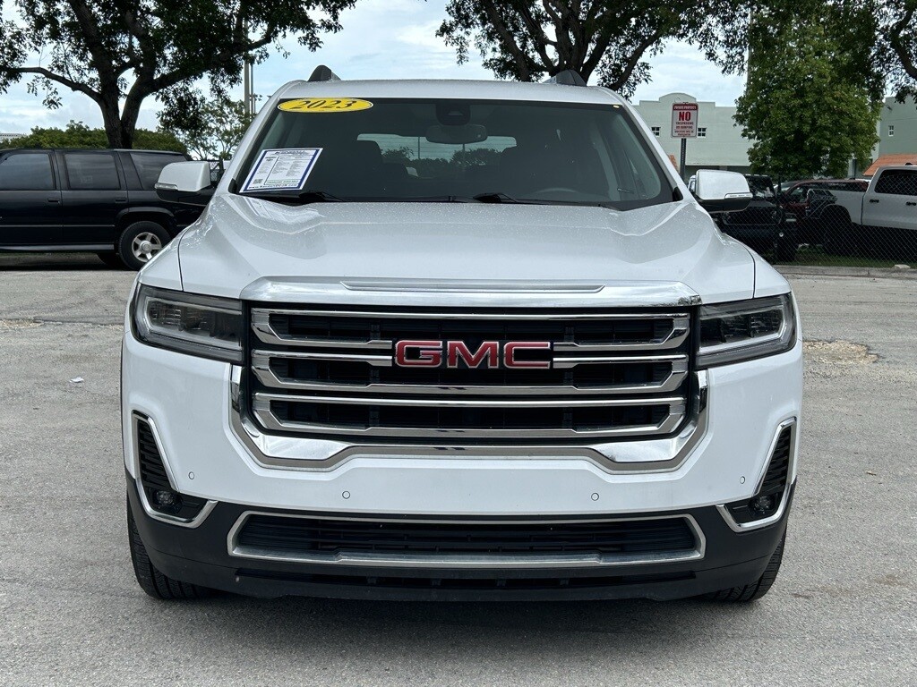Recent Arrival! Priced below KBB Fair Purchase Price! CARFAX One-Owner. Clean CARFAX. Odometer is 3397 miles below market average! FWD, Jet Black Leather. White 2023 GMC Acadia SLT FWD 9-Speed Automatic 2.0L Turbocharged Se Habla Espanol.