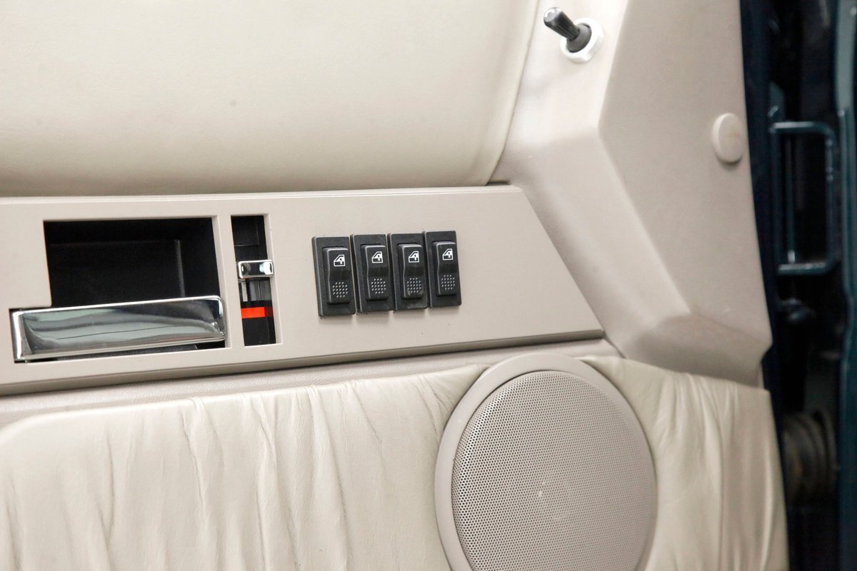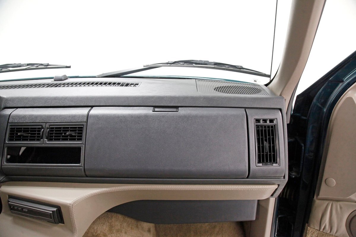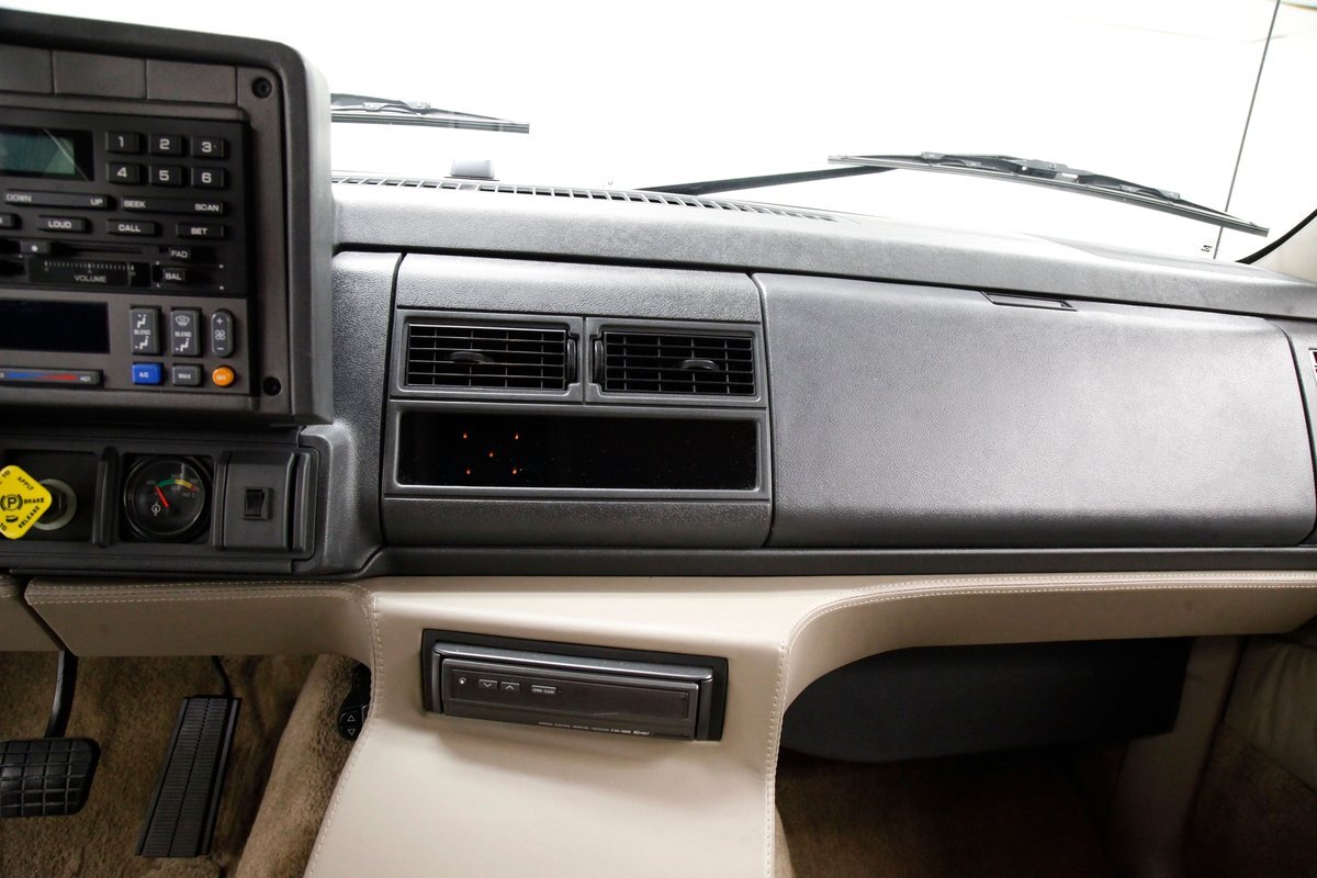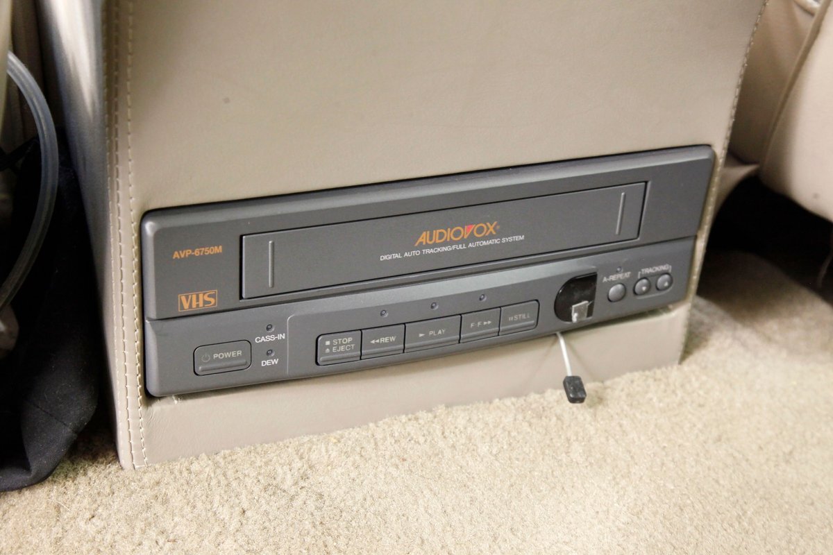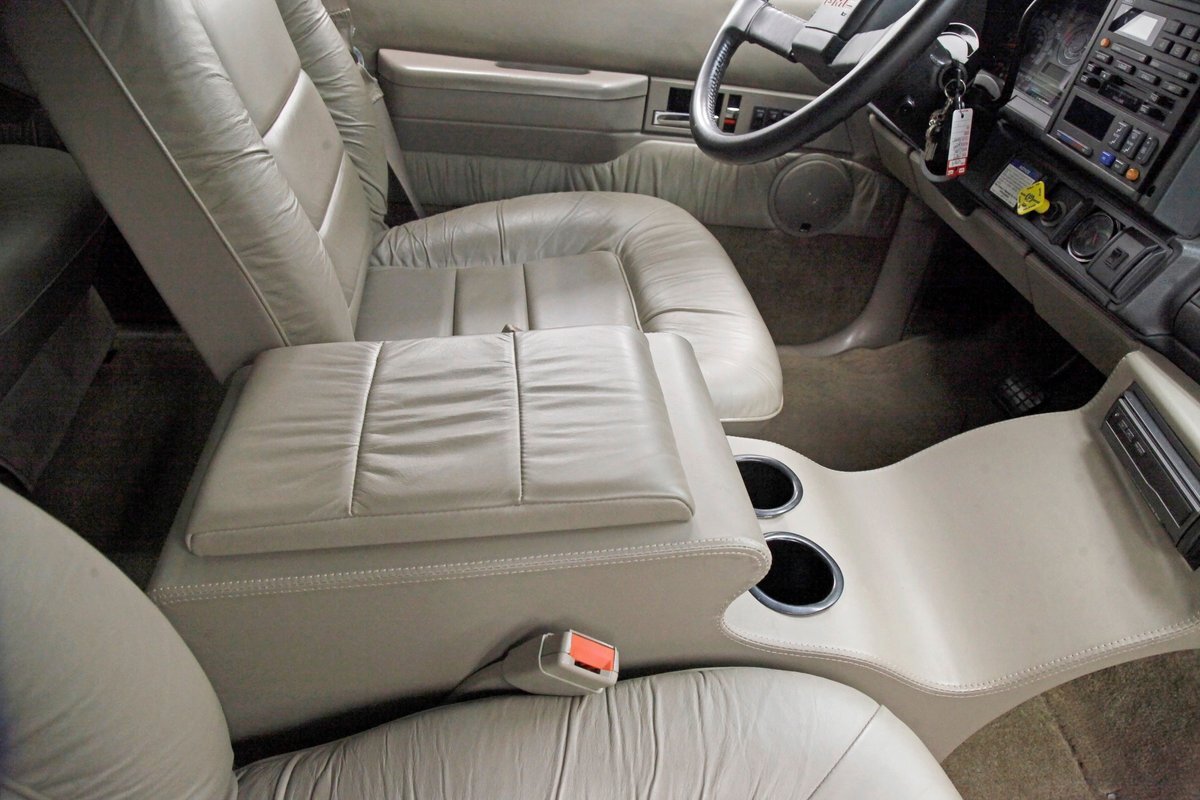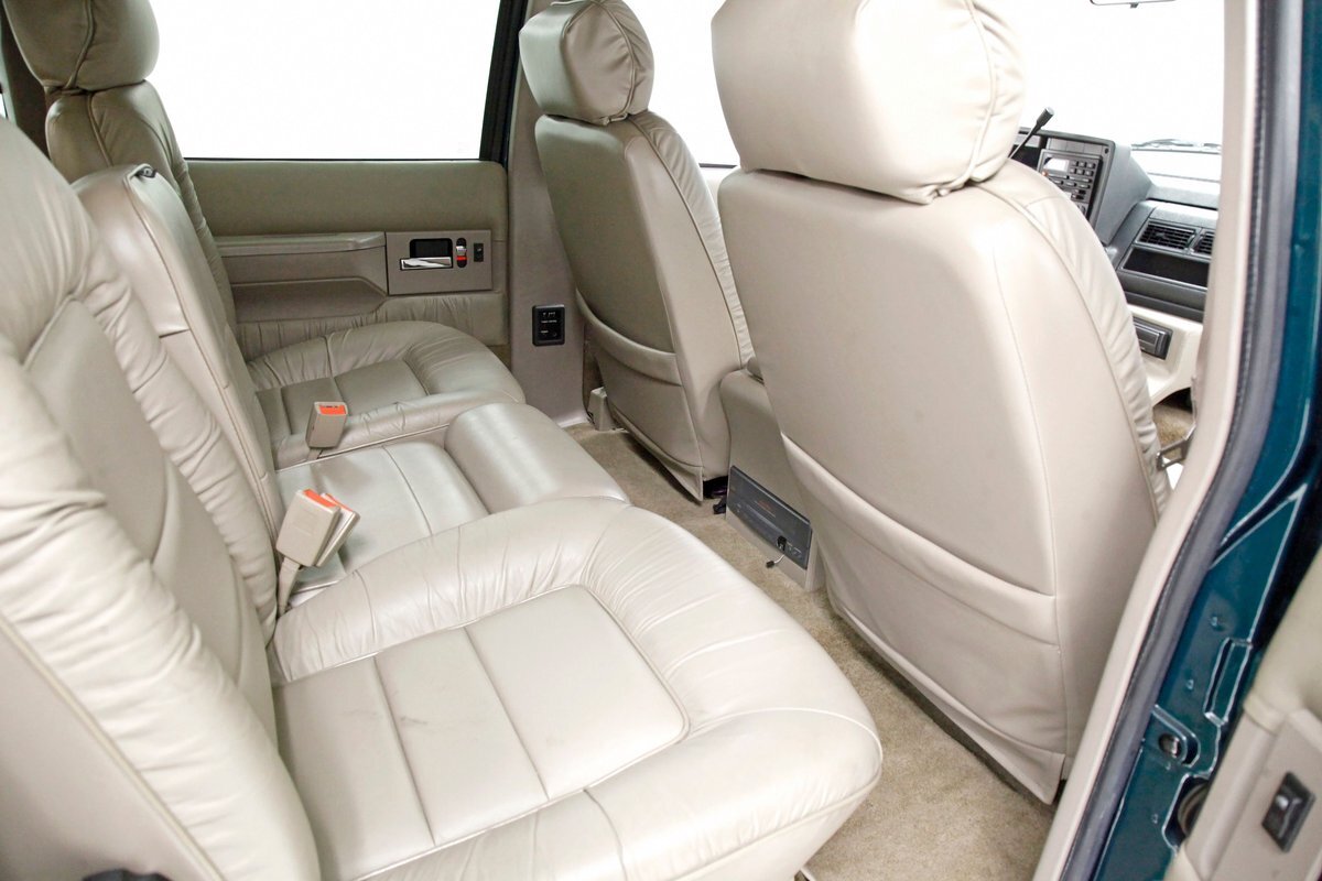 In true big rig fashion, you'll need some gumption to climb up to the driver's seat, over the fuel tanks and over not 1 but 2 steps to get in, it is not for the faint hearted. Once inside you are enveloped in the lap of luxury seated on any one of the front or rear tan leather living room recliners you can grab the wheel or your remote to the TV with VHS player or stereo as it is equipped with both. A square and rectangle dash is in front and shows all the essentials along with many conveniences to poke your fingers at for your comfort. The truck does have an airside bagged suspension activation button and all dash controls are pushbutton. Overhead in a roof console if you will, is the drop down TV, some lighting, input jacks and a bit of small item storage bins. The rear passengers are treated to a trio of chairs all slammed together all fun full tan luxurious leather and plenty of room for 3. The center seat back doubles as an armrest and there are climate controls and other conveniences available to these rear passengers. Tan carpeting floods the floors and right down to the door panels inside which all these features reside, is pure luxury with leather and vinyl power toggles and speakers. And if this is not enough a 3rd row leather seat is in which is a luxurious "simple", (not), bench also in tufted leather and room for another 3. A picture window gives the rear passengers something to peer out of to view the cargo being hauled.