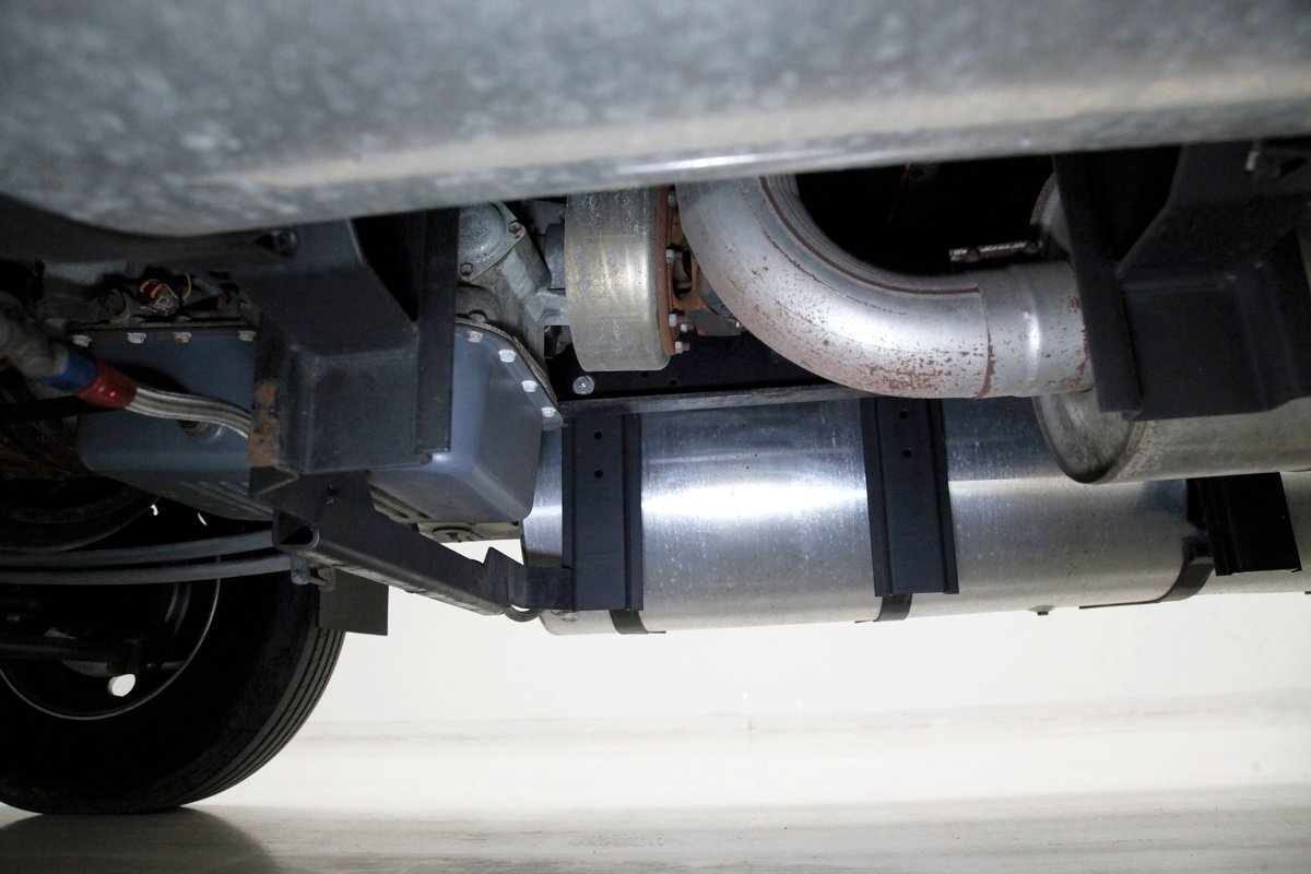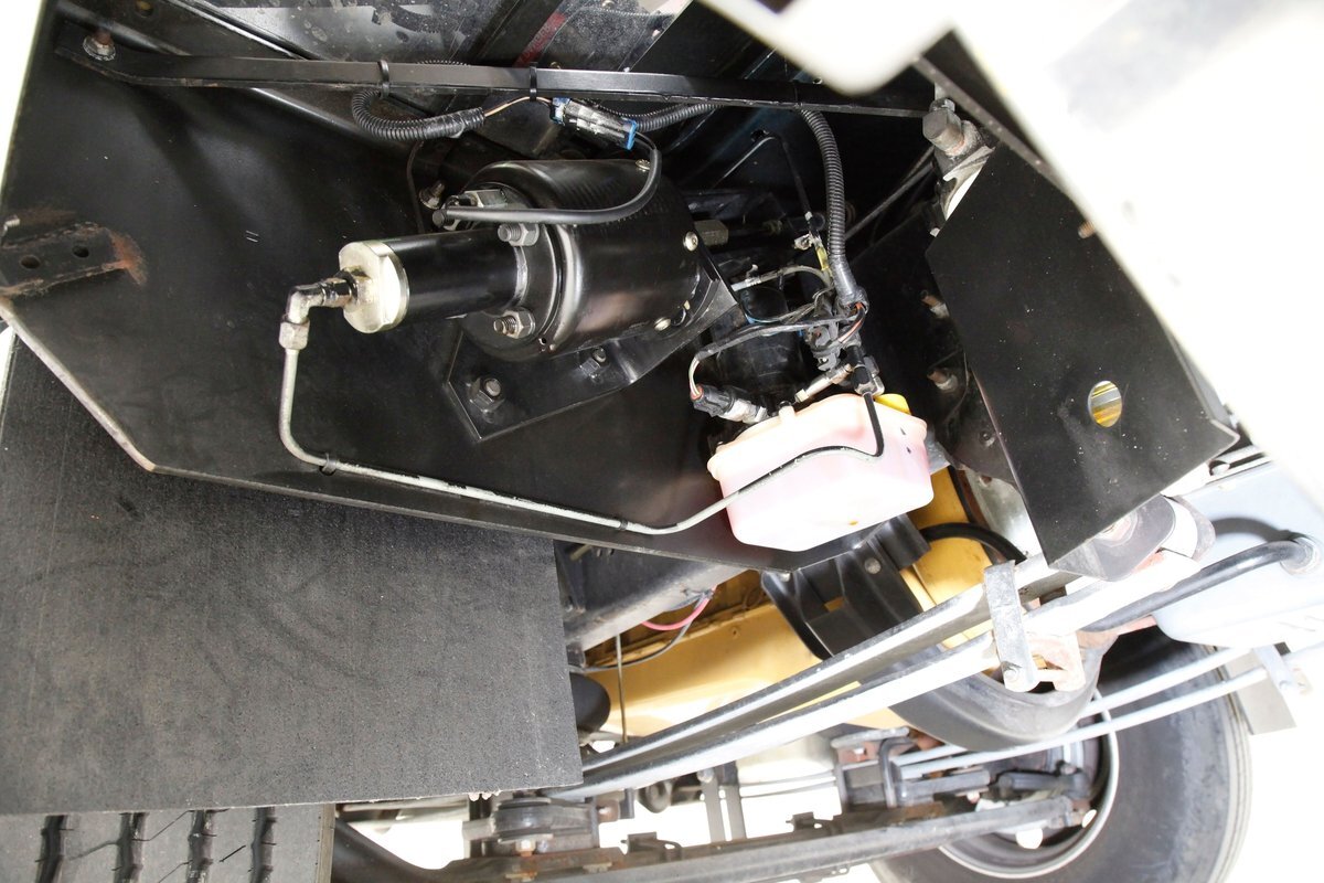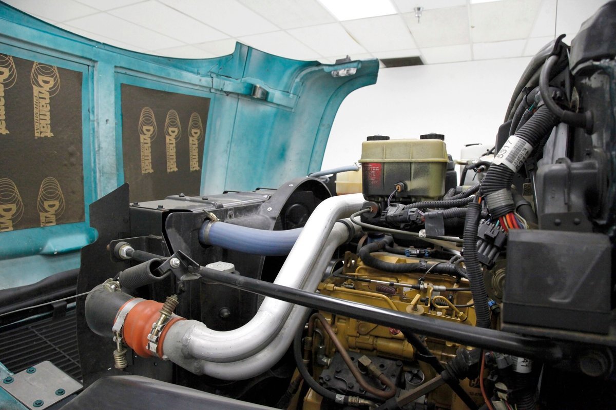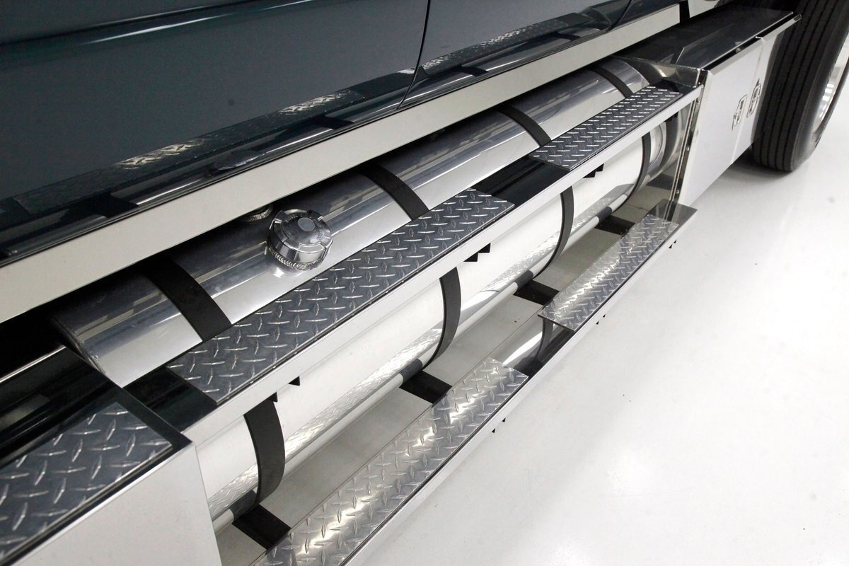 A flip forward of the front hinged fiberglass hood reveals a Cat 3116 6.6 liter inline 6 cylinder powerhouse capable of producing 205 horses. It is fed diesel by EFI and sports an Allison AT545 4-speed automatic transmission on back. A heavy duty rear axle keeps your rolling down the highway.