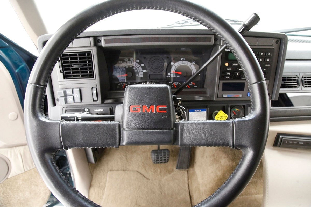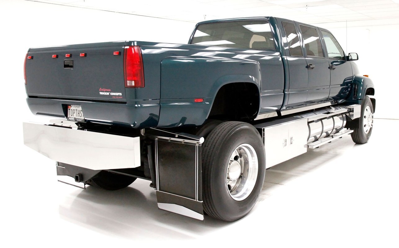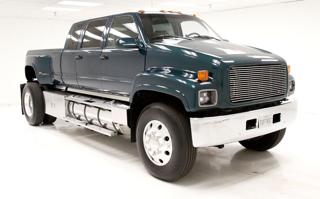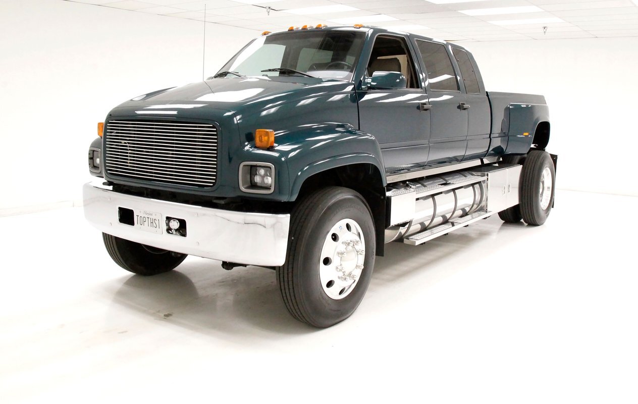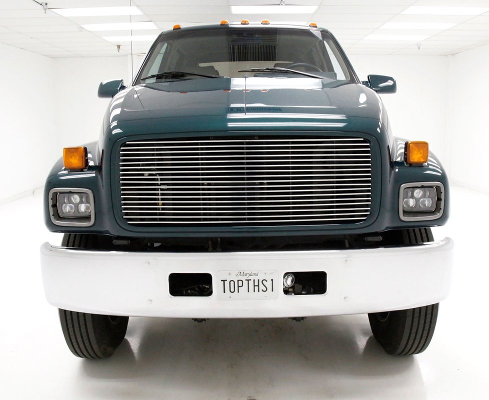 Holy hooks Batman! Gracing our Hallowed Halls and flirting with our Max Headroom ceiling height, we give you a 1997 GMC C6500 truck. Dual rear wheels and tires, a grille height that allows you to stare down the headlights eye to eye, and luxury comfort inside the crew cab, then you need to take a serious look at this monster in pickup bedded form. Built as a promotion truck for Speed Unlimited Performance Centers, a staple for Hot Rodders in the Washington DC, Maryland and Virginia area. Quite a BIG statement! All with a mere 5,961 miles clocked on her/him, it! (Im trying to be politically correct which is IMPOSSIBLE These days.). Let's just say it identifies a BIG!