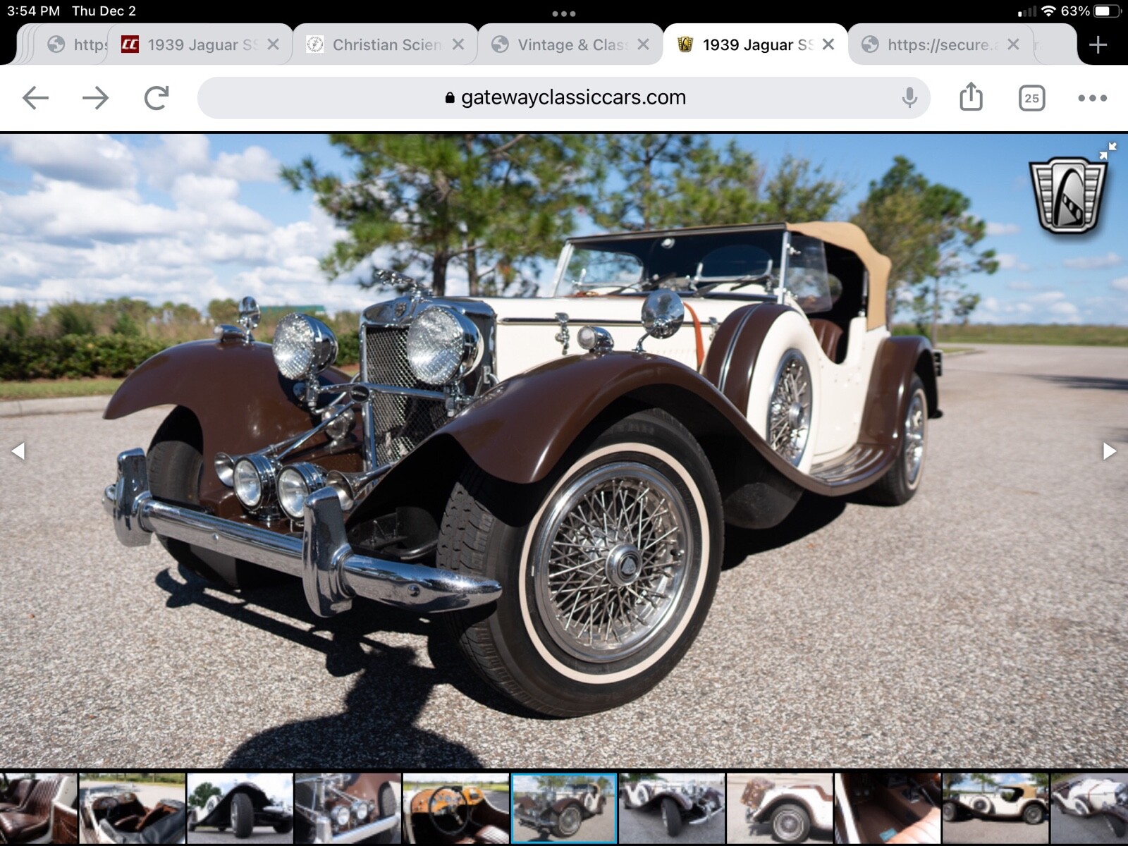 This 1939 Jaguar Duke SS100 is a thrill to drive with its 4-speed manual transmission and different windshield options. During the engine rebuild, an electric fan with thermostat control was added, the radiator, carburetor, spark plugs, distributor and the alternator were replaced. This jag is registered in California and therefore, a smog certified. This jag is ideal if you are looking for something that will turn heads and not break the bank. This Jaguar is Gorgeous, Professionally built, and the Ultimate Reproduction.Vehicle Details