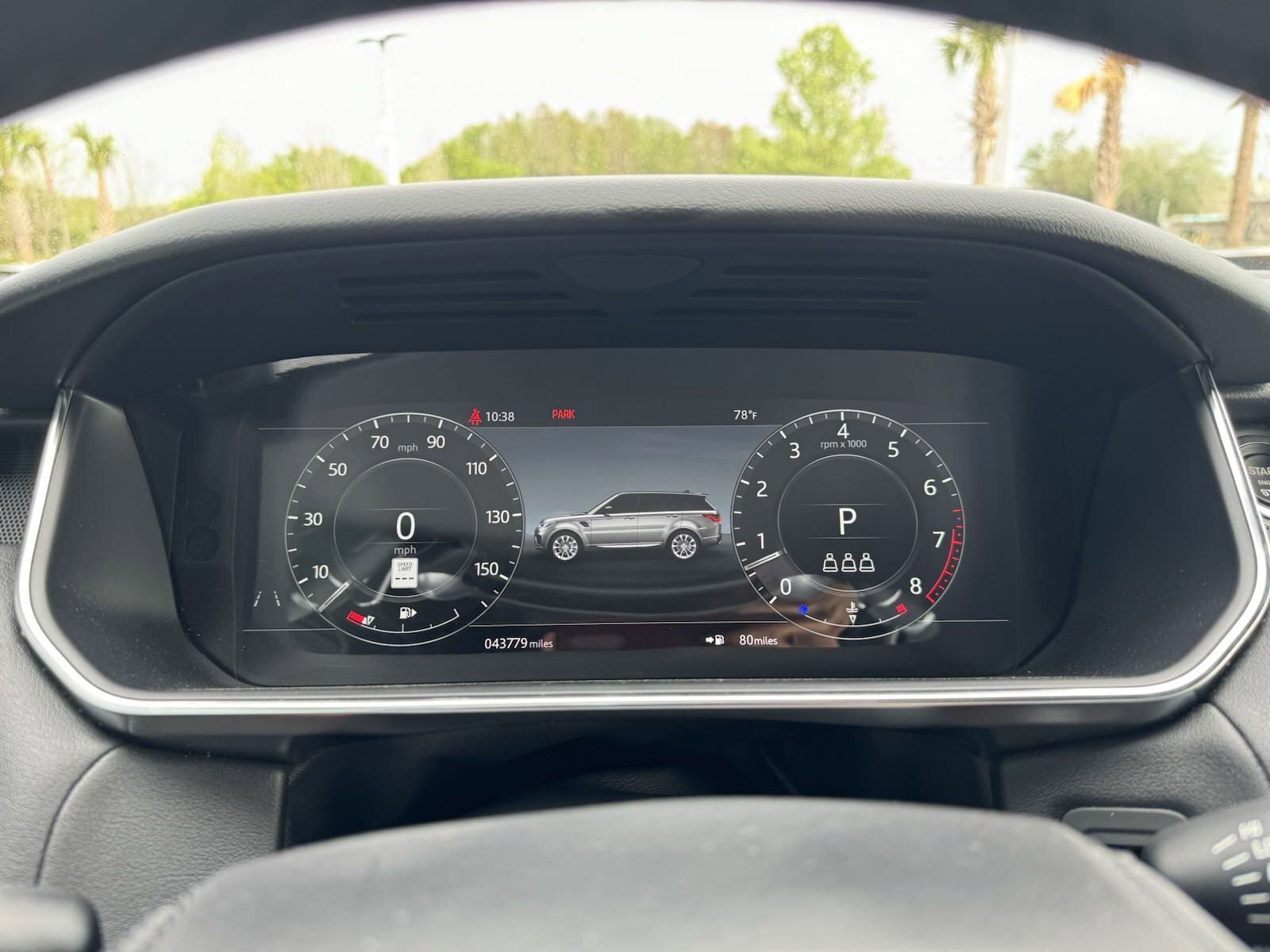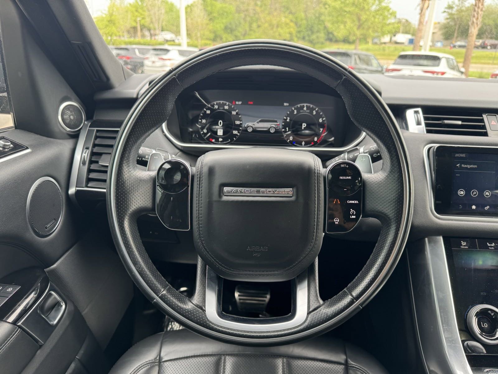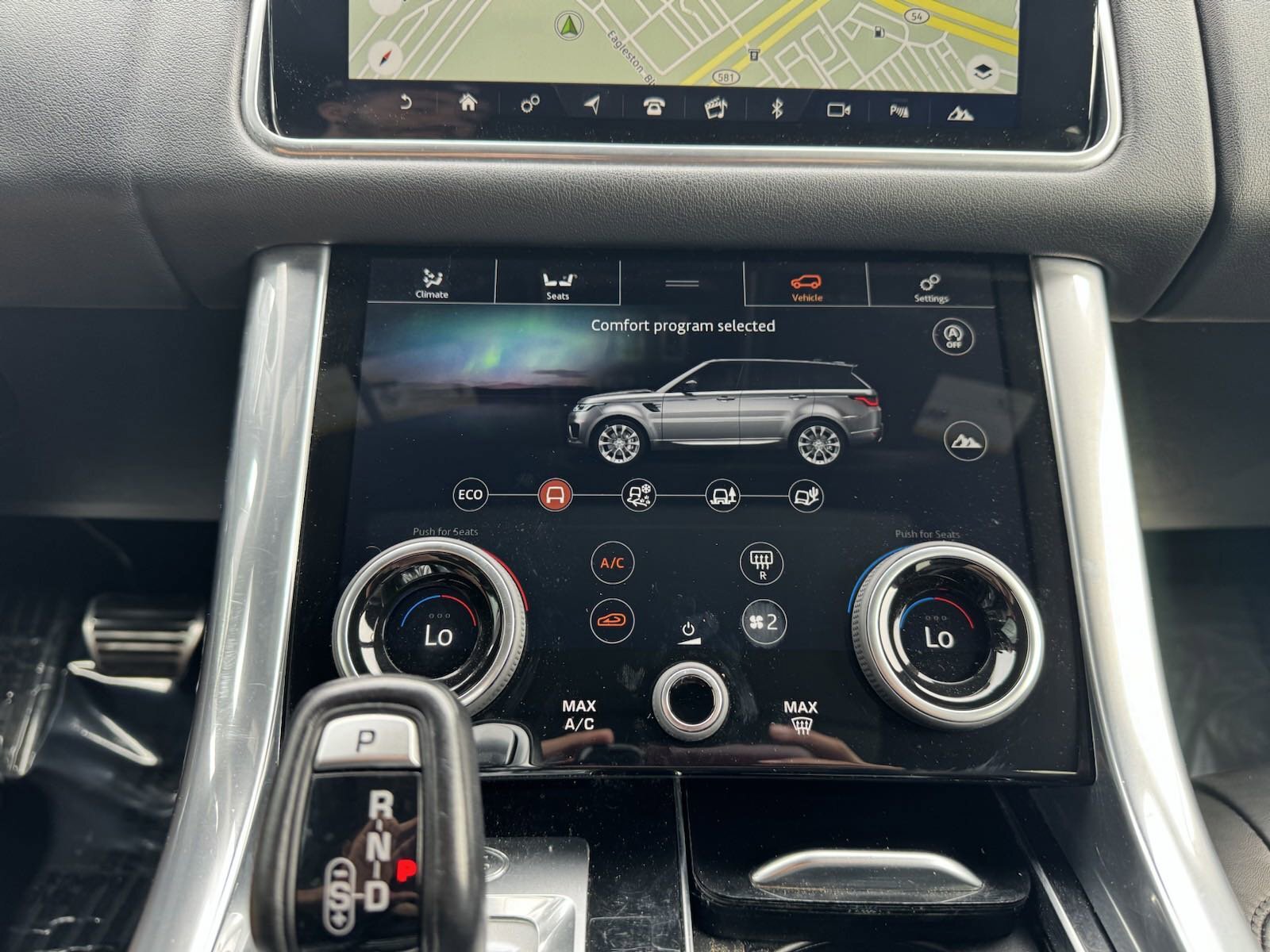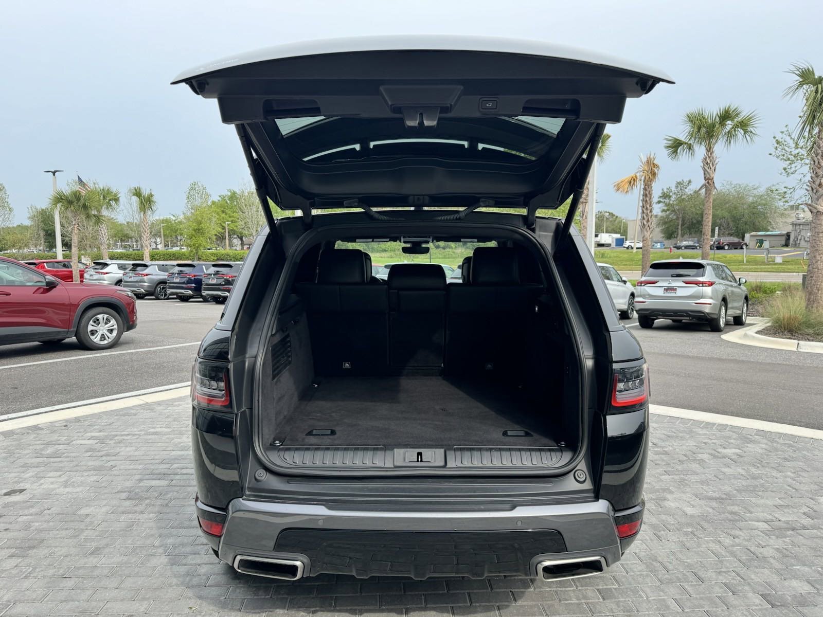 Range Rover Sport HSE Silver Edition, 4D Sport Utility, 3.0L I6 Turbocharged, 8-Speed Automatic, 4WD, Santorini Black Metallic, Ebony/Ebony/Ebony/Ebony w/Grained Leather Seat Trim, 19 Speakers, 3.55 Axle Ratio, 4-Wheel Disc Brakes, ABS brakes, Air Conditioning, Alloy wheels, AM/FM radio: SiriusXM, Android Auto, Apple CarPlay, Apple CarPlay & Android Auto, Auto High-beam Headlights, Auto tilt-away steering wheel, Auto-dimming door mirrors, Auto-dimming Rear-View mirror, Auto-leveling suspension, Automatic temperature control, Brake assist, Bumpers: body-color, Child-Seat-Sensing Airbag, Compass, Delay-off headlights, Driver door bin, Driver vanity mirror, Dual front impact airbags, Dual front side impact airbags, Electronic Stability Control, Emergency communication system: InControl Protect, Exterior Parking Camera Rear, Four wheel independent suspension, Front anti-roll bar, Front Bucket Seats, Front Center Armrest w/Storage, Front dual zone A/C, Front fog lights, Front reading lights, Fully automatic headlights, Headlight cleaning, Heated & Cooled Front & Rear Seats, Heated door mirrors, Heated front seats, Heated rear seats, Heated steering wheel, Illuminated entry, Leather Shift Knob, Low tire pressure warning, Memory seat, Navigation System, Occupant sensing airbag, Outside temperature display, Overhead airbag, Overhead console, Panic alarm, Passenger door bin, Passenger vanity mirror, Perforated Windsor Leather Seat Trim, Power adjustable front head restraints, Power door mirrors, Power driver seat, Power Liftgate, Power moonroof, Power passenger seat, Power steering, Power windows, Radio data system, Radio: Meridian Surround Sound System (825W), Rain sensing wipers, Rear air conditioning, Rear anti-roll bar, Rear dual zone A/C, Rear fog lights, Rear reading lights, Rear seat center armrest, Rear window defroster, Rear window wiper, Remote keyless entry, Security system, Speed control, Speed-sensing steering, Speed-Sensitive Wipers, Split folding rear seat, Spoiler, Steering wheel memory, Steering wheel mounted audio controls, Tachometer, Telescoping steering wheel, Tilt steering wheel, Traction control, Trip computer, Turn signal indicator mirrors, Variably intermittent wipers, Ventilated front seats, Wheels: 21" 5 Split-Spoke Gloss Black 'Style 5007'. 2022 Land Rover Range Rover Sport HSE Silver Edition Santorini Black Metallic 4WD 8-Speed Automatic 3.0L I6 Turbocharged CARFAX One-Owner.