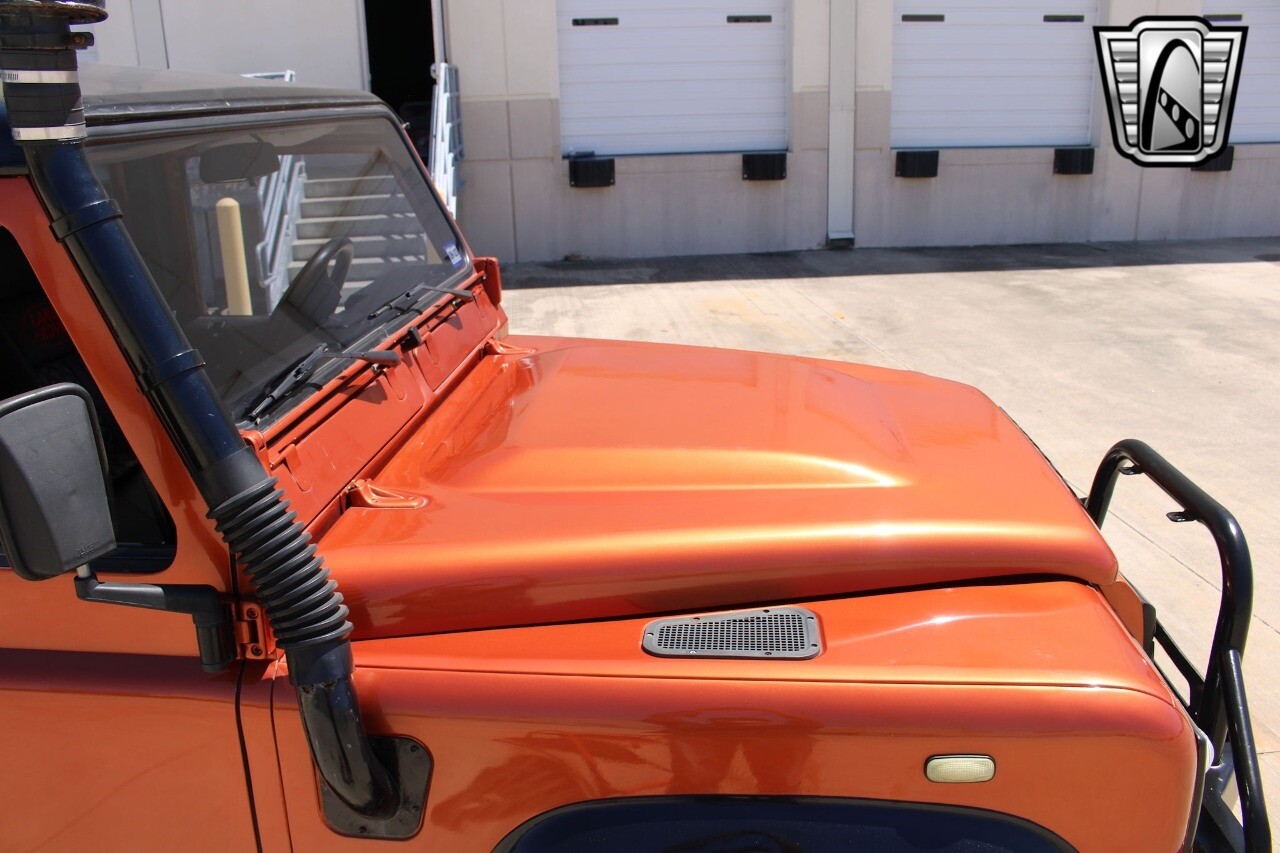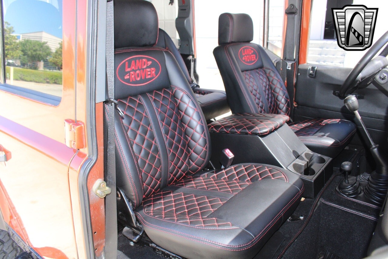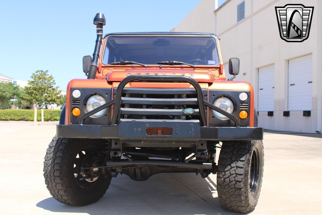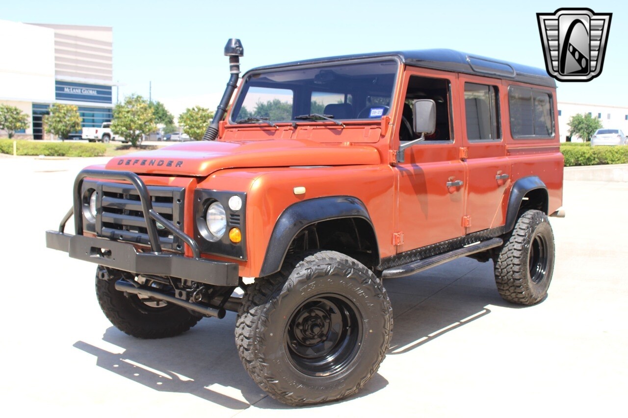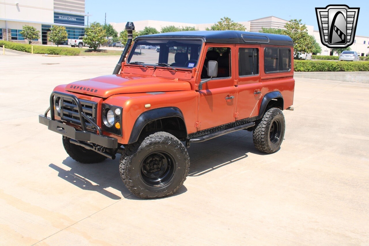 Gateway Classic Cars Houston Showroom is pleased to offer this 1993 Land Rover Defender for sale. Step into the world of luxury and adventure with its nice blend of style, power, and comfort. Showcasing an eye-catching orange metallic exterior, this beast stands out from the crowd. The black interior, complete with custom diamond-stitched synthetic leather seating, adds a touch of luxury to the rugged charm of this iconic vehicle, and its new headliner adds to the overall ambience. Under the hood, the 1993 Land Rover Defender houses a power-packed 300 TDI 4-cylinder turbo diesel engine that provides plenty of torque for those wilderness adventures. The 5-Speed manual transmission gives you a great balance of control and ease, ensuring a smooth and engaging driving experience. Enjoy the convenience of power front windows, power brakes, and power steering, all designed to make your journey comfortable and stress-free. With its robust LT285/75R16 off-road radial tires, the Defender is well-equipped to tackle any terrain with ease, making it an ideal chariot for adventure seekers. The built-in Dual-DIN touchscreen AM/FM/Satellite-capable radio with Bluetooth offers in-car entertainment and connectivity like never before. Whether you want to catch up on your favorite tunes or need directions to your next destination, this system has you covered. Safety is a priority, and so this machine comes with seatbelts to ensure you and your passengers are always protected. The added feature of air conditioning ensures a comfortable and cool ride even on the hottest days. This 1993 Land Rover Defender is more than just a vehicle - it's a lifestyle. Offering a blend of power, luxury, and safety, it's built to take you places and make every journey memorable. Experience the thrill and grandeur of this vintage off-roading ride today!.