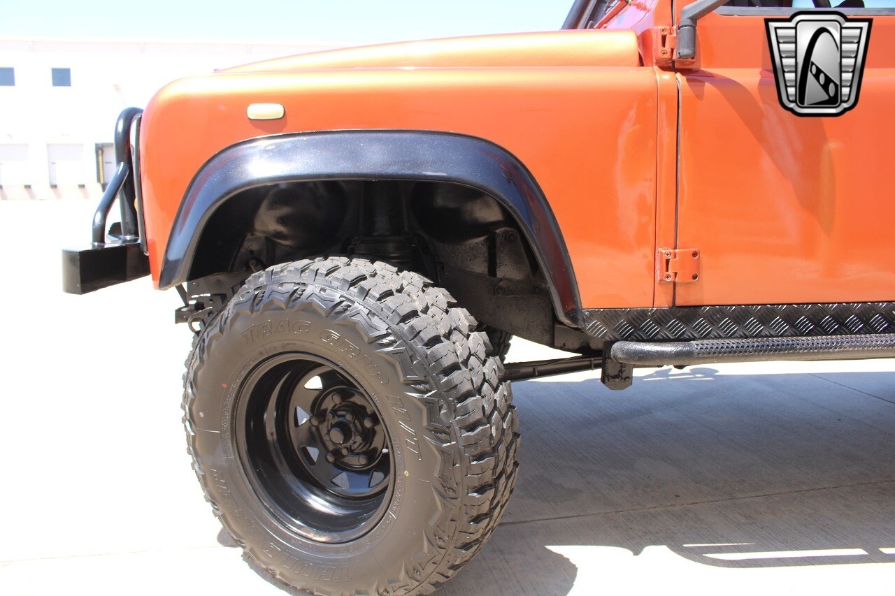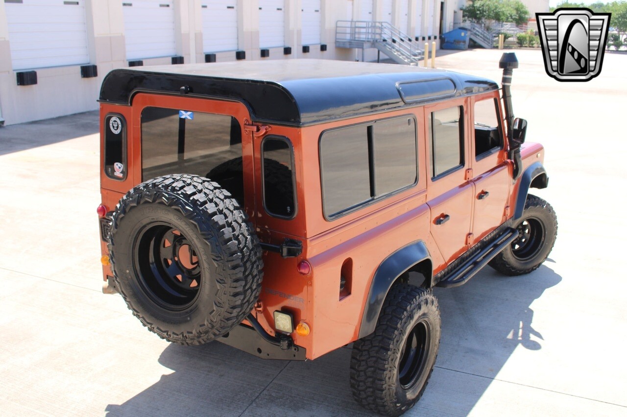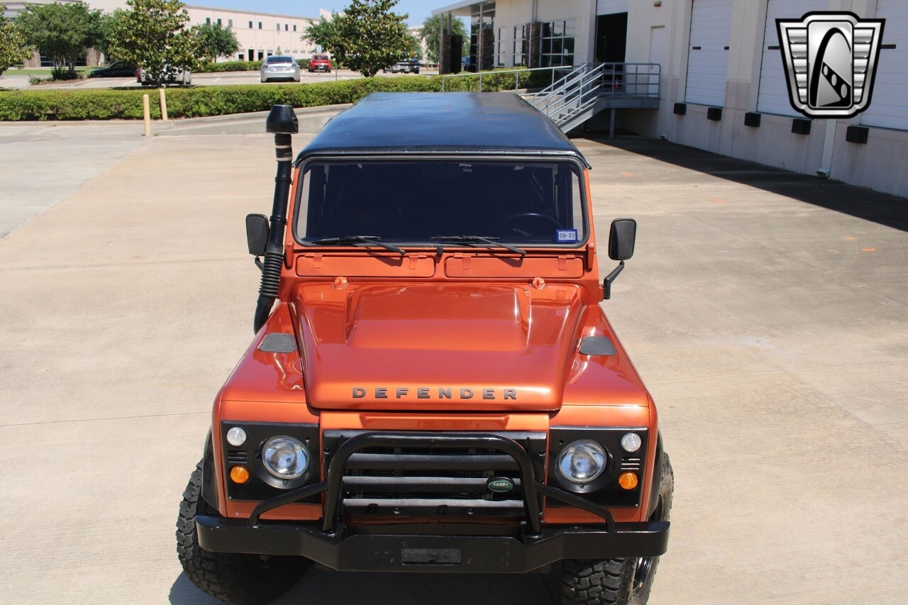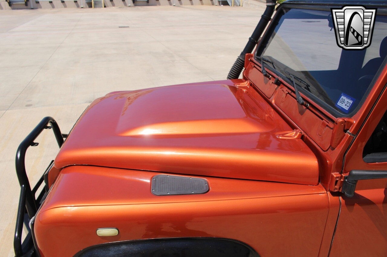 Gateway Classic Cars Houston Showroom is pleased to offer this 1993 Land Rover Defender for sale. Step into the world of luxury and adventure with its nice blend of style, power, and comfort. Showcasing an eye-catching orange metallic exterior, this beast stands out from the crowd. The black interior, complete with custom diamond-stitched synthetic leather seating, adds a touch of luxury to the rugged charm of this iconic vehicle, and its new headliner adds to the overall ambience. Under the hood, the 1993 Land Rover Defender houses a power-packed 300 TDI 4-cylinder turbo diesel engine that provides plenty of torque for those wilderness adventures. The 5-Speed manual transmission gives you a great balance of control and ease, ensuring a smooth and engaging driving experience. Enjoy the convenience of power front windows, power brakes, and power steering, all designed to make your journey comfortable and stress-free. With its robust LT285/75R16 off-road radial tires, the Defender is well-equipped to tackle any terrain with ease, making it an ideal chariot for adventure seekers. The built-in Dual-DIN touchscreen AM/FM/Satellite-capable radio with Bluetooth offers in-car entertainment and connectivity like never before. Whether you want to catch up on your favorite tunes or need directions to your next destination, this system has you covered. Safety is a priority, and so this machine comes with seatbelts to ensure you and your passengers are always protected. The added feature of air conditioning ensures a comfortable and cool ride even on the hottest days. This 1993 Land Rover Defender is more than just a vehicle - it's a lifestyle. Offering a blend of power, luxury, and safety, it's built to take you places and make every journey memorable. Experience the thrill and grandeur of this vintage off-roading ride today!.