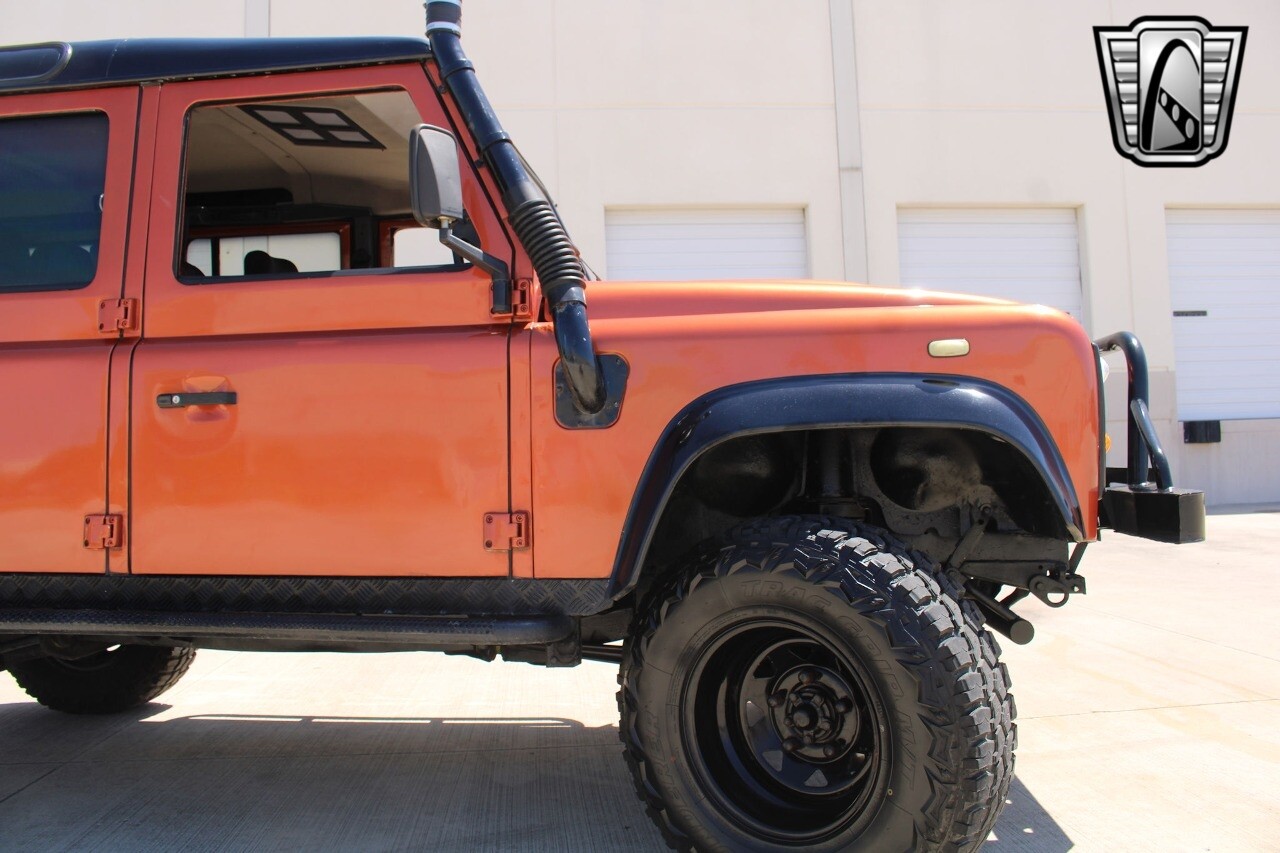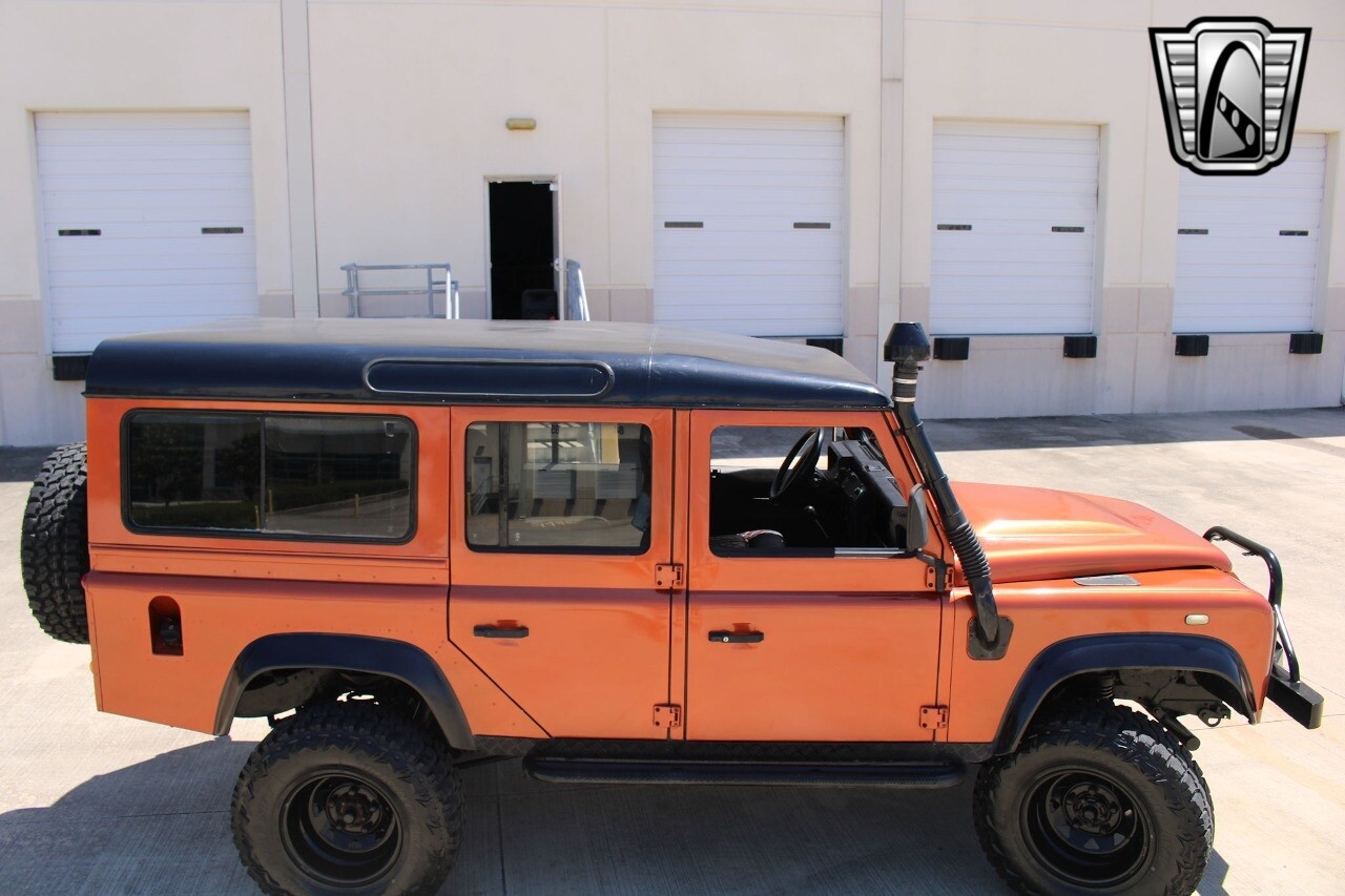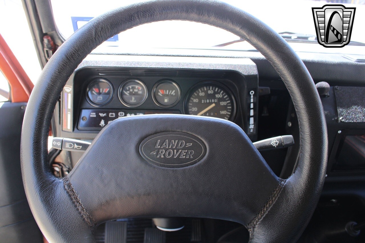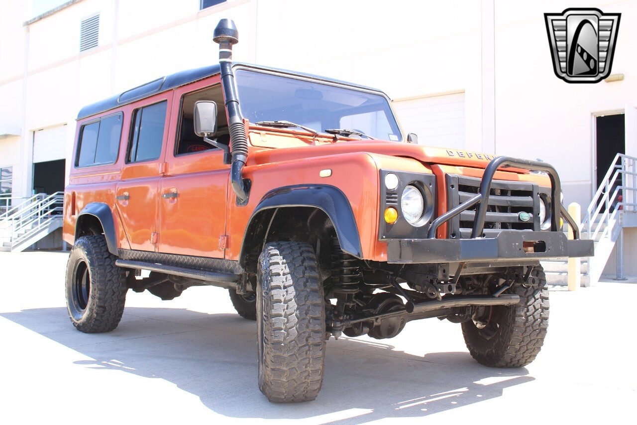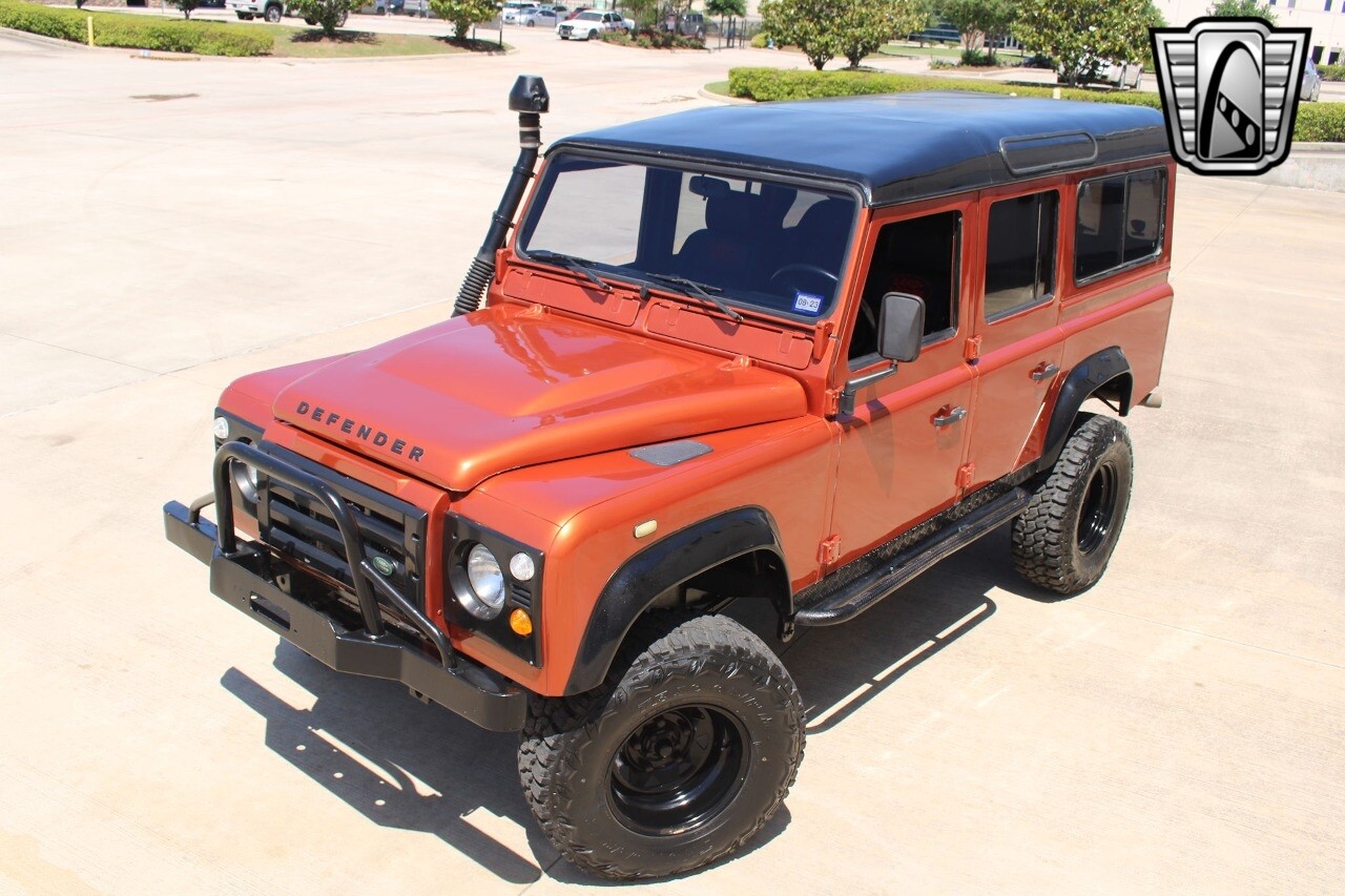 Gateway Classic Cars Houston Showroom is pleased to offer this 1993 Land Rover Defender for sale. Step into the world of luxury and adventure with its nice blend of style, power, and comfort. Showcasing an eye-catching orange metallic exterior, this beast stands out from the crowd. The black interior, complete with custom diamond-stitched synthetic leather seating, adds a touch of luxury to the rugged charm of this iconic vehicle, and its new headliner adds to the overall ambience. Under the hood, the 1993 Land Rover Defender houses a power-packed 300 TDI 4-cylinder turbo diesel engine that provides plenty of torque for those wilderness adventures. The 5-Speed manual transmission gives you a great balance of control and ease, ensuring a smooth and engaging driving experience. Enjoy the convenience of power front windows, power brakes, and power steering, all designed to make your journey comfortable and stress-free. With its robust LT285/75R16 off-road radial tires, the Defender is well-equipped to tackle any terrain with ease, making it an ideal chariot for adventure seekers. The built-in Dual-DIN touchscreen AM/FM/Satellite-capable radio with Bluetooth offers in-car entertainment and connectivity like never before. Whether you want to catch up on your favorite tunes or need directions to your next destination, this system has you covered. Safety is a priority, and so this machine comes with seatbelts to ensure you and your passengers are always protected. The added feature of air conditioning ensures a comfortable and cool ride even on the hottest days. This 1993 Land Rover Defender is more than just a vehicle - it's a lifestyle. Offering a blend of power, luxury, and safety, it's built to take you places and make every journey memorable. Experience the thrill and grandeur of this vintage off-roading ride today!.