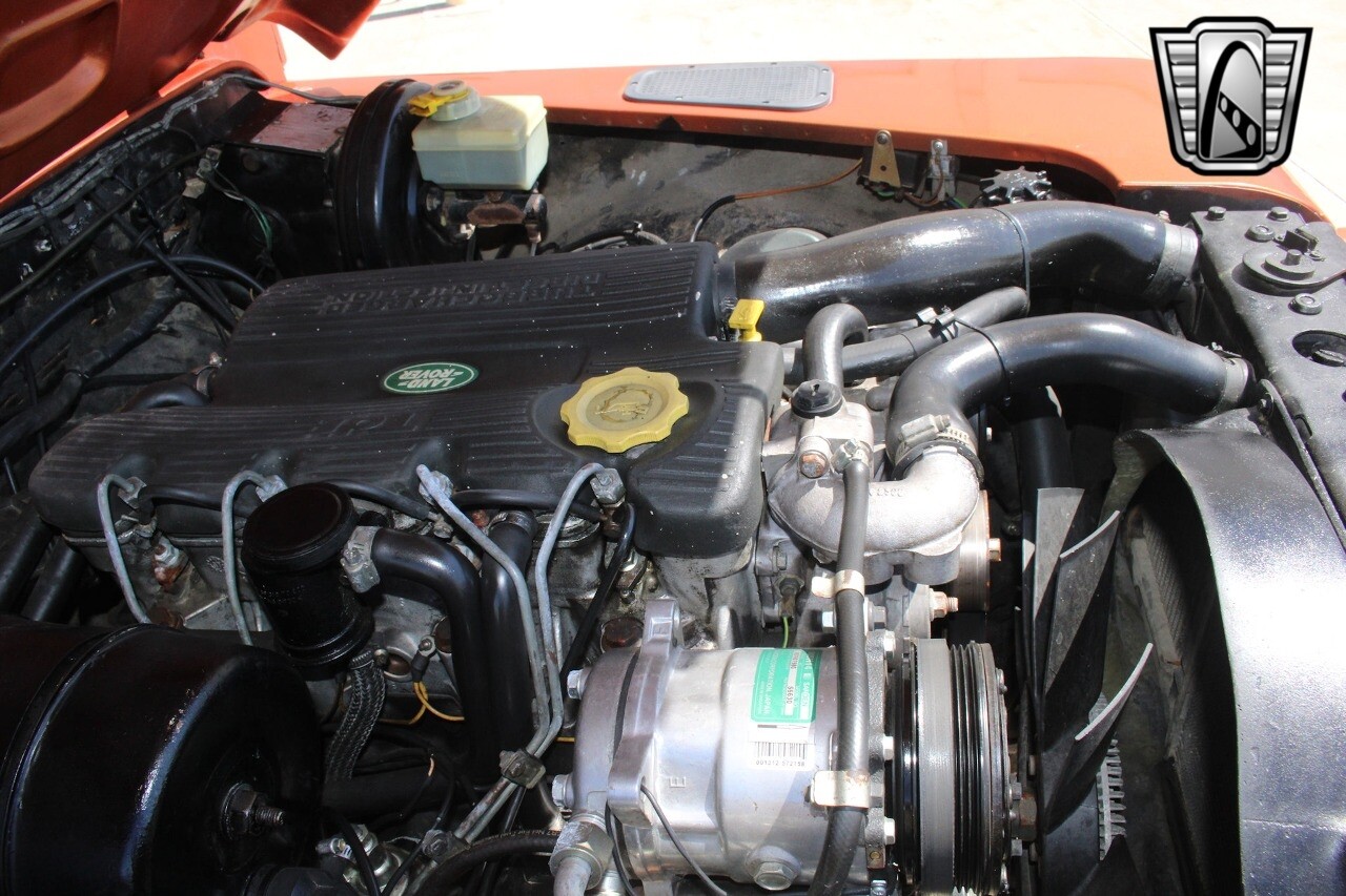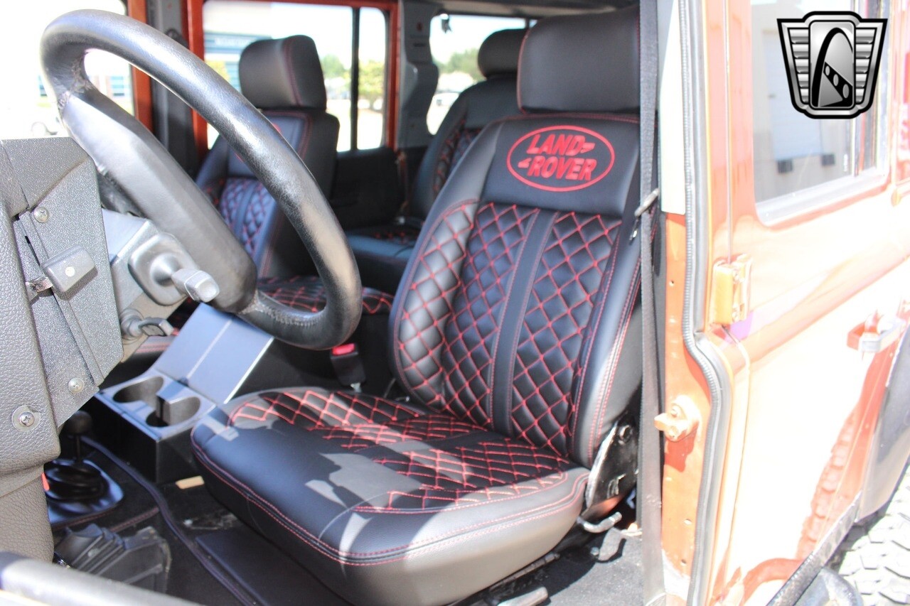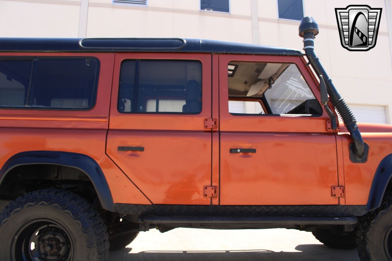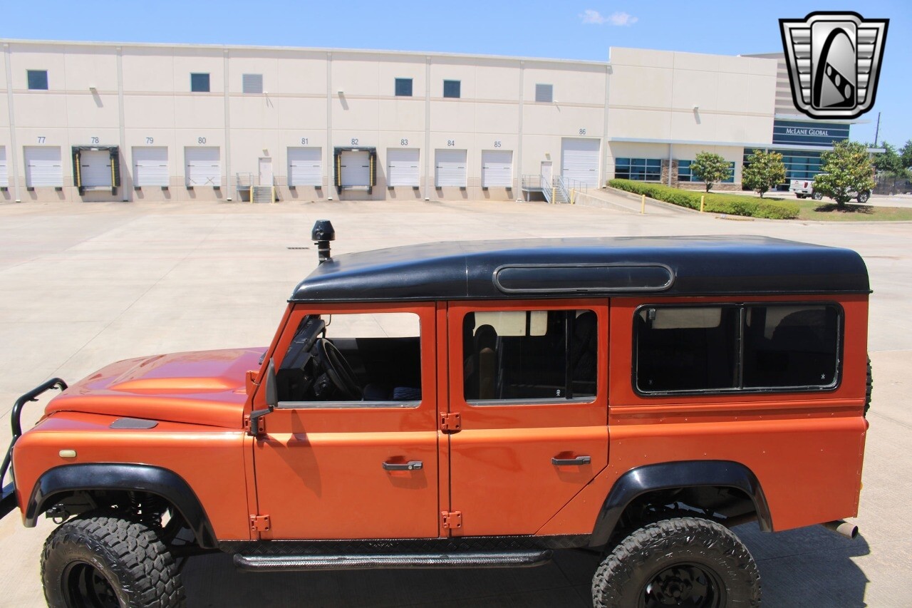 Gateway Classic Cars Houston Showroom is pleased to offer this 1993 Land Rover Defender for sale. Step into the world of luxury and adventure with its nice blend of style, power, and comfort. Showcasing an eye-catching orange metallic exterior, this beast stands out from the crowd. The black interior, complete with custom diamond-stitched synthetic leather seating, adds a touch of luxury to the rugged charm of this iconic vehicle, and its new headliner adds to the overall ambience. Under the hood, the 1993 Land Rover Defender houses a power-packed 300 TDI 4-cylinder turbo diesel engine that provides plenty of torque for those wilderness adventures. The 5-Speed manual transmission gives you a great balance of control and ease, ensuring a smooth and engaging driving experience. Enjoy the convenience of power front windows, power brakes, and power steering, all designed to make your journey comfortable and stress-free. With its robust LT285/75R16 off-road radial tires, the Defender is well-equipped to tackle any terrain with ease, making it an ideal chariot for adventure seekers. The built-in Dual-DIN touchscreen AM/FM/Satellite-capable radio with Bluetooth offers in-car entertainment and connectivity like never before. Whether you want to catch up on your favorite tunes or need directions to your next destination, this system has you covered. Safety is a priority, and so this machine comes with seatbelts to ensure you and your passengers are always protected. The added feature of air conditioning ensures a comfortable and cool ride even on the hottest days. This 1993 Land Rover Defender is more than just a vehicle - it's a lifestyle. Offering a blend of power, luxury, and safety, it's built to take you places and make every journey memorable. Experience the thrill and grandeur of this vintage off-roading ride today!.