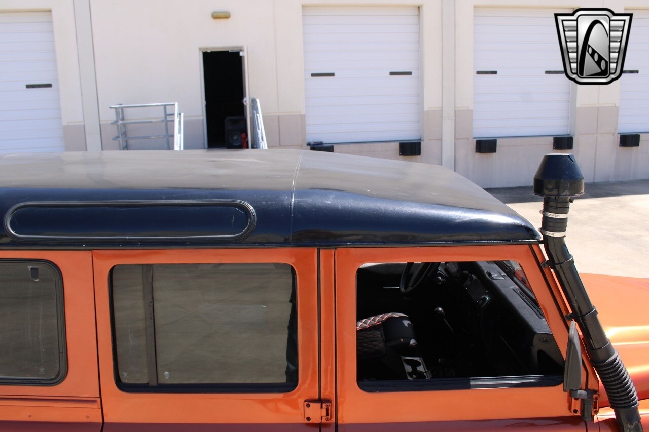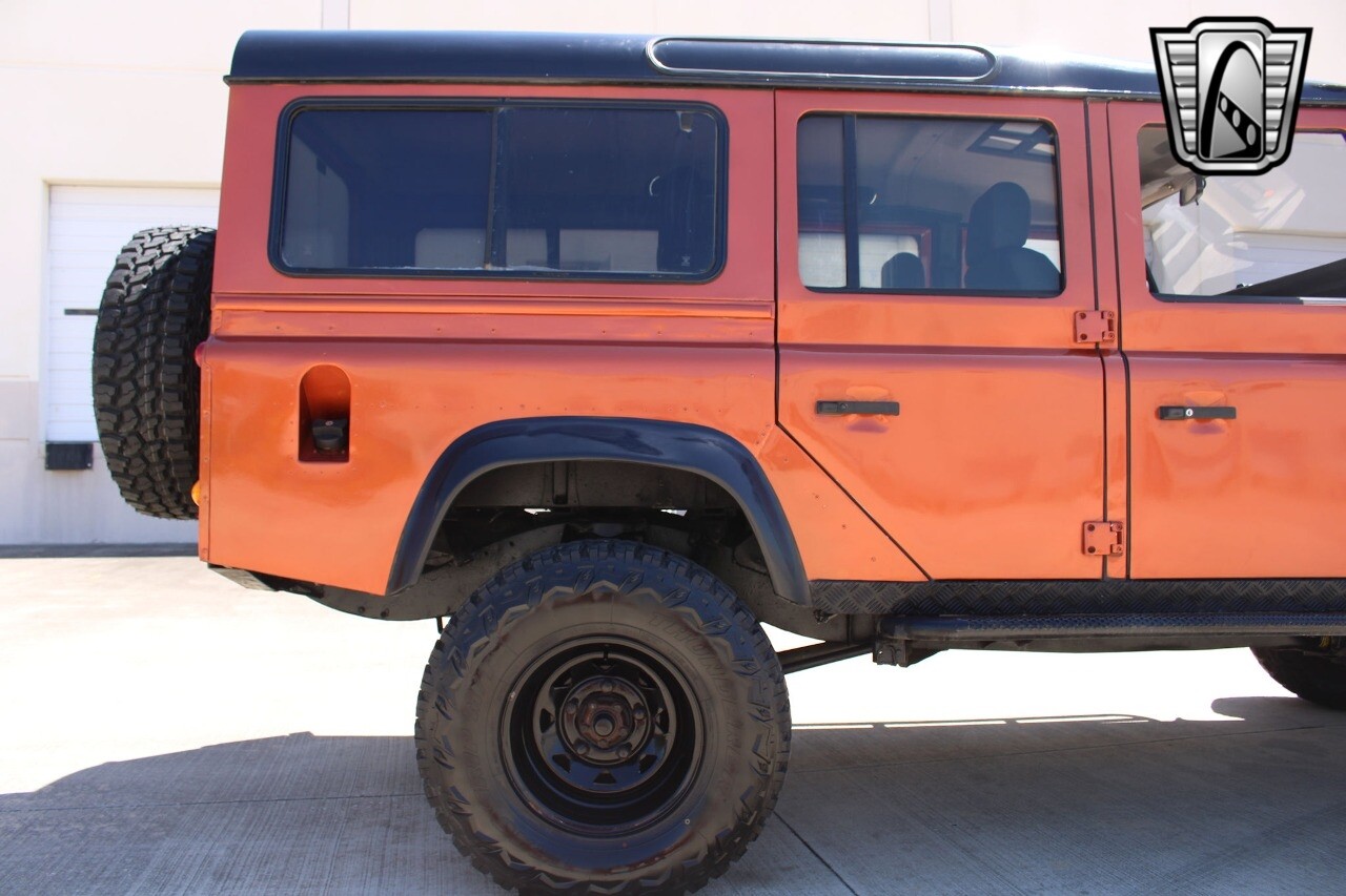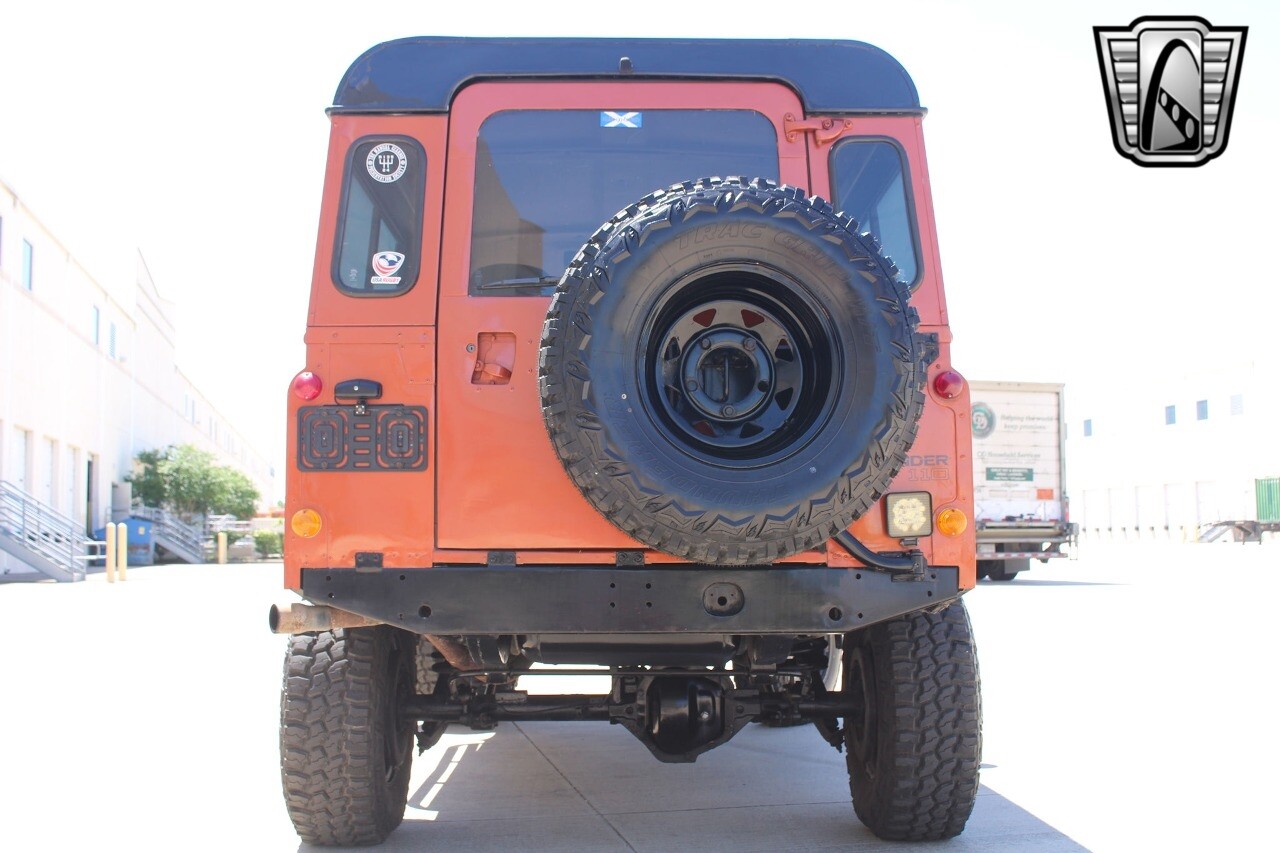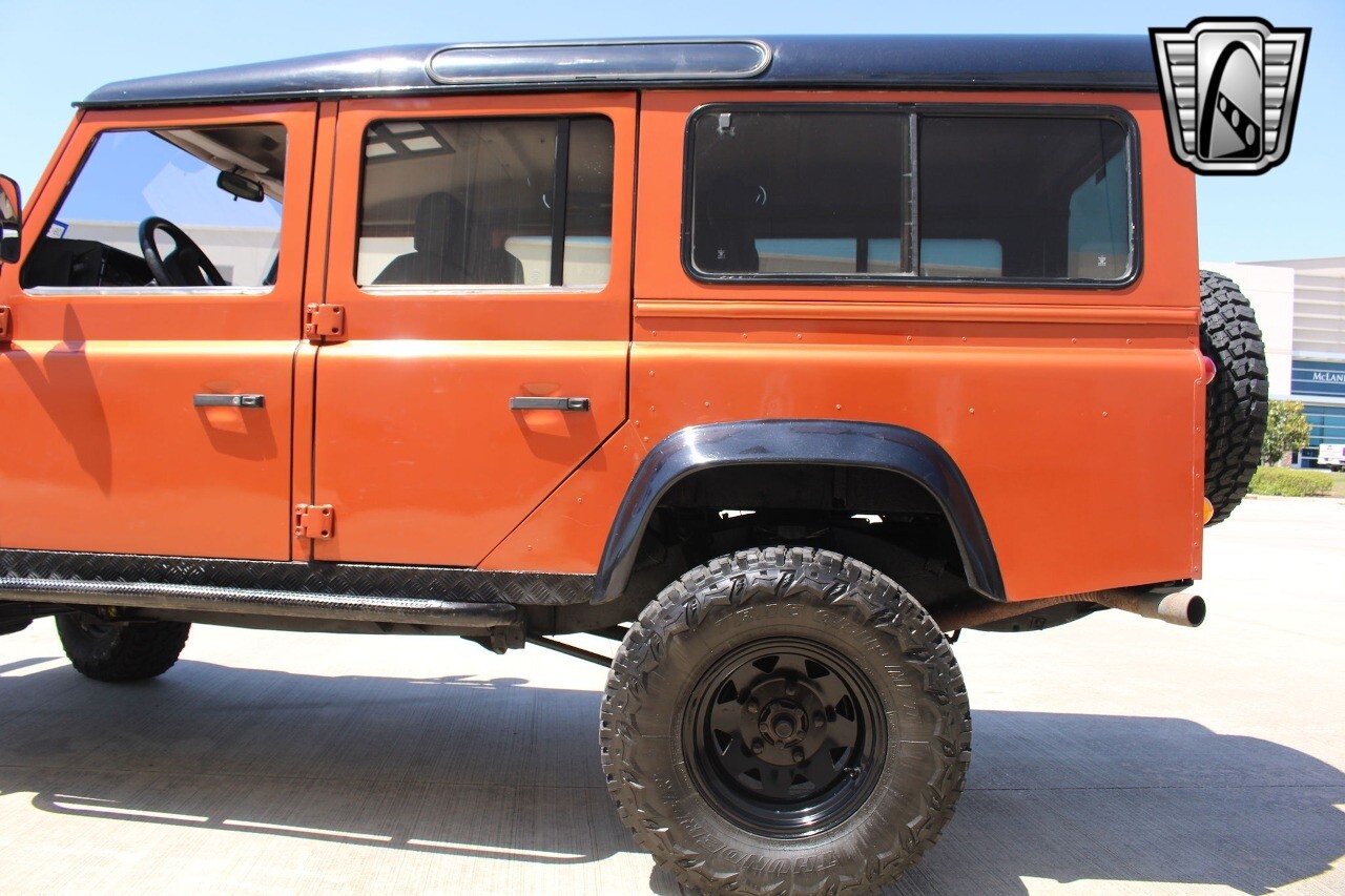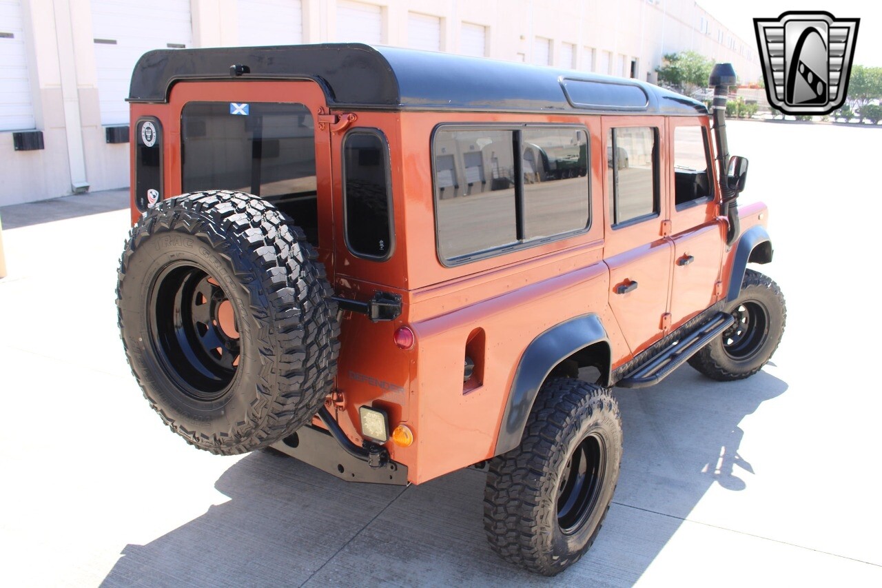 Gateway Classic Cars Houston Showroom is pleased to offer this 1993 Land Rover Defender for sale. Step into the world of luxury and adventure with its nice blend of style, power, and comfort. Showcasing an eye-catching orange metallic exterior, this beast stands out from the crowd. The black interior, complete with custom diamond-stitched synthetic leather seating, adds a touch of luxury to the rugged charm of this iconic vehicle, and its new headliner adds to the overall ambience. Under the hood, the 1993 Land Rover Defender houses a power-packed 300 TDI 4-cylinder turbo diesel engine that provides plenty of torque for those wilderness adventures. The 5-Speed manual transmission gives you a great balance of control and ease, ensuring a smooth and engaging driving experience. Enjoy the convenience of power front windows, power brakes, and power steering, all designed to make your journey comfortable and stress-free. With its robust LT285/75R16 off-road radial tires, the Defender is well-equipped to tackle any terrain with ease, making it an ideal chariot for adventure seekers. The built-in Dual-DIN touchscreen AM/FM/Satellite-capable radio with Bluetooth offers in-car entertainment and connectivity like never before. Whether you want to catch up on your favorite tunes or need directions to your next destination, this system has you covered. Safety is a priority, and so this machine comes with seatbelts to ensure you and your passengers are always protected. The added feature of air conditioning ensures a comfortable and cool ride even on the hottest days. This 1993 Land Rover Defender is more than just a vehicle - it's a lifestyle. Offering a blend of power, luxury, and safety, it's built to take you places and make every journey memorable. Experience the thrill and grandeur of this vintage off-roading ride today!.