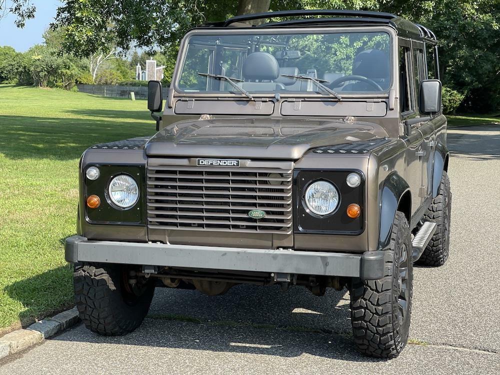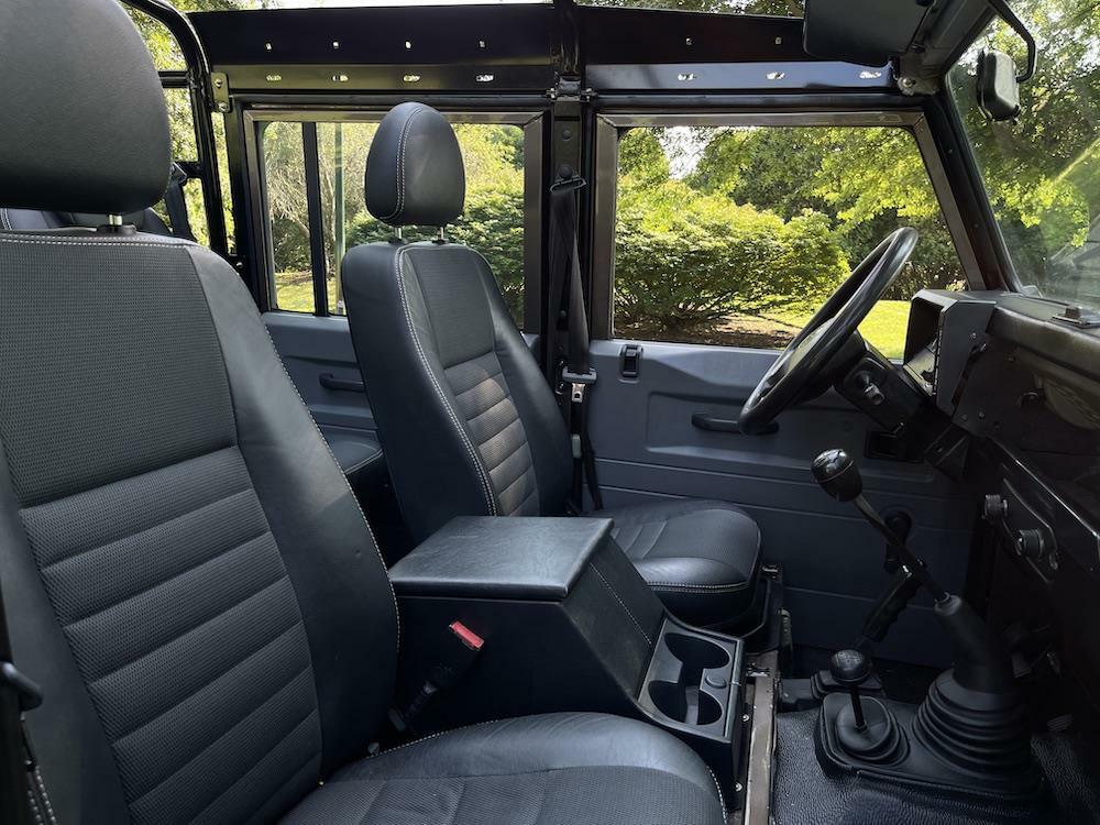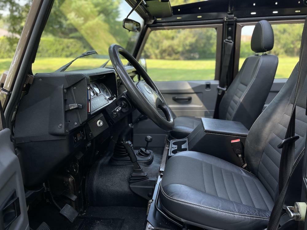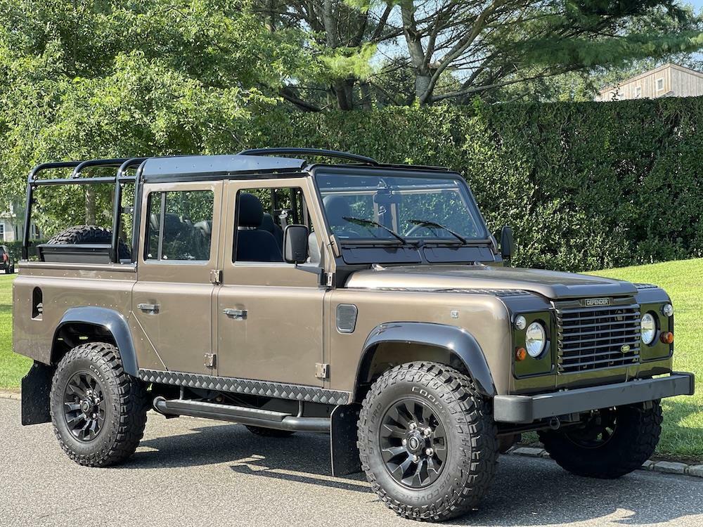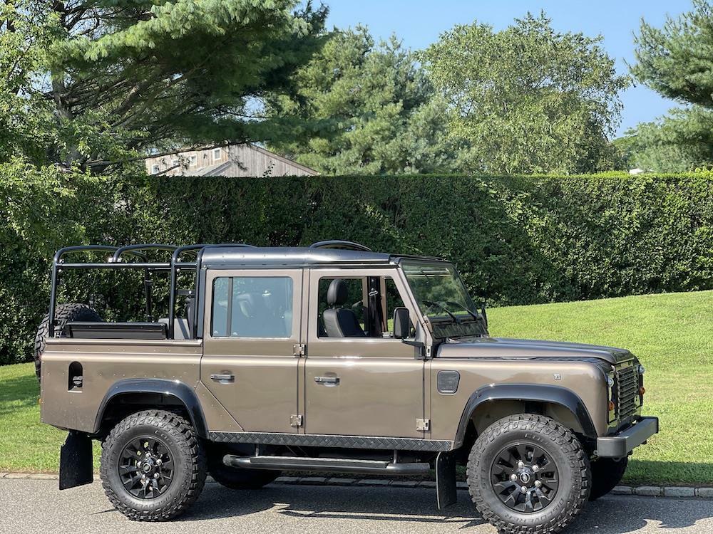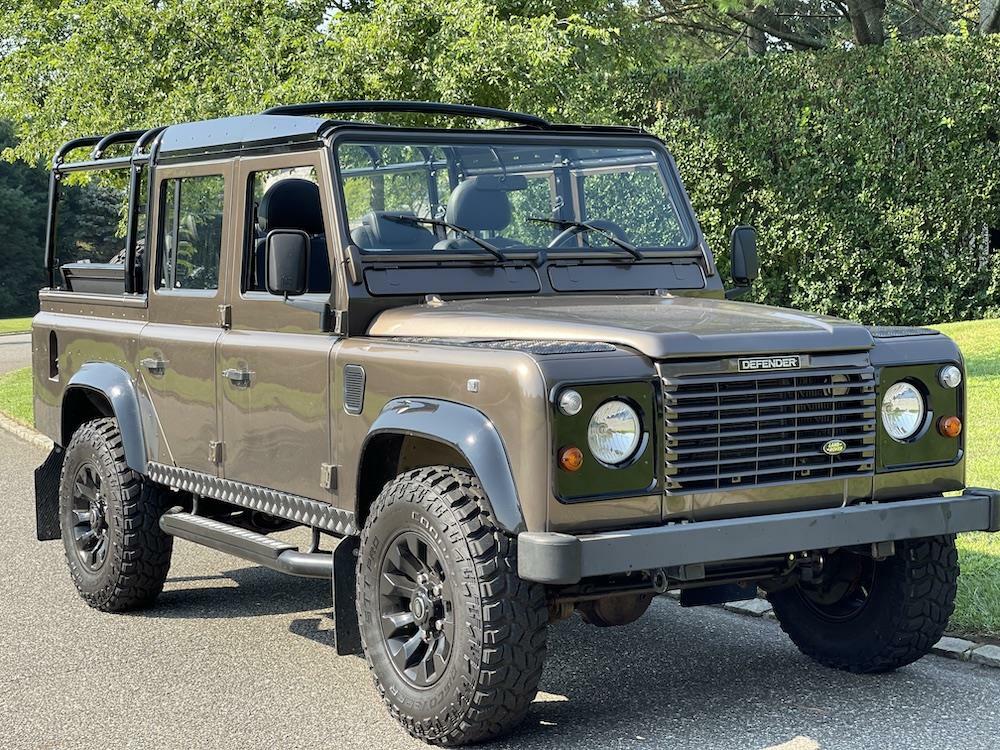 Offered here is a 1995 Land Rover Defender 110 Convertible. It is finished in Land Rover Nara Bronze over a black leather interior. This example is powered by a 4 cylinder turbo diesel engine, paired with a 5-speed manual transmission. This truck was sourced from Spain and is rust-free. It was rebuilt by a Land Rover Specialist and has the following: