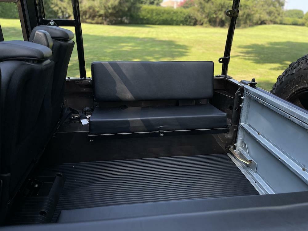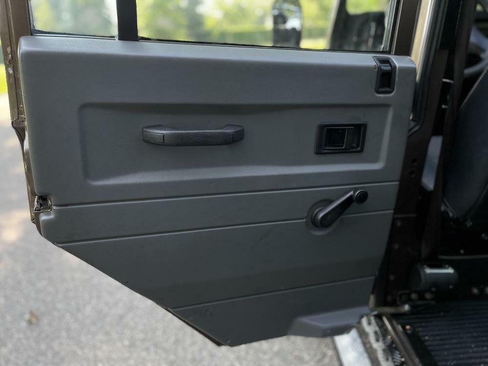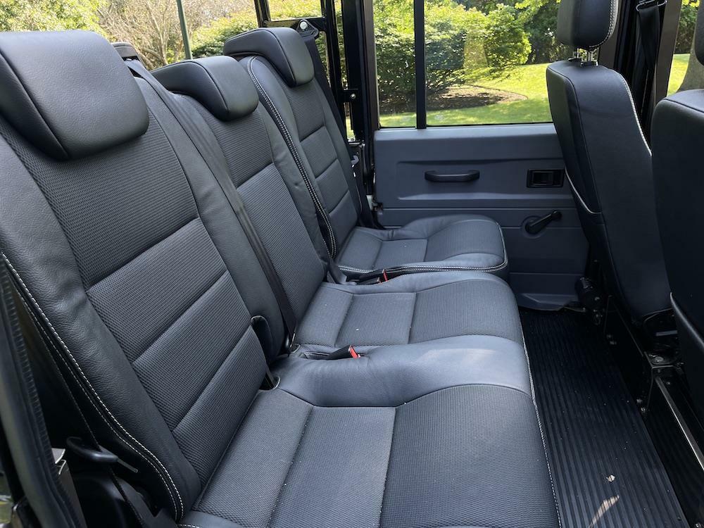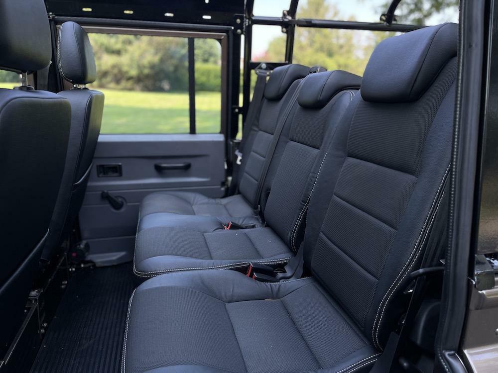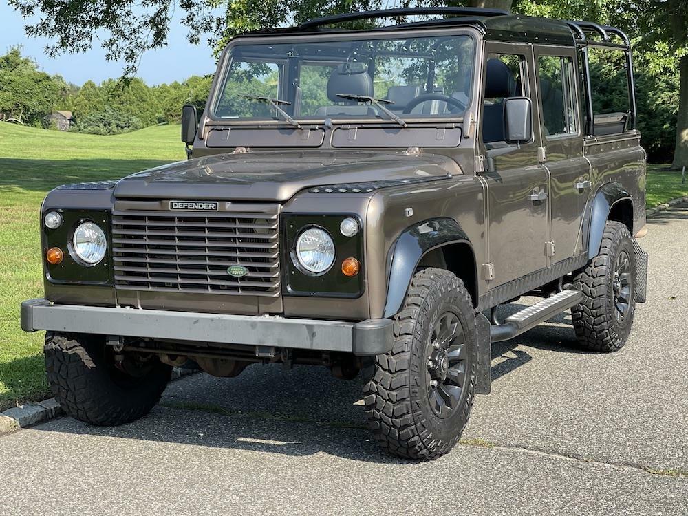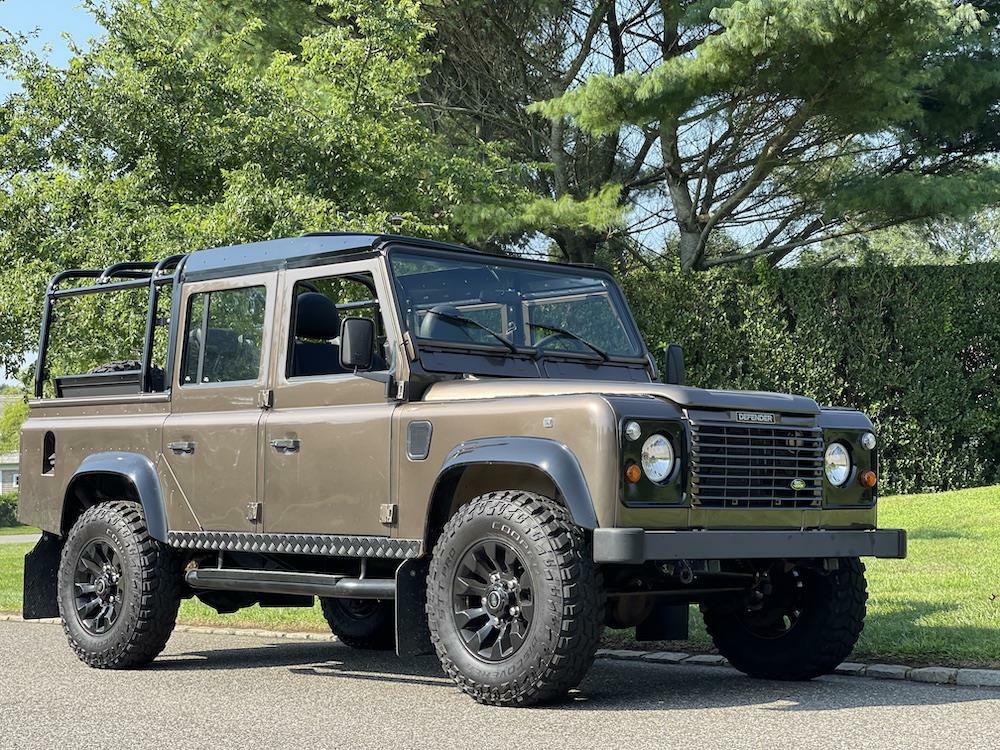 Offered here is a 1995 Land Rover Defender 110 Convertible. It is finished in Land Rover Nara Bronze over a black leather interior. This example is powered by a 4 cylinder turbo diesel engine, paired with a 5-speed manual transmission. This truck was sourced from Spain and is rust-free. It was rebuilt by a Land Rover Specialist and has the following: