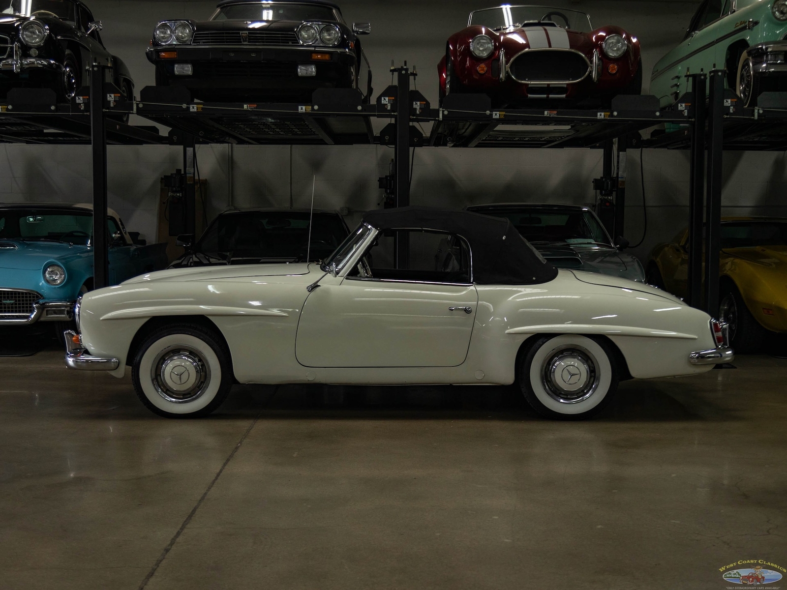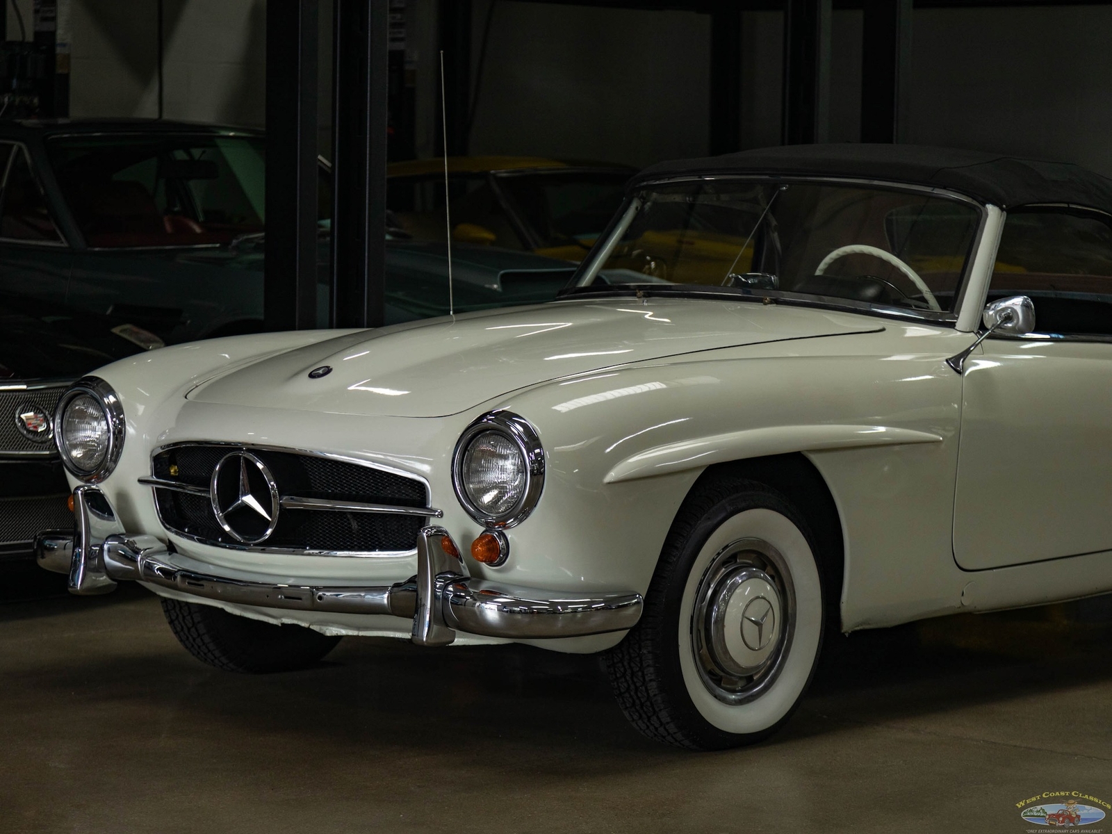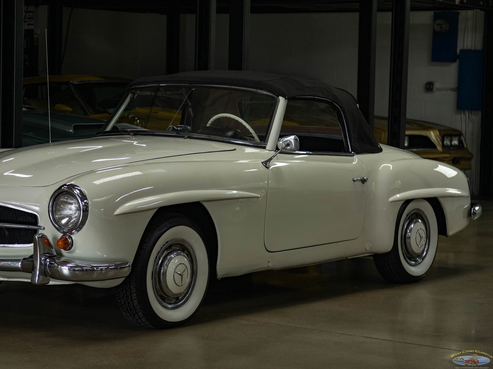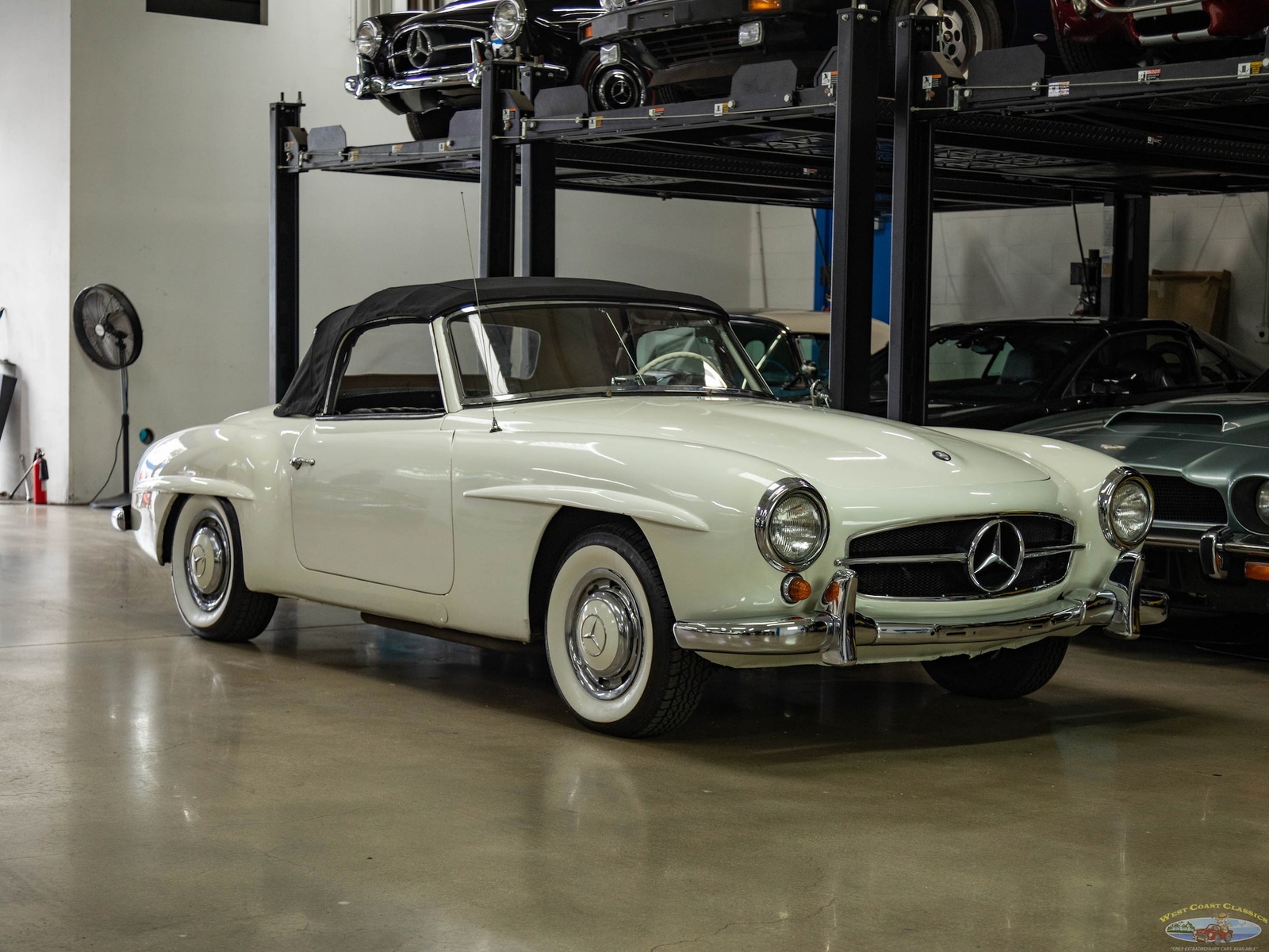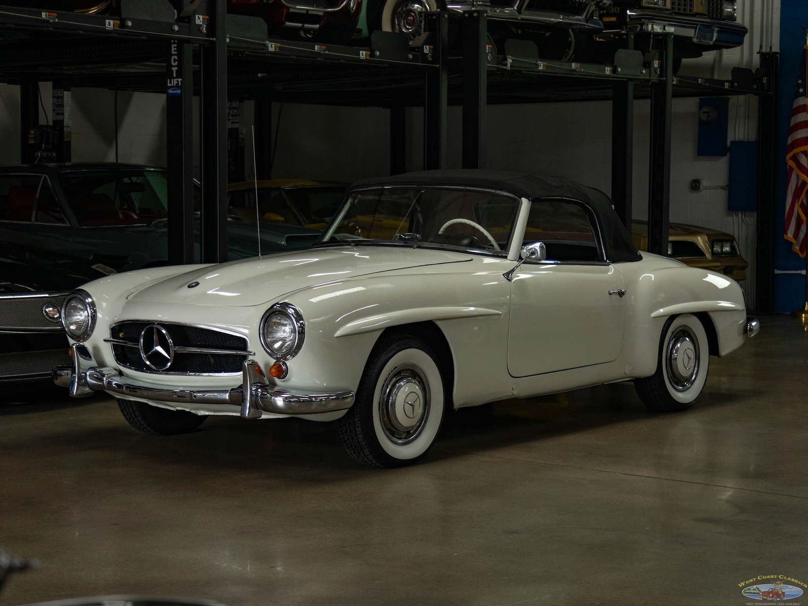 Odometer shows 68,000 milesMatching numbers1.9L inline SOHC 4-cylinder engine4-speed manual transmissionWhite exteriorBlack convertible topNew tiresRecently servicedBlack leather interiorThis Mercedes-Benz 190 SL is finished in White with a Black convertible soft top, over a Black leather interior with black carpet. It rides on the correct set of 13-inch steel wheels with polished trims and body-coloured hub caps. A more modern Pioneer radio/cassette player has been fitted in the cabin. The older White paintwork is in generally fair condition, having been repainted reportedly sometime during the 1990s but it should be noted that it does show wear such as stone chips and small markings and there are some small areas of cracking on the cars lower sills, and some areas where the paint has now started to peel away. Inside, the cabin presents well, with some light creasing on the black leather upholstery, but with no major wear. The interior has a charming and what most would consider time-earned patina throughout. This 190 SLs most recent routine maintenance was reportedly carried out during September 2021 by German Car Service with the work comprising of an engine oil and filter change, along with the replacement of the brake fluids, all of the cars belts, and the rebuild of the cars carburetors, with very few miles on the car since the service. Power comes from a Type M121 BII 1.9L SOHC inline-four carbureted engine (based on the 300SL's straight-six) which has been equipped with upgraded Weber carburetors and the rear wheels are driven by way of a fully synchronized 4-speed manual gearbox. Other mechanical features include four-wheel drum brakes and a fully independent suspension derived from the 300SL.